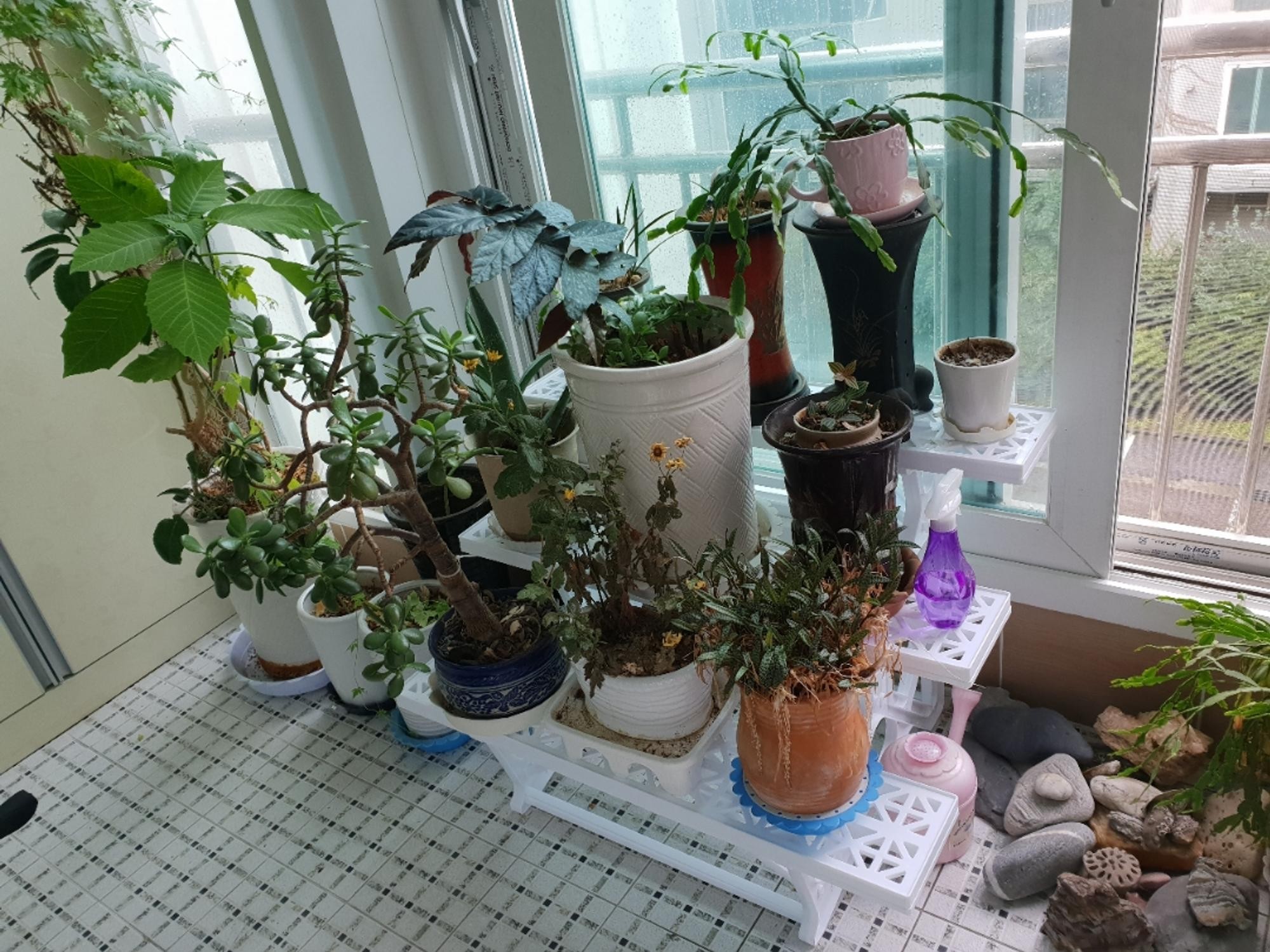 화분정리대에서 키우니 식물이 더 잘 자라는 듯해요.