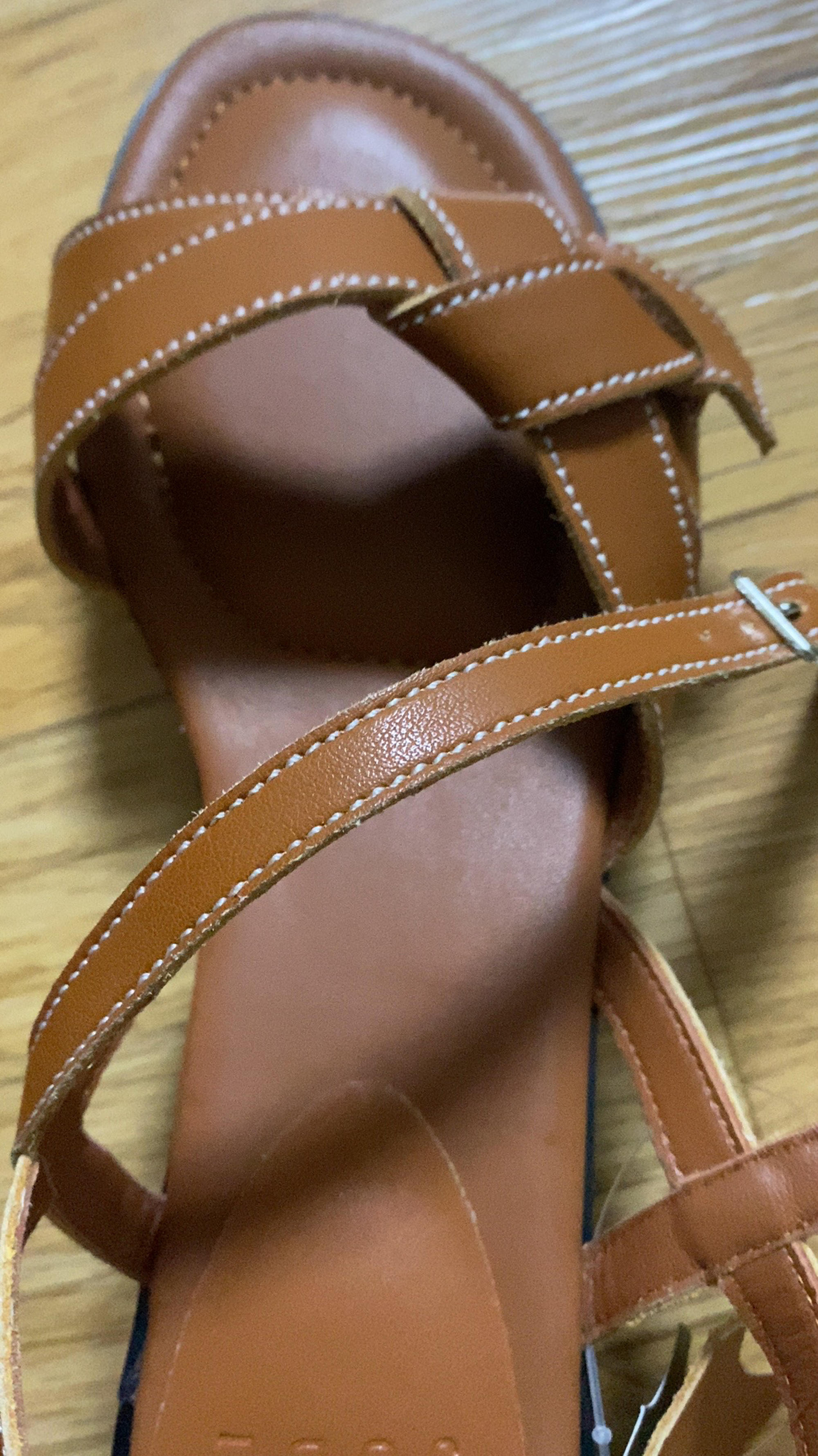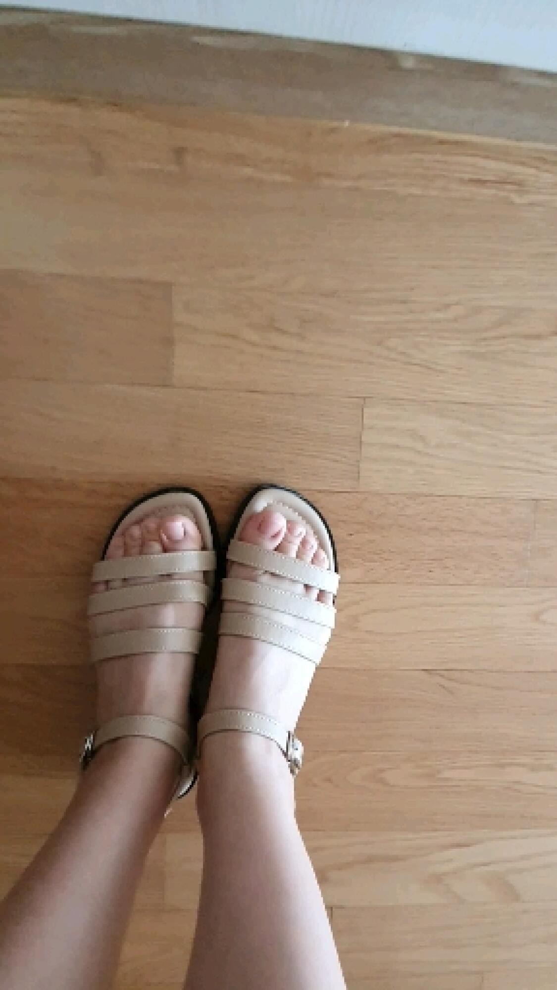 신어보니 왼쪽 발볼이 더 뜨는 느낌인 거예요. 그래서 줄자로 재보니 3~5미리 정도 왼쪽 X자 부분이 더 길어요. 그래서 왼쪽이 좀더 헐렁한 느낌이 드나봐요. 왼쪽 신발만 다시 보낼까 하다 크게 차이나지는 않고, 발목 스트랩 꽉 고정시키면 괜찮을 것 같아요. 어쨌든 미흡한 부분이 있었지만 제 발 사이즈에 맞는 신발인 것만으로도 사실 만족해요. 올 여름 잘 신고 다닐께요~