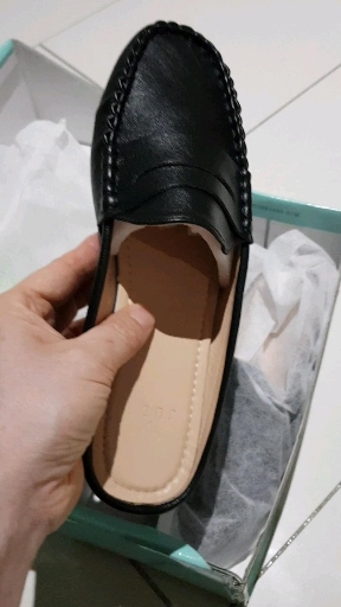 신었을때 발등감싸주는 부분이 꽈베기 처럼 꼬아져 있어서 가죽이 발등을 살짝 누른다고 해야하나?? 아무튼 오랫동안 신어보진 않았는데 많이 불편할꺼같진 않아요!! 바닥 쿠션이 생각보다 많아서 놀랐어요! 전체적으로 쿠션이 있는거같아요!