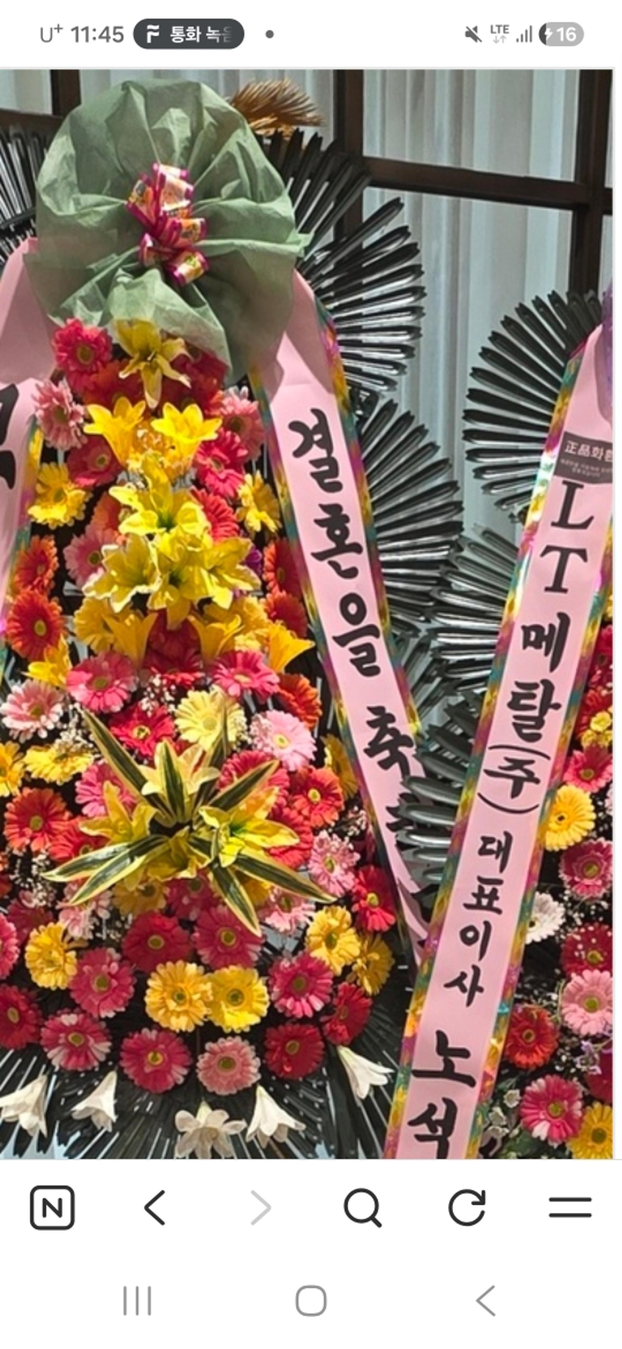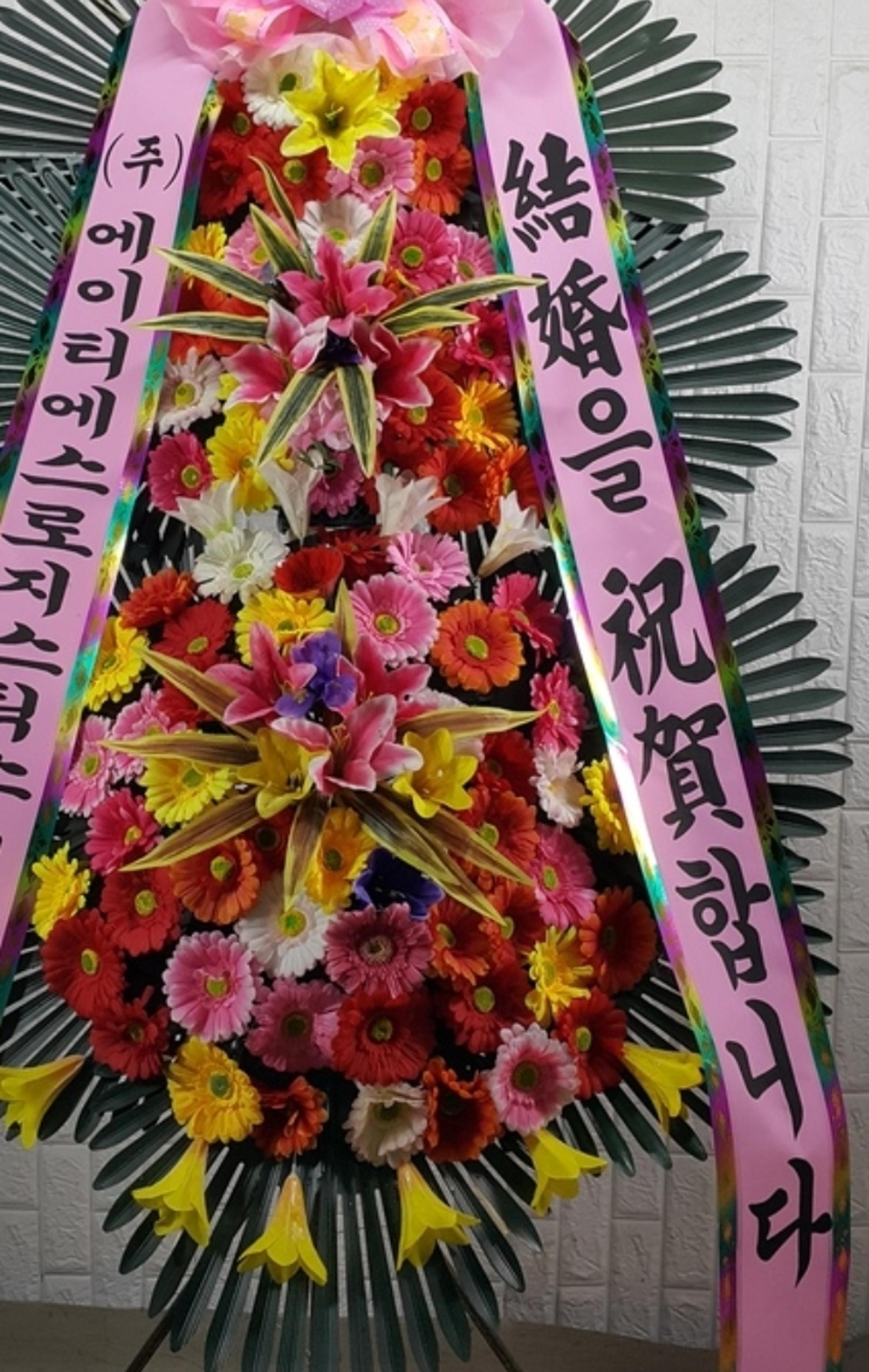 너무 맘에 들어요. 화환 선물은 처음이었는데 예식 1기간전에 배송해 주시고 담에 또 이용 예정입니다.