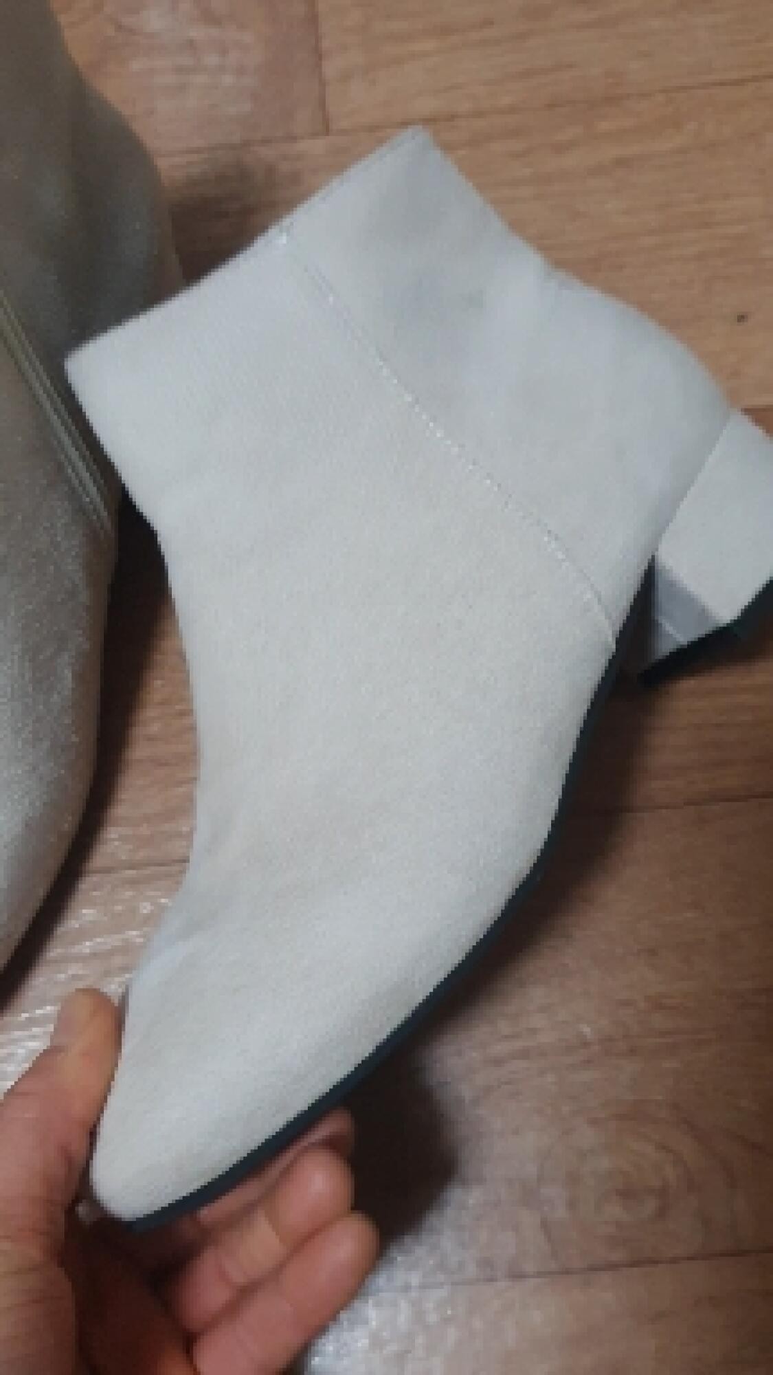재질도 천이라 겨울에 신기 좋고, 발목까지 와서 치마에 신었을때 가장 예뻐요. 지퍼도 없어서 깔끔해 보이구요. 다만 마감한 실이 군데군데 삐져서 마감은 엄청 좋은 편은 아니에요.