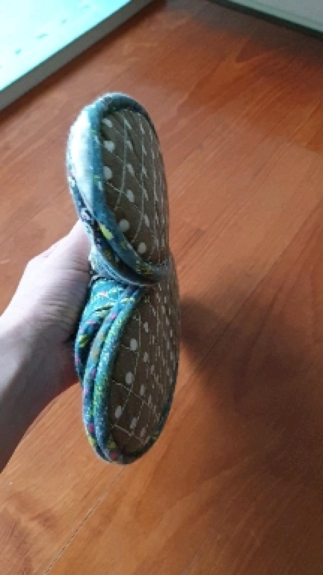 너무맘에들어요 헝겊이라 너무가볍고 고정되는게없어서 신을땐 좀 불편한데 그것만빼면 제맘에쏙듭니다 패턴도 생각했던그대로에용 ㅎㅎㅎㅎ