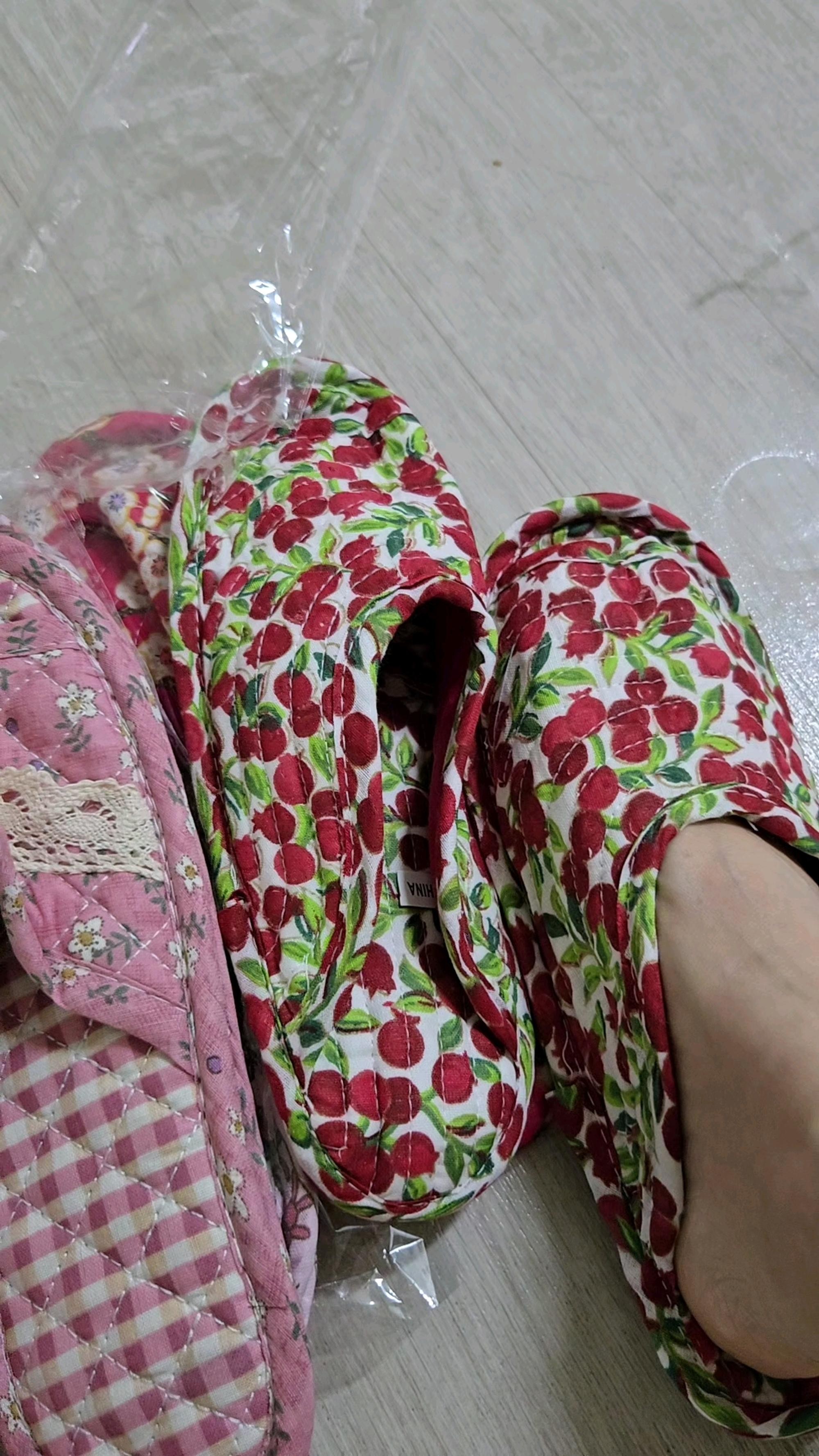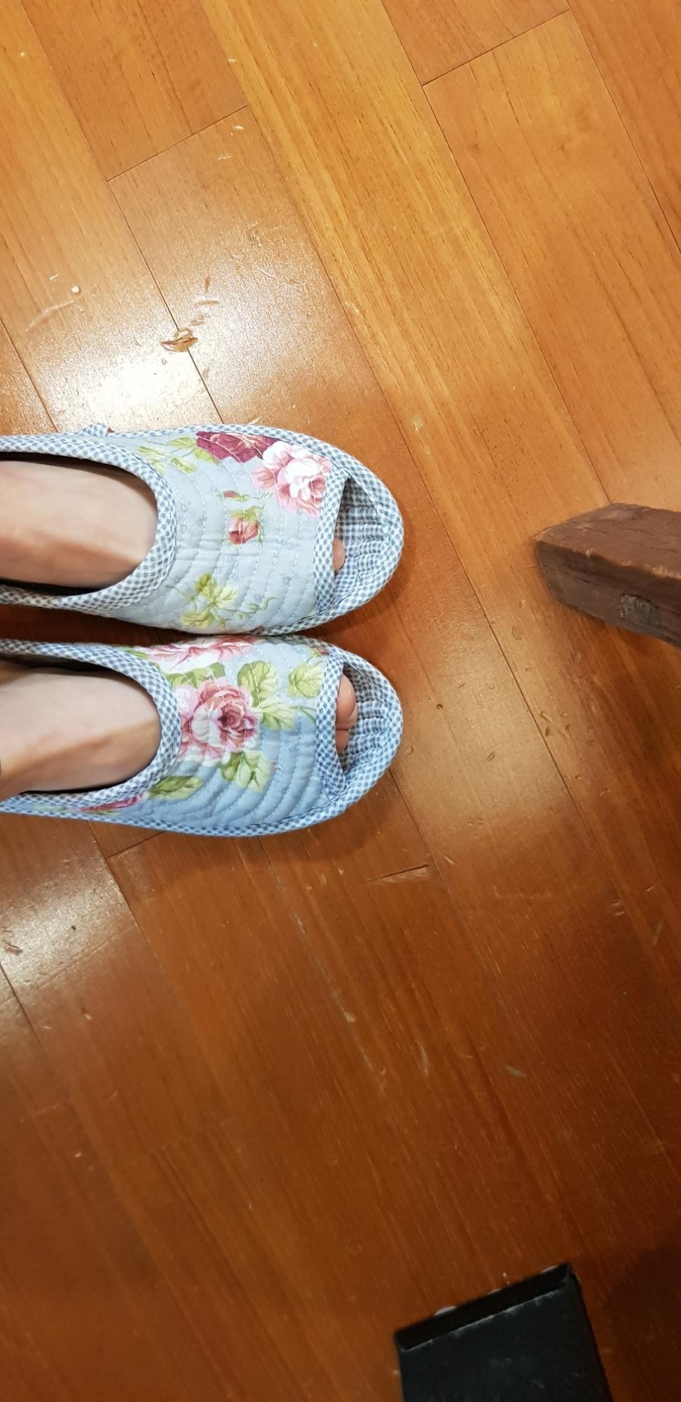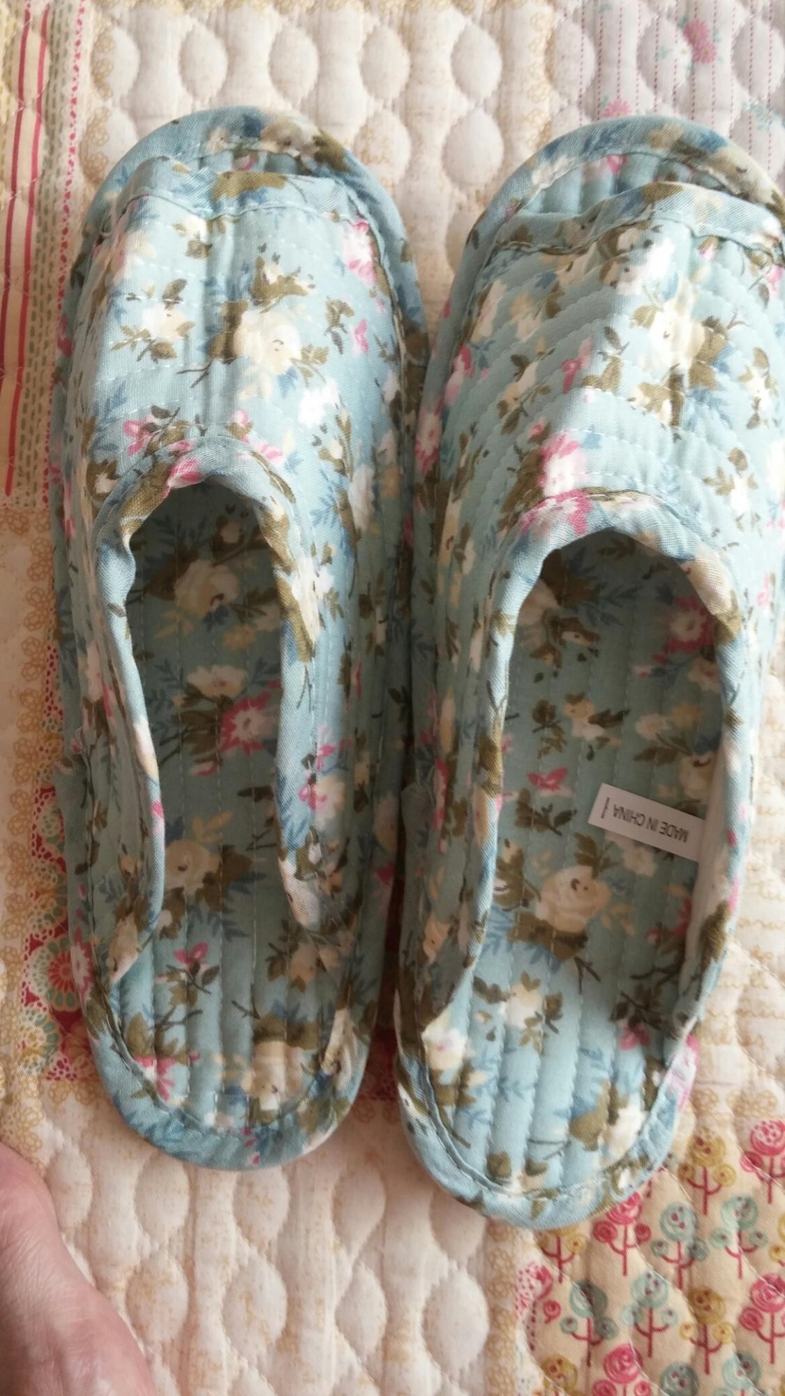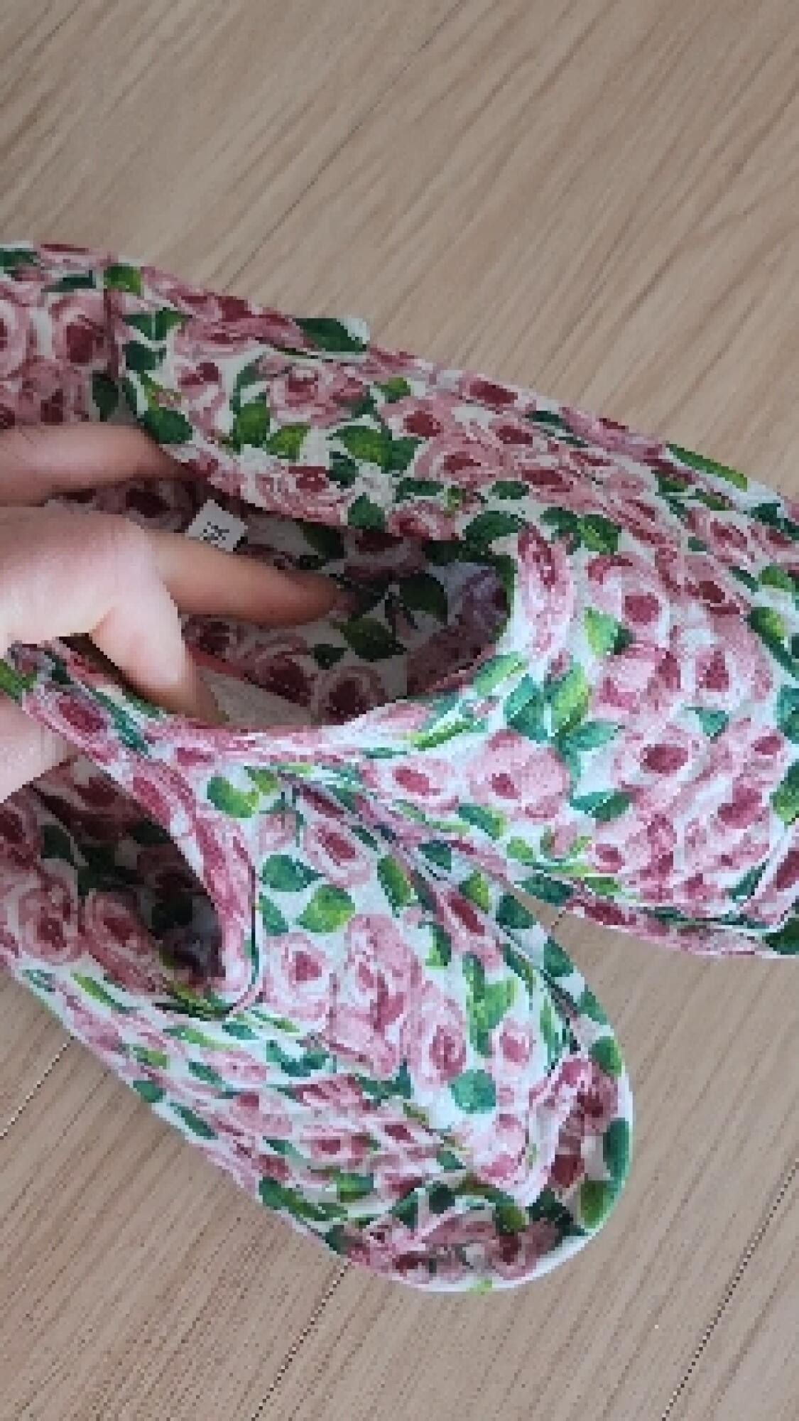 히히 생각했던 그대로에요 패턴 넘귀엽구 남편꺼는 네이비플라워 제껀 화이트에 핑크꽃했는데 너무이뽀요 한가지 아쉬운건 헝겊이라 신을때 고정되질않아 조금 불편하지만 그것만빼면 가볍구 부드럽고 아주아주 대만족입니당ㅋㅋ