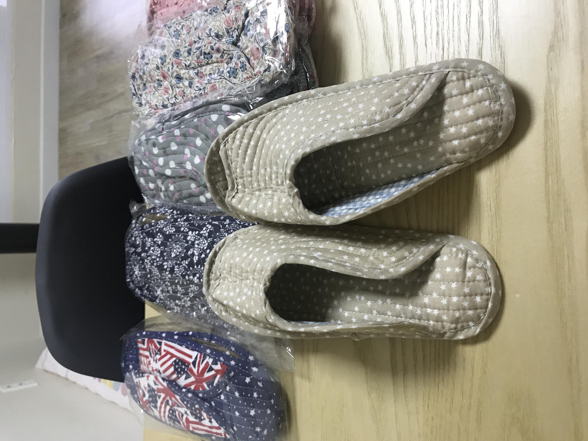이런곳이 있는줄 모르고 재래시장에서 비싸게 구입했네요! 우연히 발견하고 디자인 다양하고 착한 가격땜시 깜~~~놀!! 실내화로 사용하는데 저보다 남편이 더 좋아하네요! 빨아쓰기 쉽구 이쁘구 15개 구입해서 지인들한테 선물로 줬더니 다들 좋아하시네요^^ 많이 만족스러워서 내 생에 최고 긴~~~리뷰남기네요!!