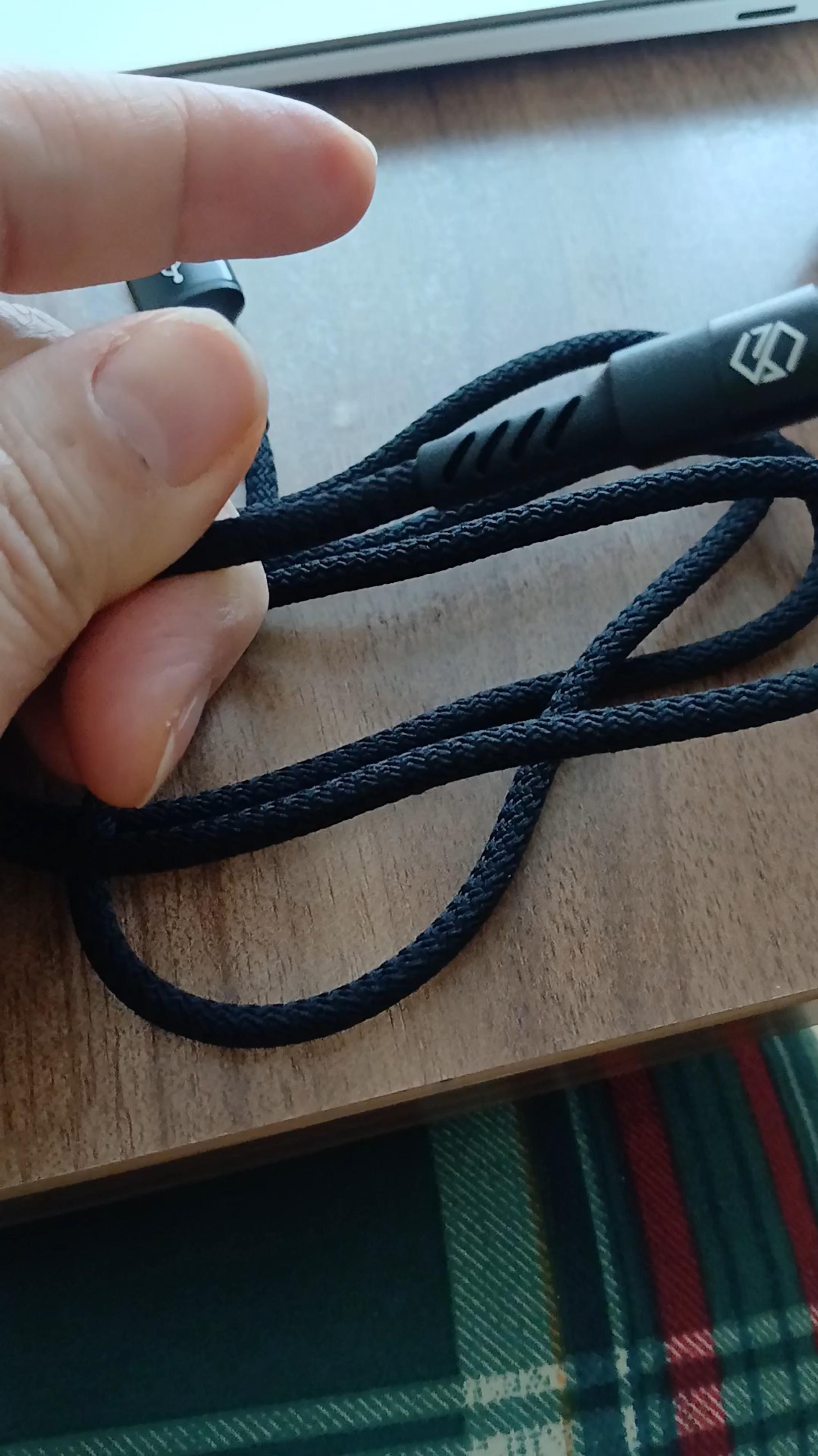 생각보다 줄은 얇은편이고요. 충전은 잘됩니다. 내구성은 그리 강하지는 않은듯합니다. 가성비 보통입니다 . 1+1이라서 만족합니다.