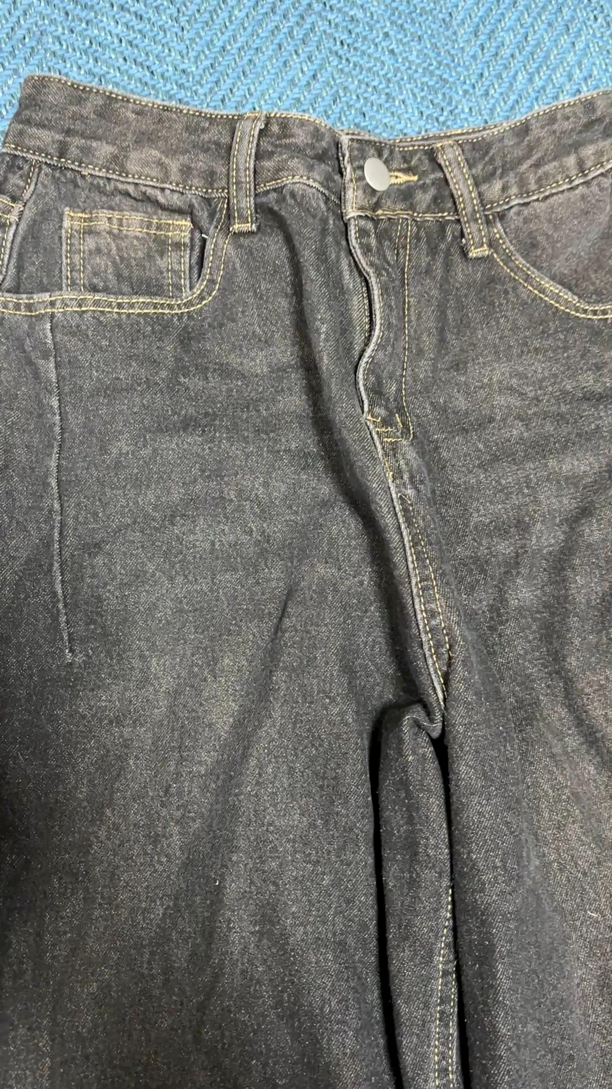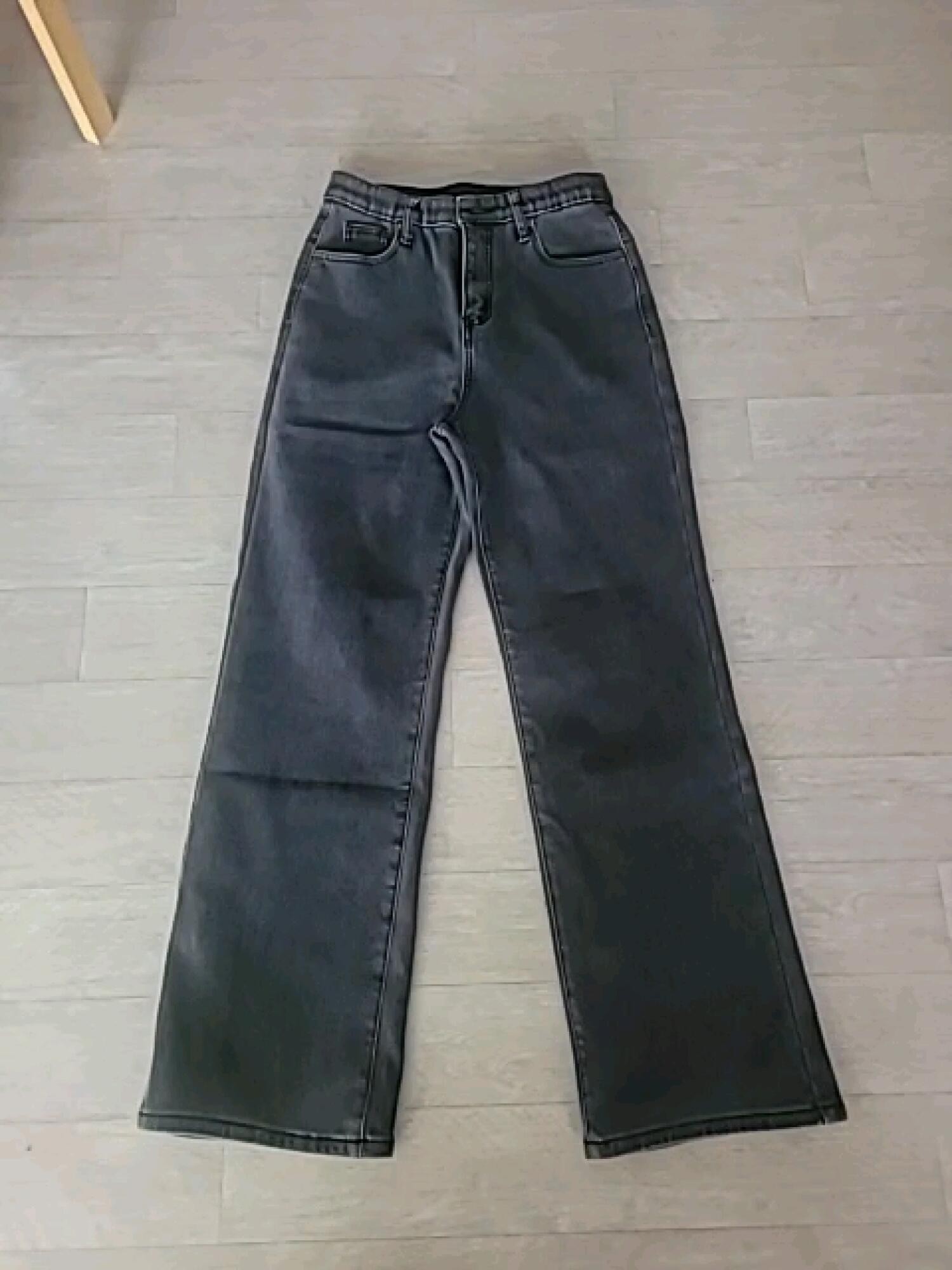 흑청 잘 입고 있어서 다른 색도 샀는데 구겨져있어 그런지 핏이 생각보다 안 예쁘네요. 면재질이랑 데님이랑 달라서 더 그런 것 같아요.