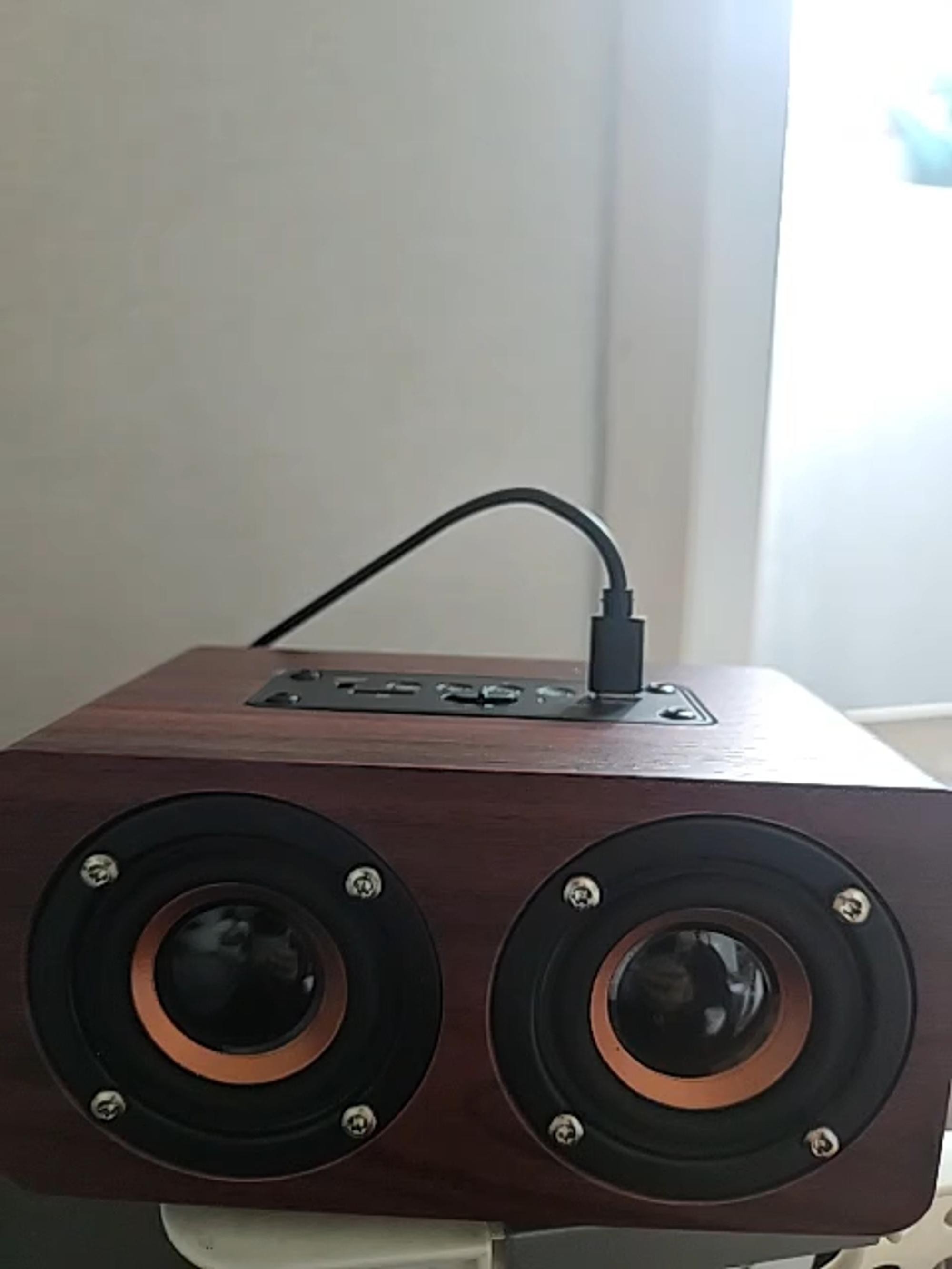 블루투스 스피커 사고싶었는데 마샬로 마음굳히던중 이쁜걸발견... 5핀으로 충전되고요 소리짱짱하네요 크기는 가로10세로7높이7정도 크진않고 적당