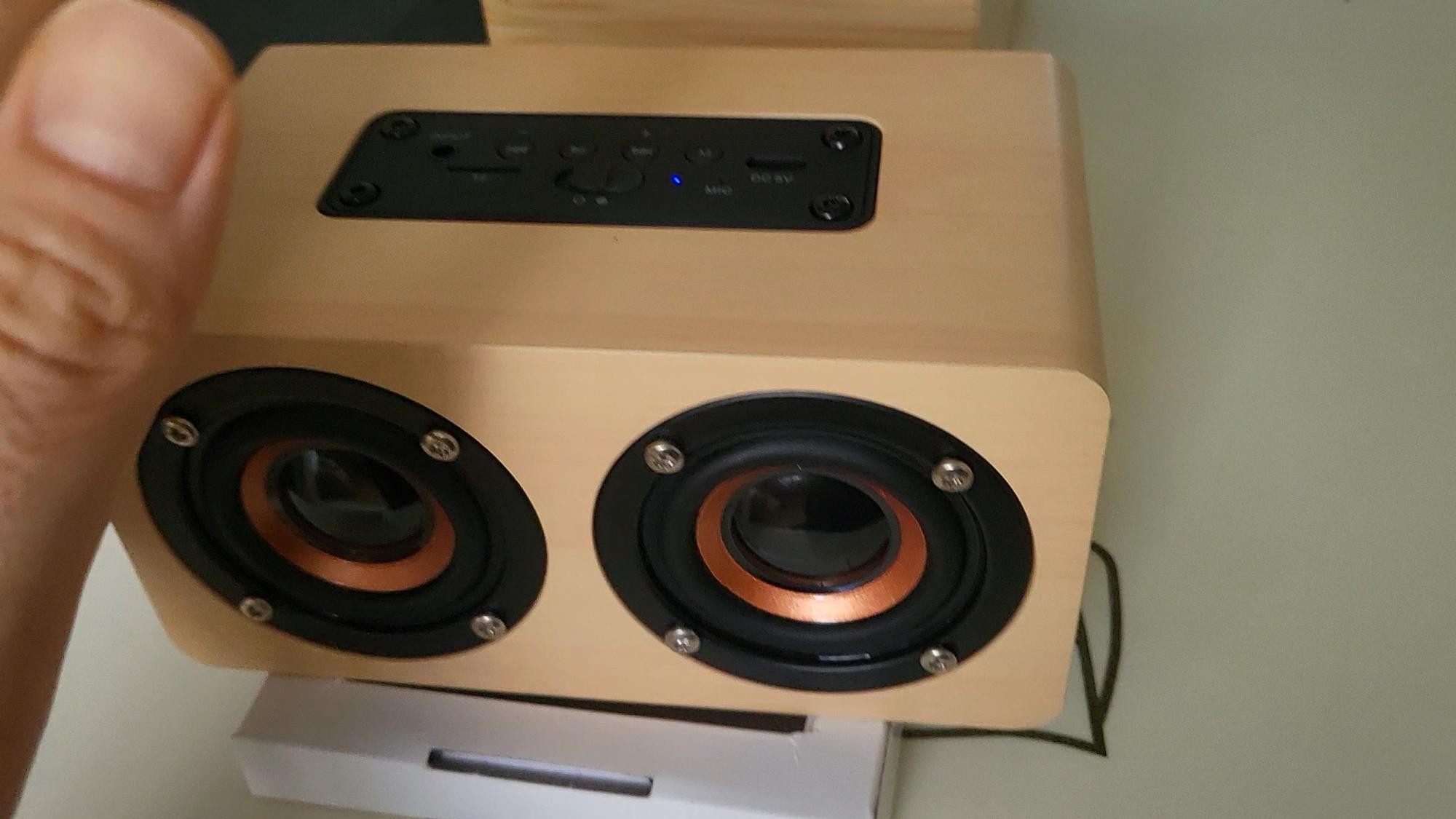 생각보다 작습니다 음량은 작은 방에서 혼자 들어 줄만 합니다 제 한뼘보다 작네요 기존에 엠텍 거 40와트 짜리만 못 하지만 가격대비 좋습니다