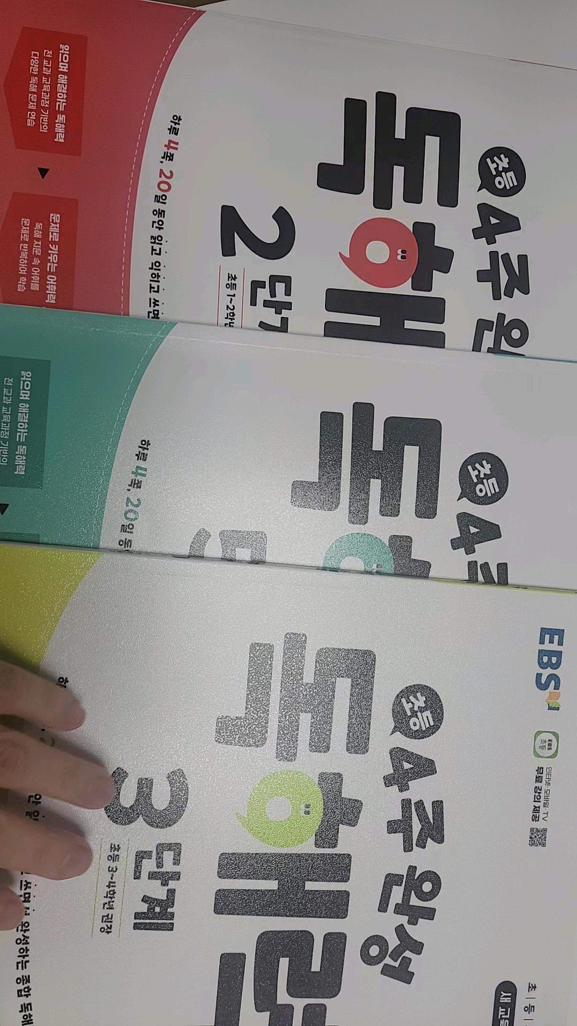 아이들 집에서 국어공부시킬겸 샀습니다. 큰아이는 이제 5단계이고 큰아이 공부시킬때 보니 4주완성독해력 책이 괜찮아서 둘째도 이걸로 문제풀이 시킬려고 2,3단계 주문했어요. 아이들이 꾸준히 공부하길 바랍니다~
