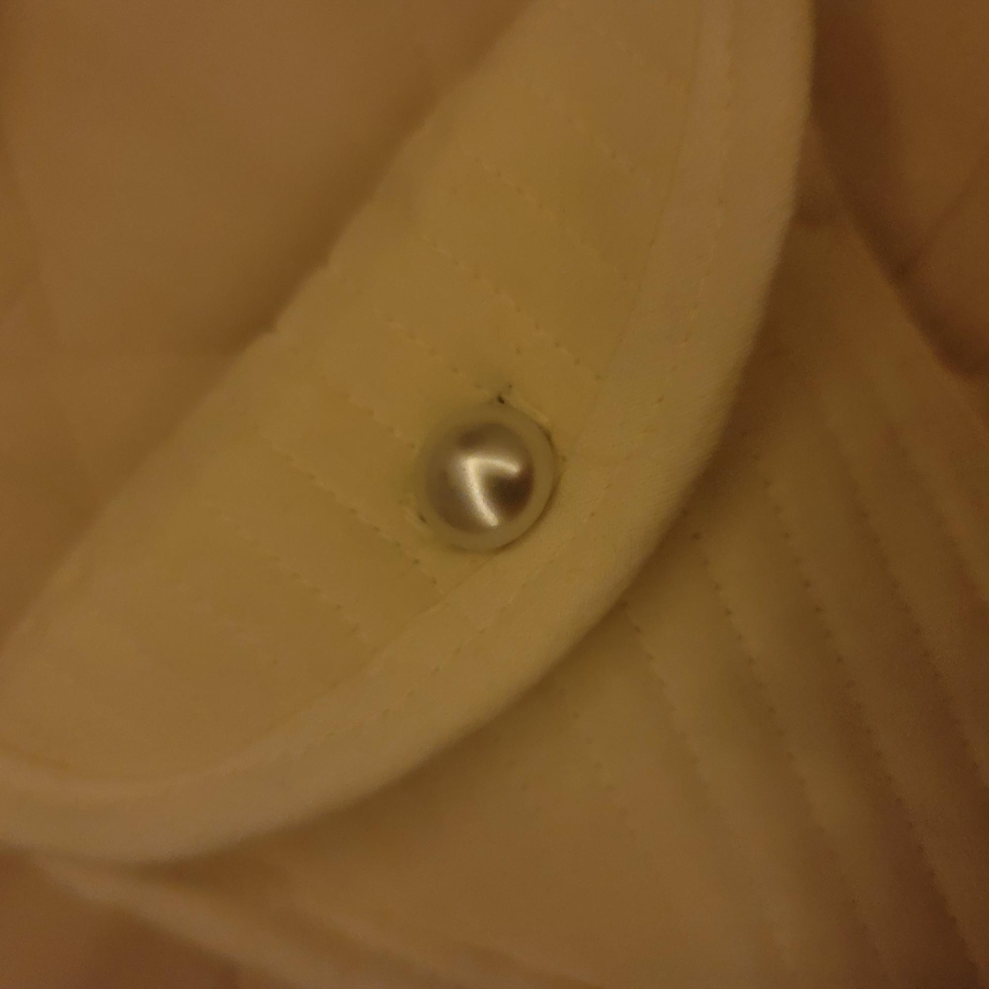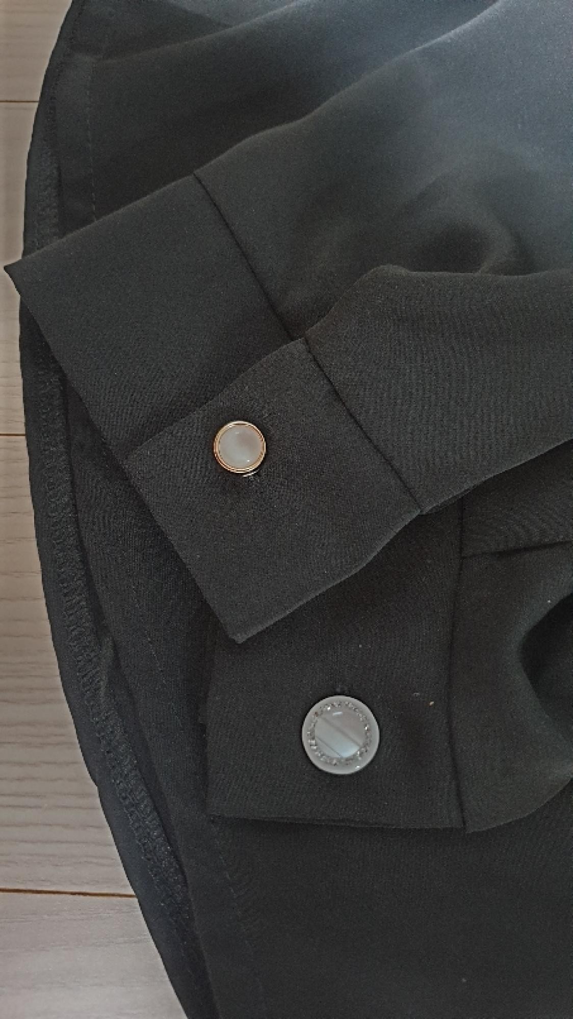 블랙 주문한 줄 알고 기다렸는데 화이트가 왔어요  제가 잘못 주문했더라구요. 그래도 어울릴 것 같아 달았는데 이쁘네요. 저렴한데 이뻐서 산 옷이 단추가 너무 저렴이여서 몽키단추로 교체 하고 나니 고급스러워졌어요.