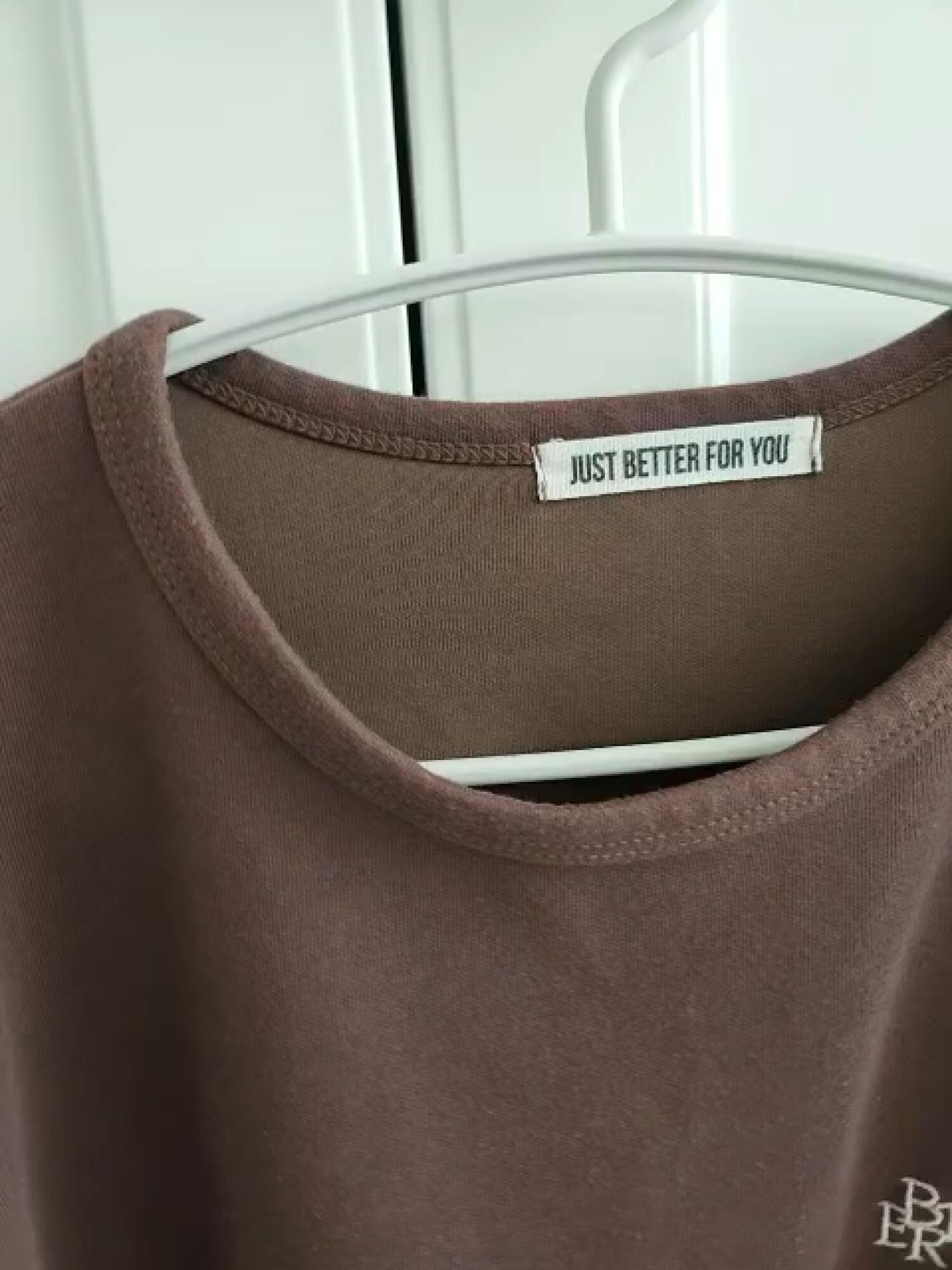 m사이즈가 가슴둘레 넉넉하고 길이도 엉덩이 반덮어서 좋아요. 제가 목이 답답한걸 싫어하는데 라운드라서 좋아요. 딥브라운이라 색상도 맘에듭니다