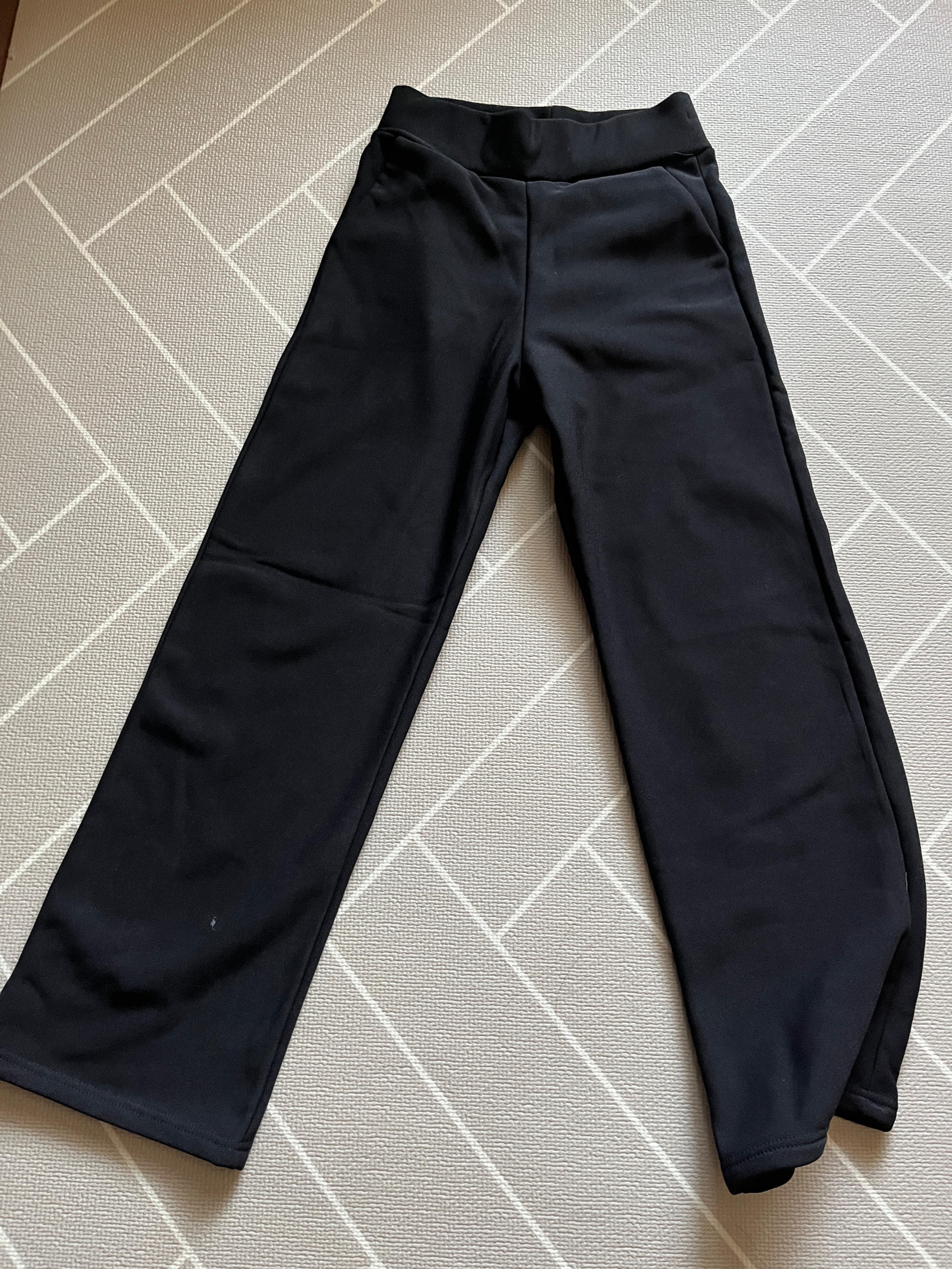 적당한 두께감과 와이드핏 슬랙스.기장은 좀 줄여서 출근룩으로 잘입고 다녀요. 구김없고 편안해요