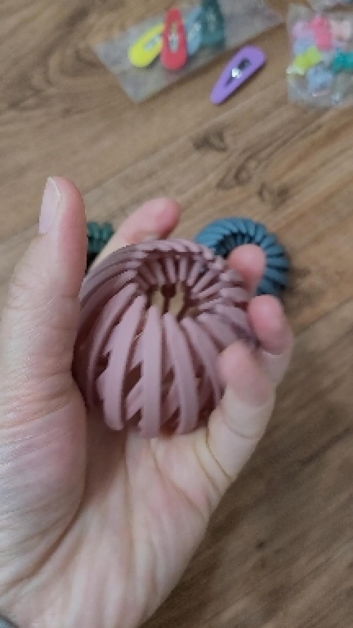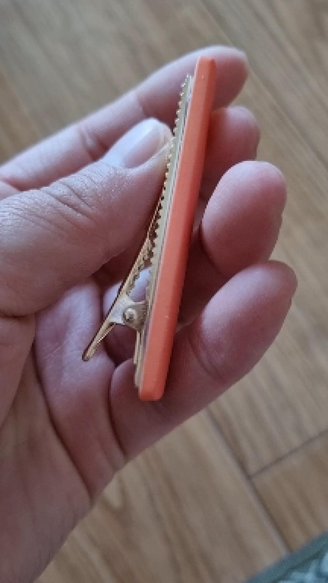 사진 보이는 색상 그대로고 벗겨진 제품 없이 왔네요. 똑딱핀 사이 플라스틱 이음새에 머리카락이 끼여서 머리카락이 빠지는게 좀 단점 입니다.