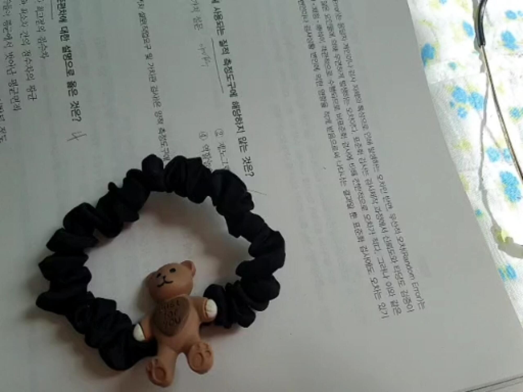 곰돌이 머리끈 귀여워요?? 곱창밴드재질이라서 신축성도 좋고 머리 꽉묶어도 아프지않아요~