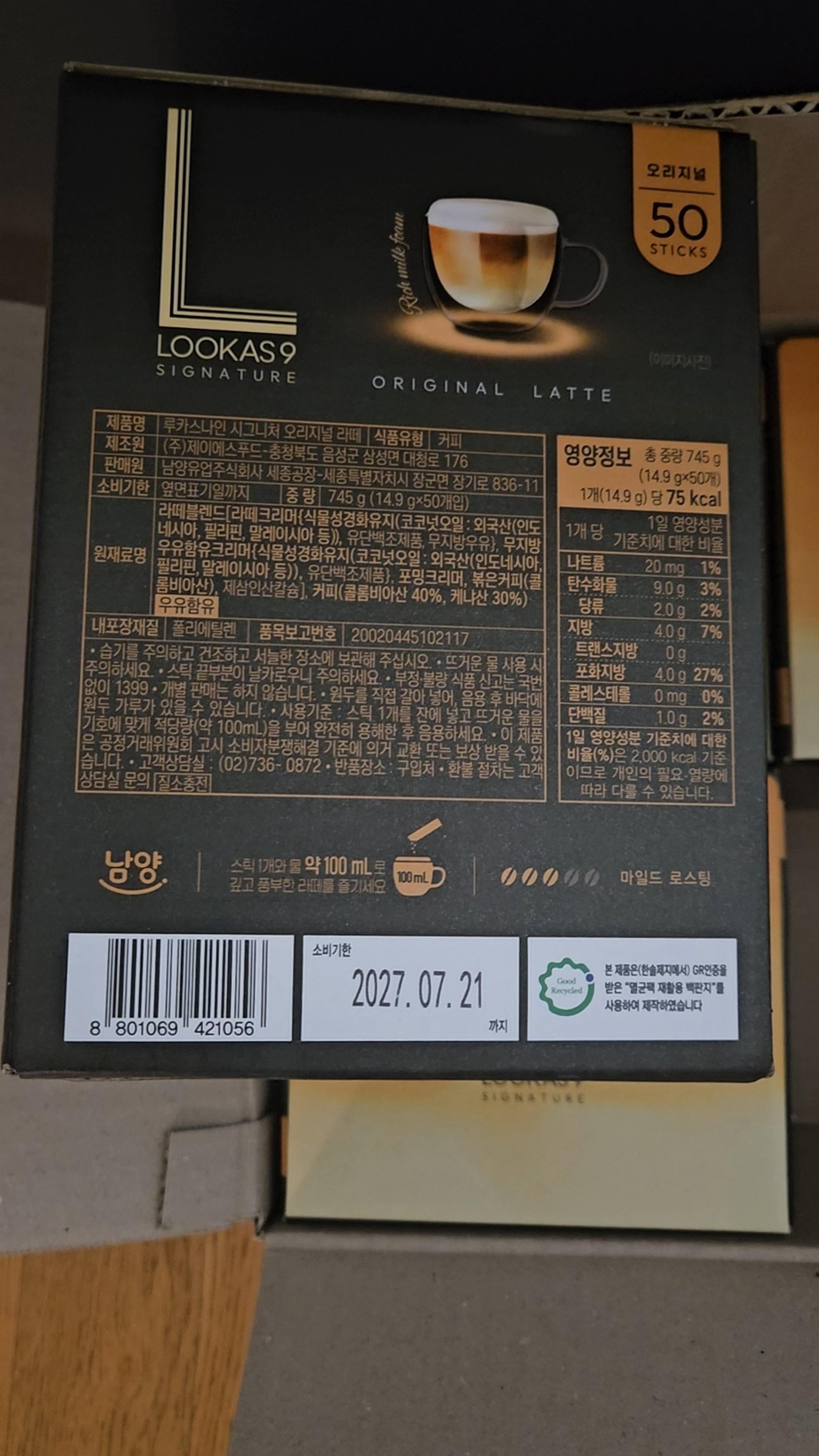 루카스 라떼 넘 맛있어요^^ 배송도 짱 빠릅니다~~