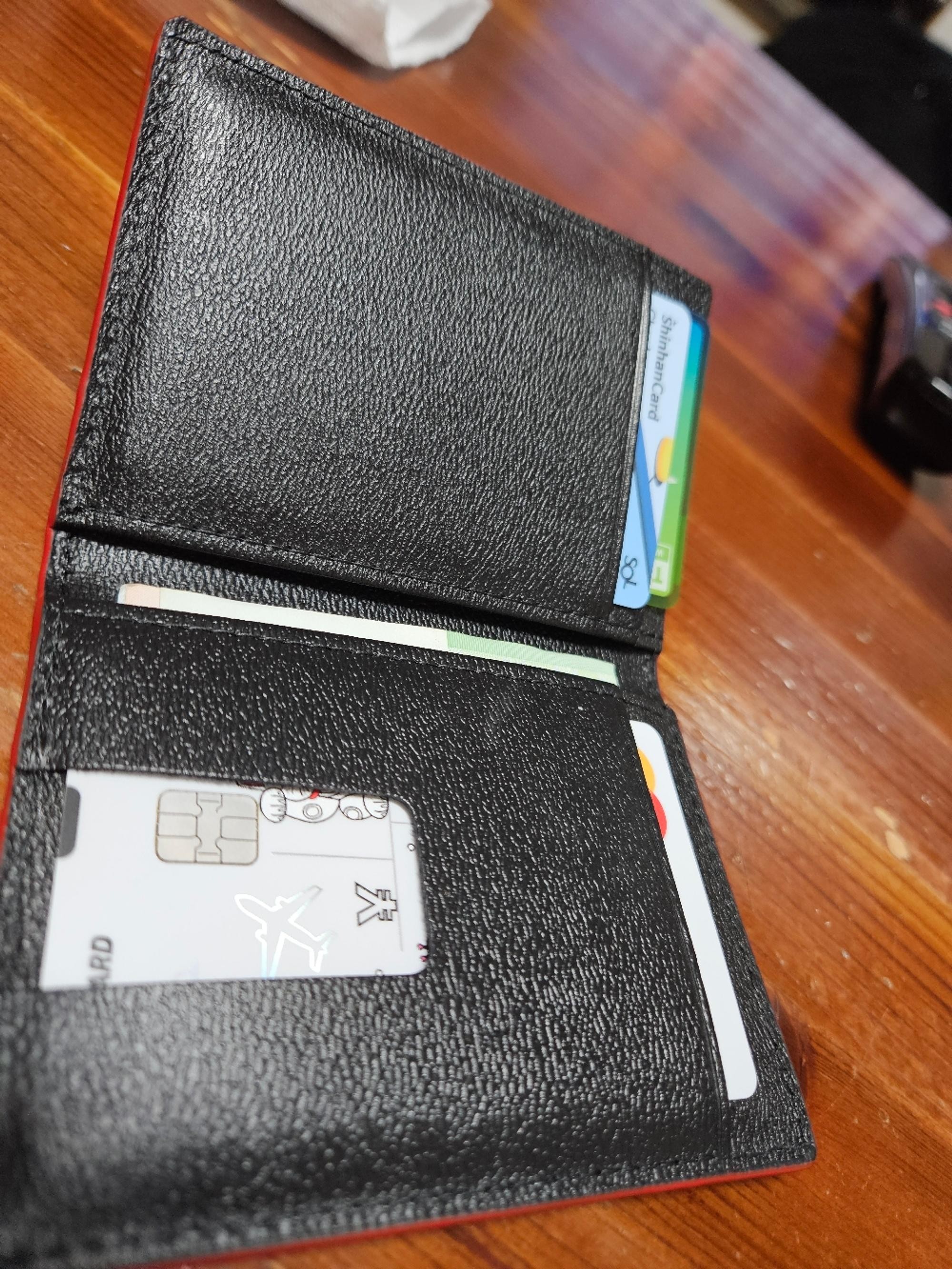 명함 지갑이 없어서 이번에 구입하게 되었는데요 퀄리티 무진장 좋습니다 이 가격에 이 정도 퀄리티는 생각도 안 했는데 너무 좋네요 블랙에 레드 테두리도 마음에 들고요 또 배송도 빨라서 일찍 가지고 다닐수 있어서 좋네요 미니지갑도 고민해보고 서브지갑으로 구입해야겠어요