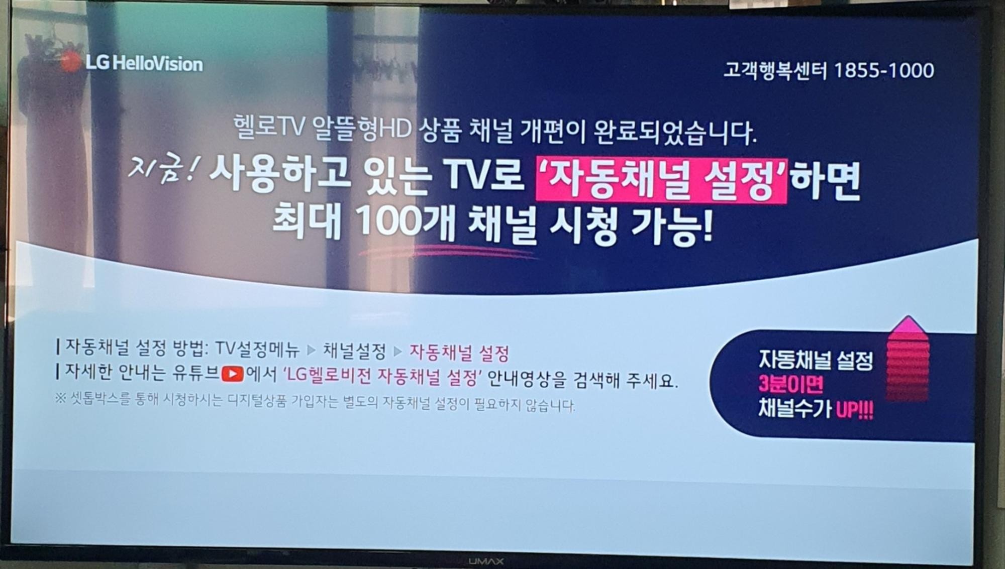 4K이다보니 4K전용 Umax 채널을 시청시 화질이 정말 좋다는 것을 느꼈고 2K(FHD) 일반적인 채널에서는 기본사양인 2K TV에 비해서 약간의 노이즈가 보이나