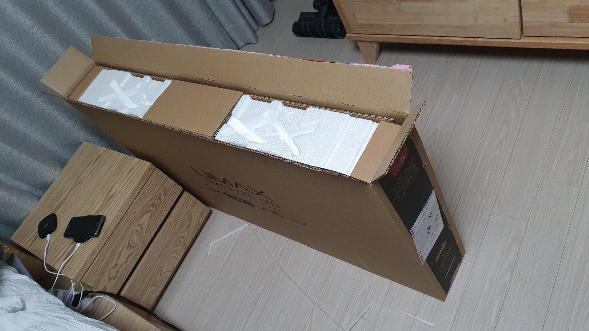 티비가 많이 무겁지는 않지만 그래도 두 사람 이상 작업하시길 추천드려요.