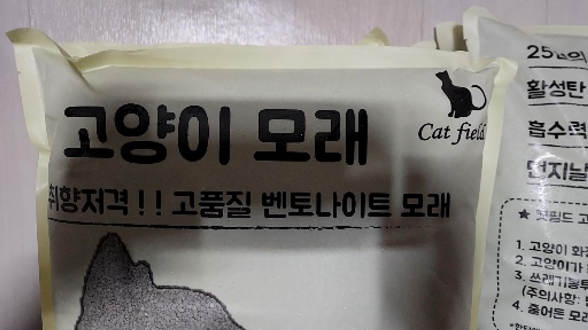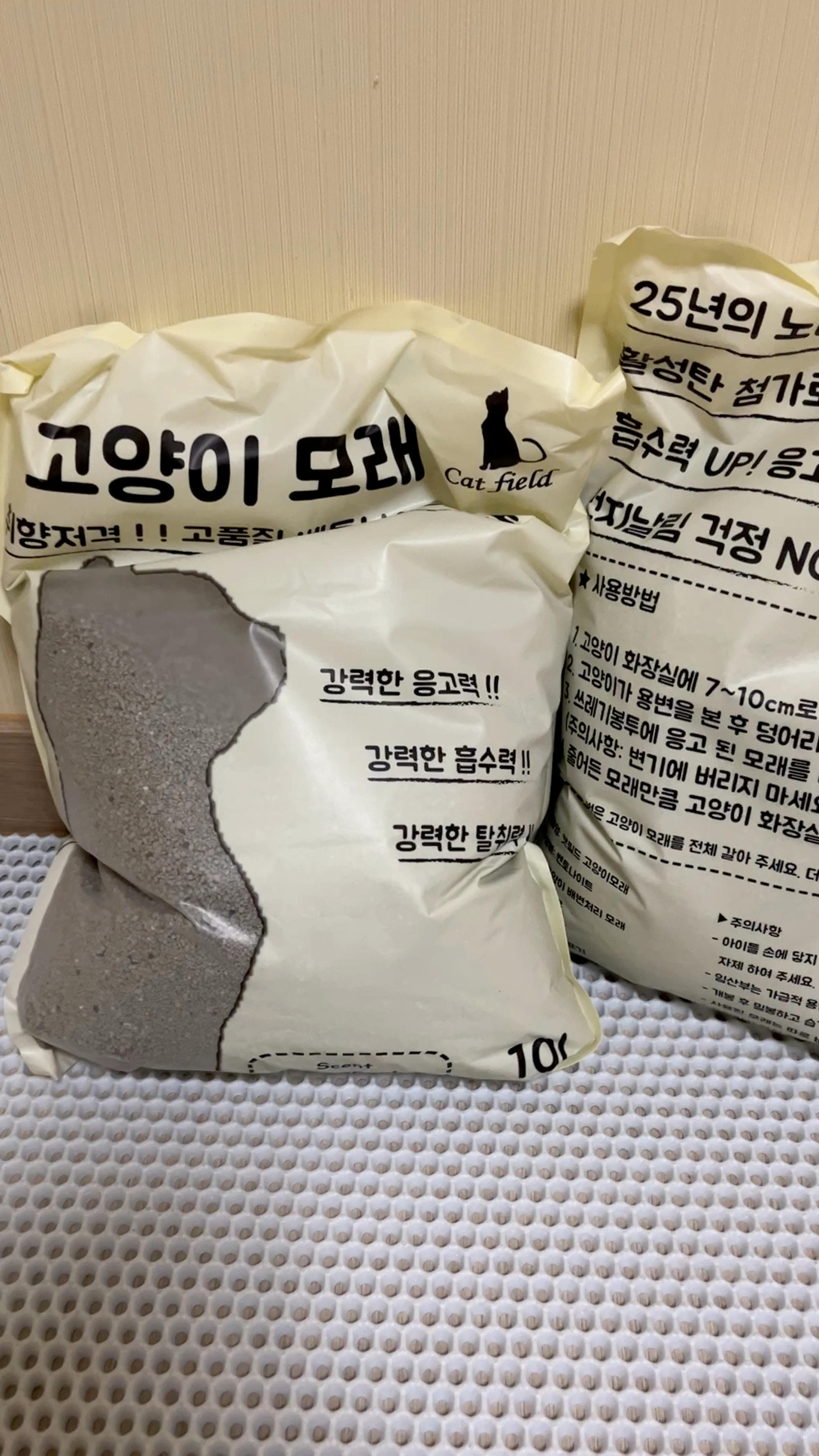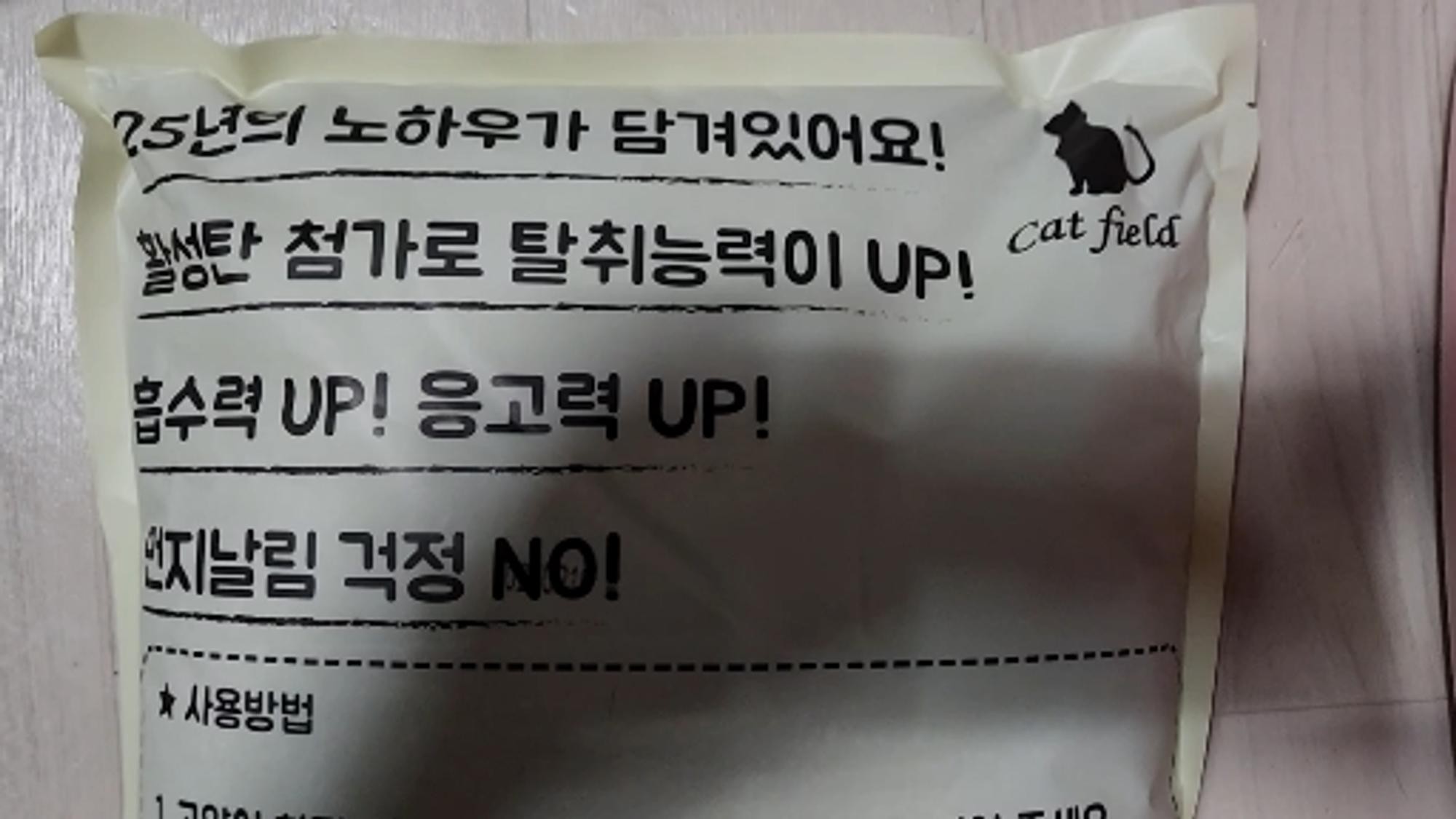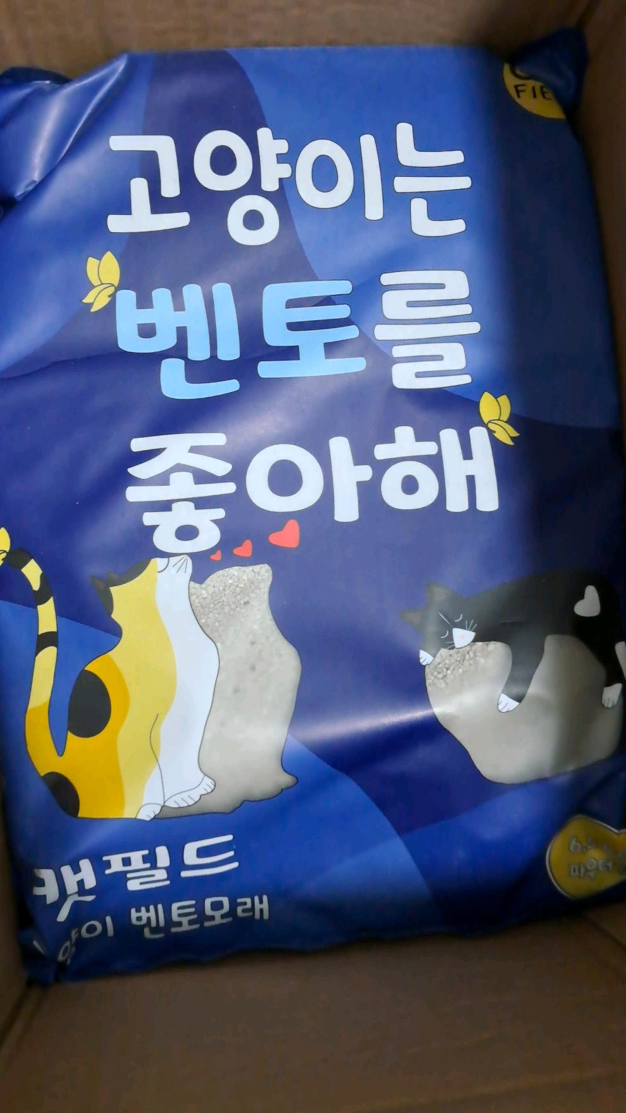 외국모래 쓰다가 가격이 너무 올라서 구입하게 된 캣필드모래 벌써 몇 년째 사용중이네요. 가성비적인 측면에서 괜찮아요