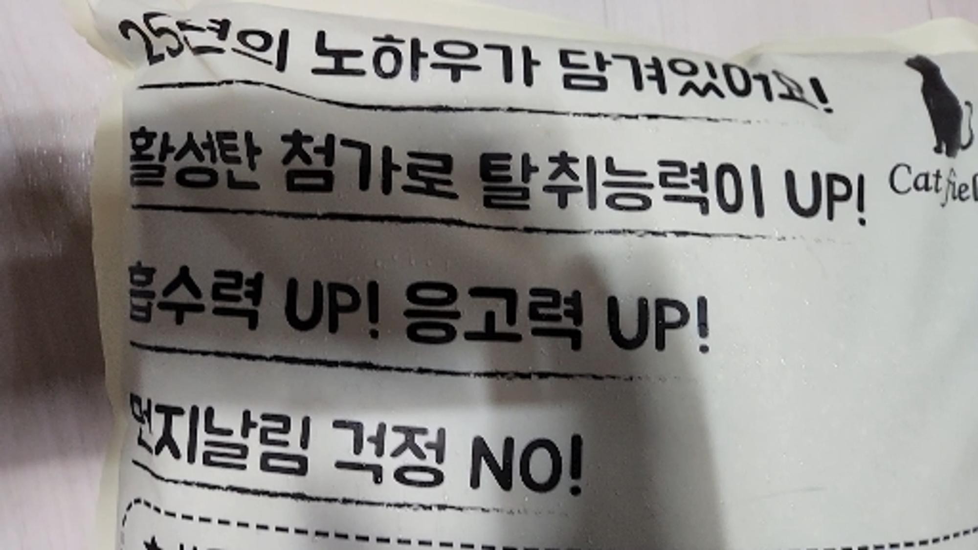 흡수력 짱. 향도 좋고 먼지날림이 덜해서 좋아요. 항상 애용하는 제품이에요. 고양이가 4마리라 자주 구매하네요..