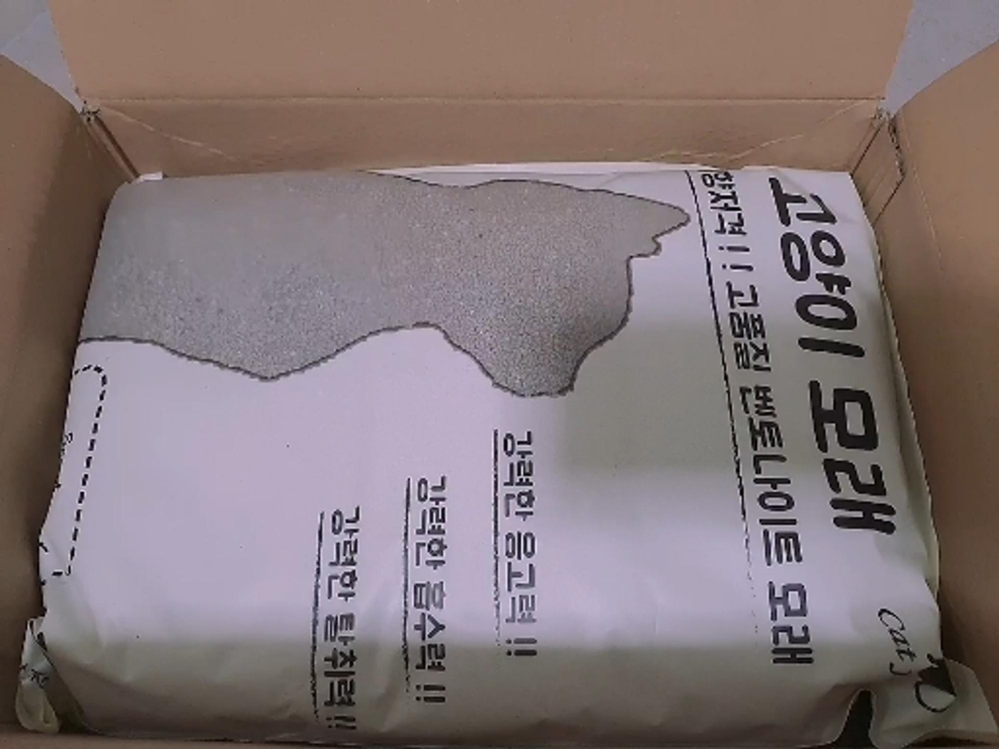 배송은 빠른편이나 박스가 얇은 두겹이라 터진채로 왔네요. 요즘 모래값이 금값이라 너무 비싸지만 그나마 여기 모래가 저렴하여 1년정도 사용했네요.