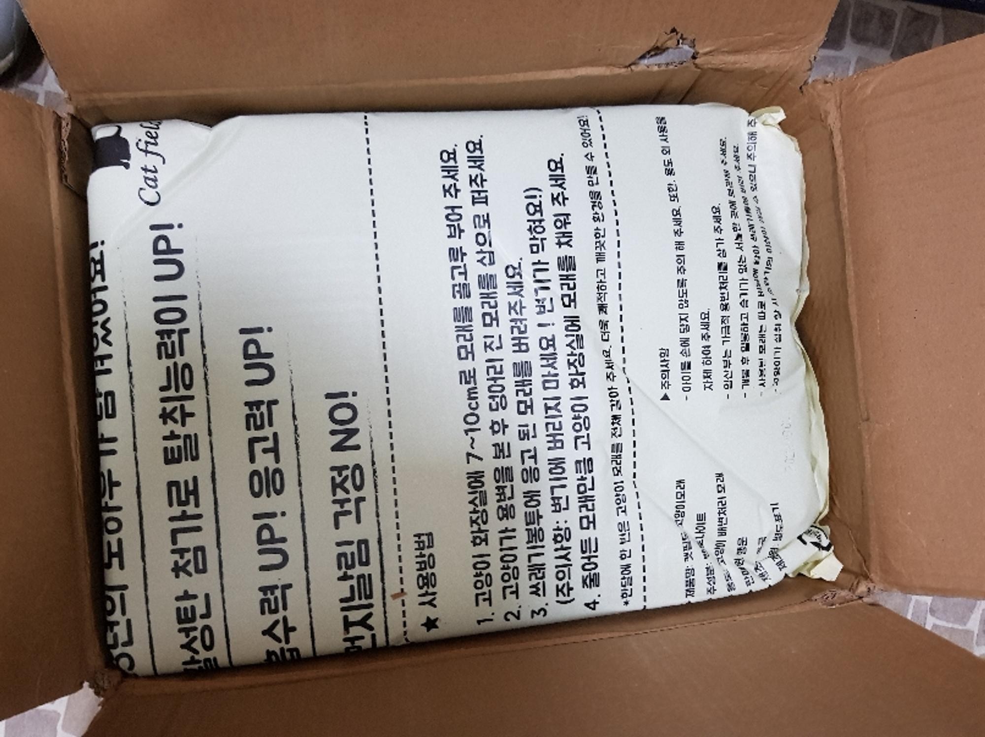 두겹짜리 박스의 튼튼한 포장에 배송도 빠른편이고 가격도 저렴하고 모래의 양도 많습니다. 저렴하니 자주 갈아주기 좋아요