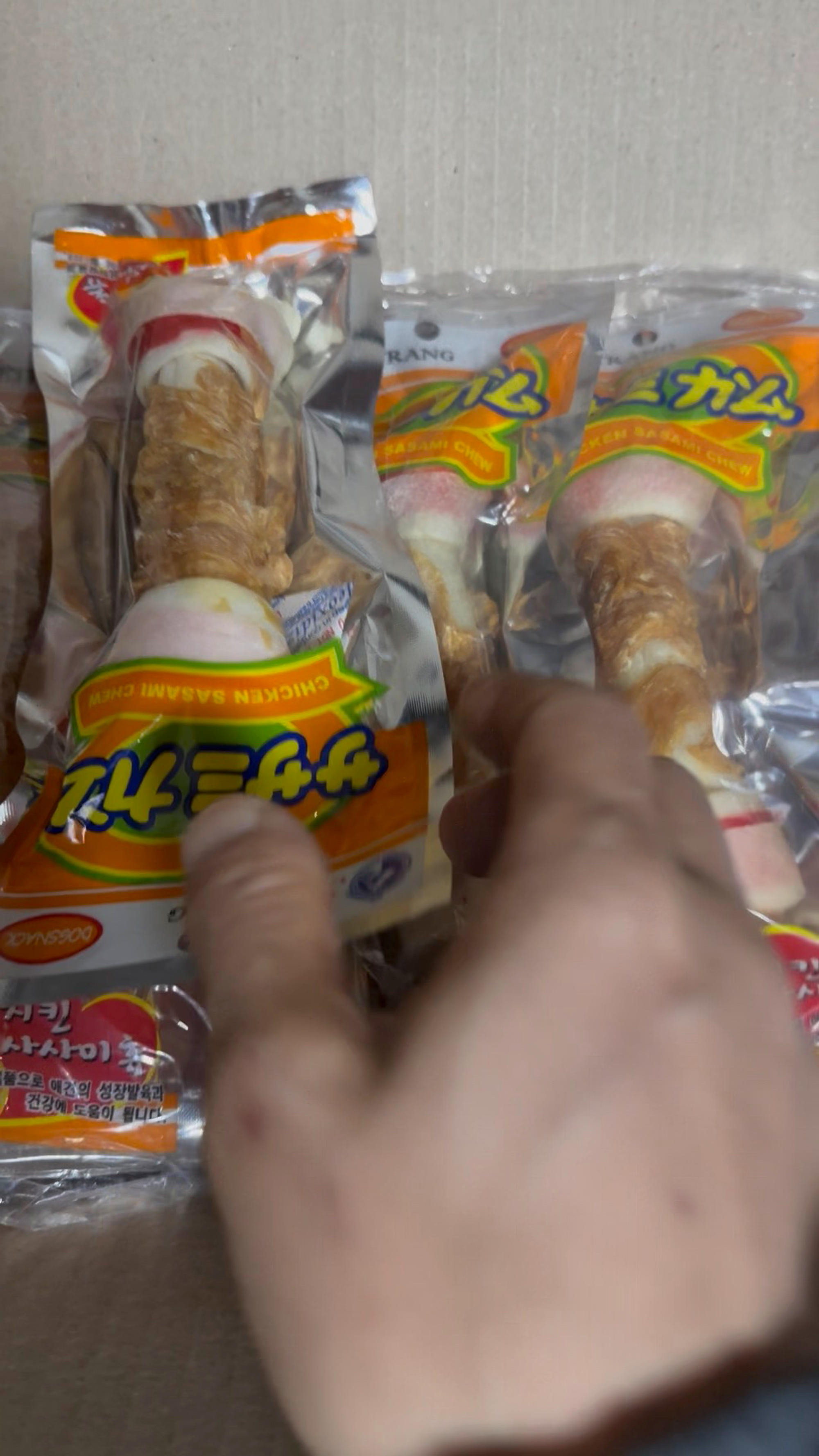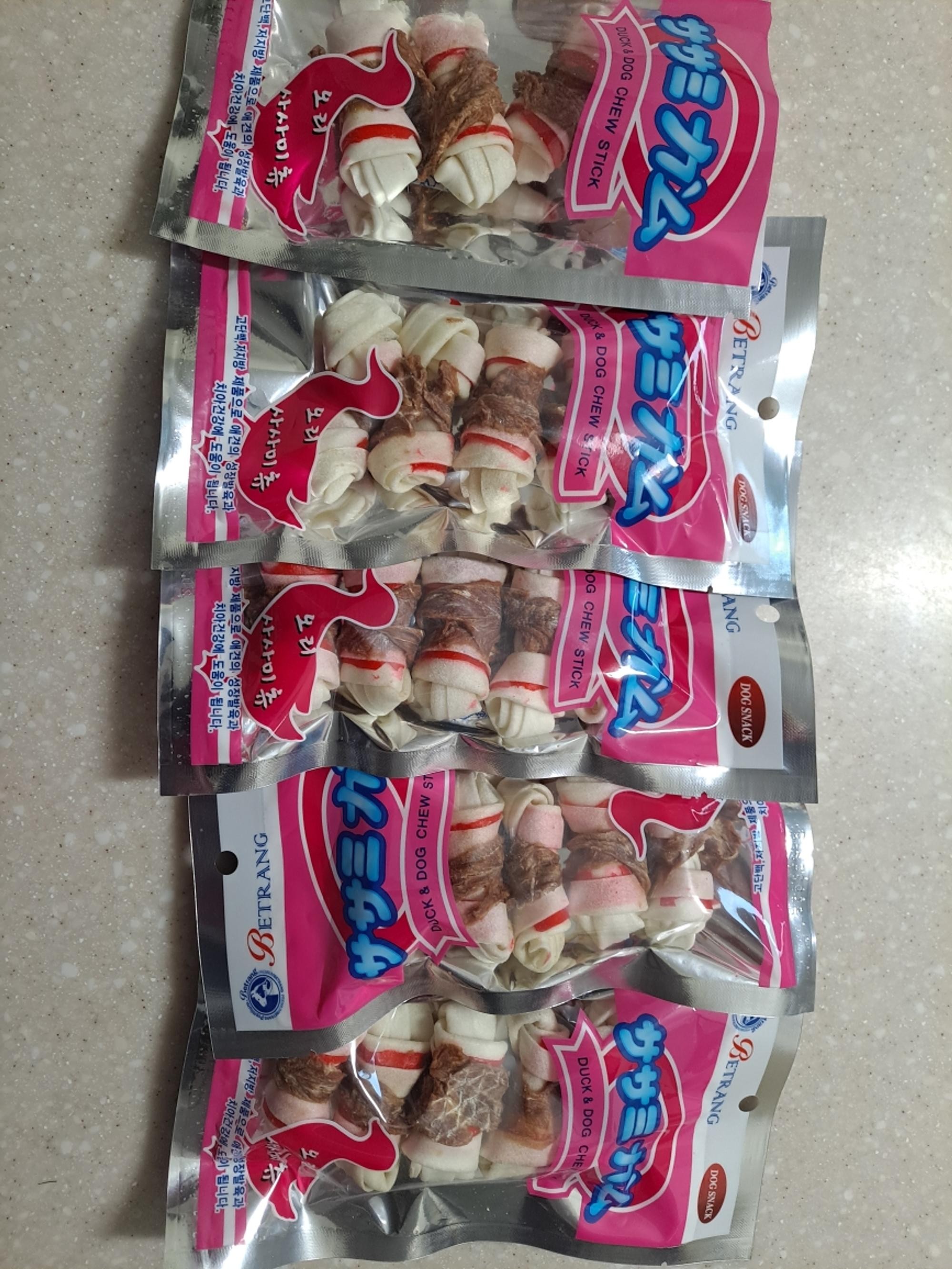 빠른배송감사합니다 ^^저희집유기견초코가좋아하는뼈다귀간식입니다~~작은거사서주려고구입했어요~~택배가오면자기간식인줄알아요ㅠㅠ