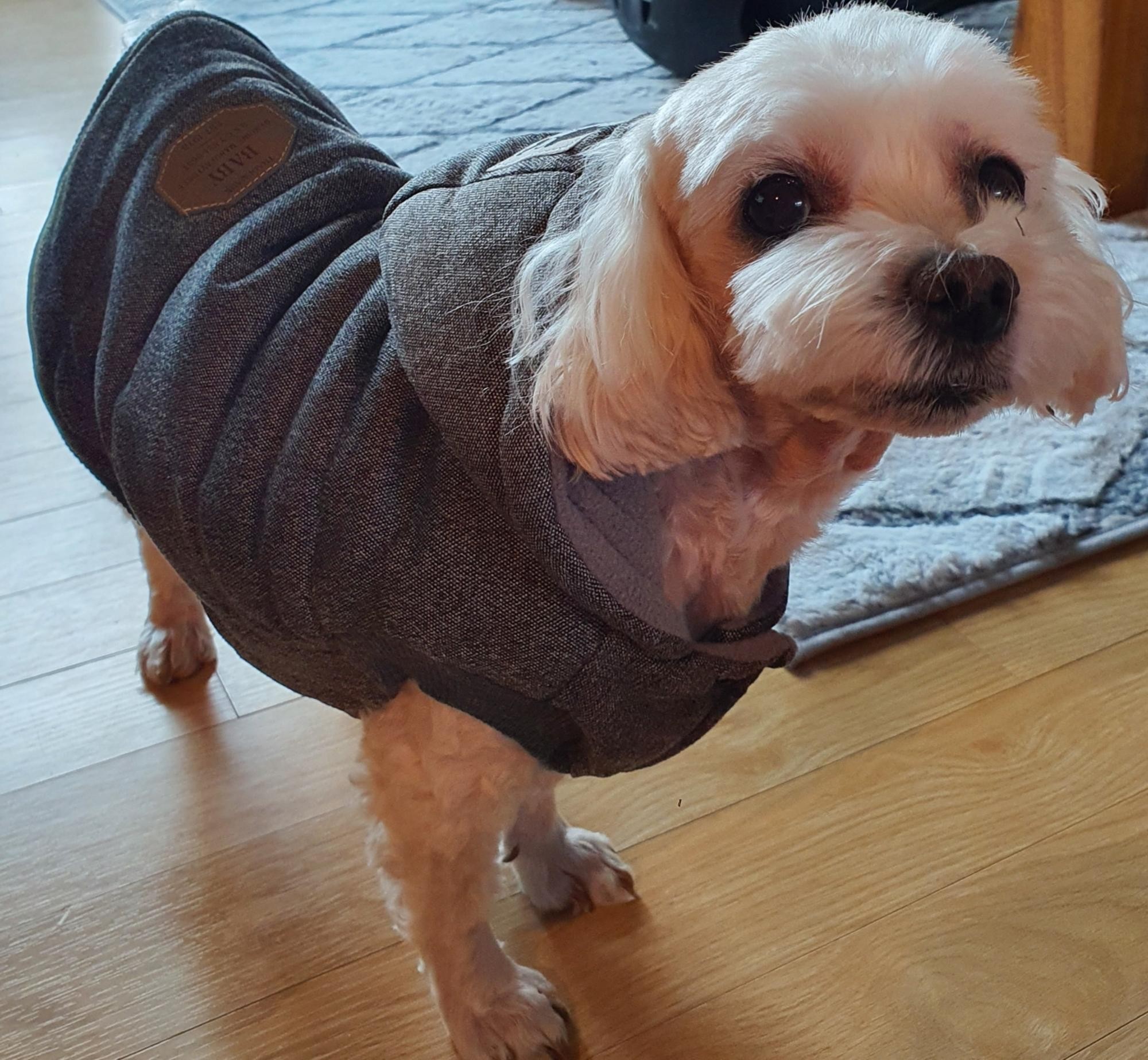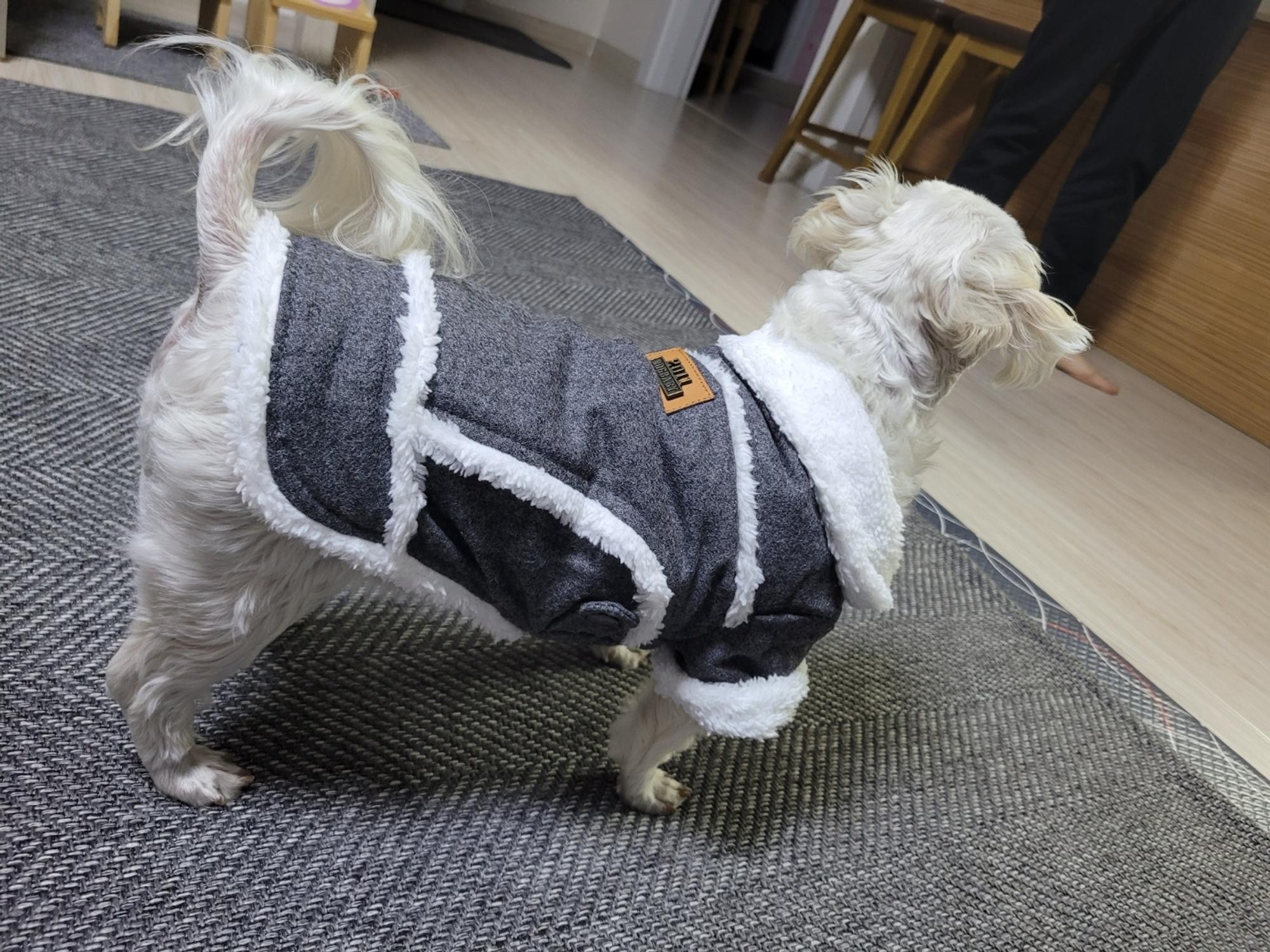 가격대비 만족스러워요. 안감이 기모라 따뜻할거 같아요. 이뻐요~7Kg말티프 XL 잘맞아요~