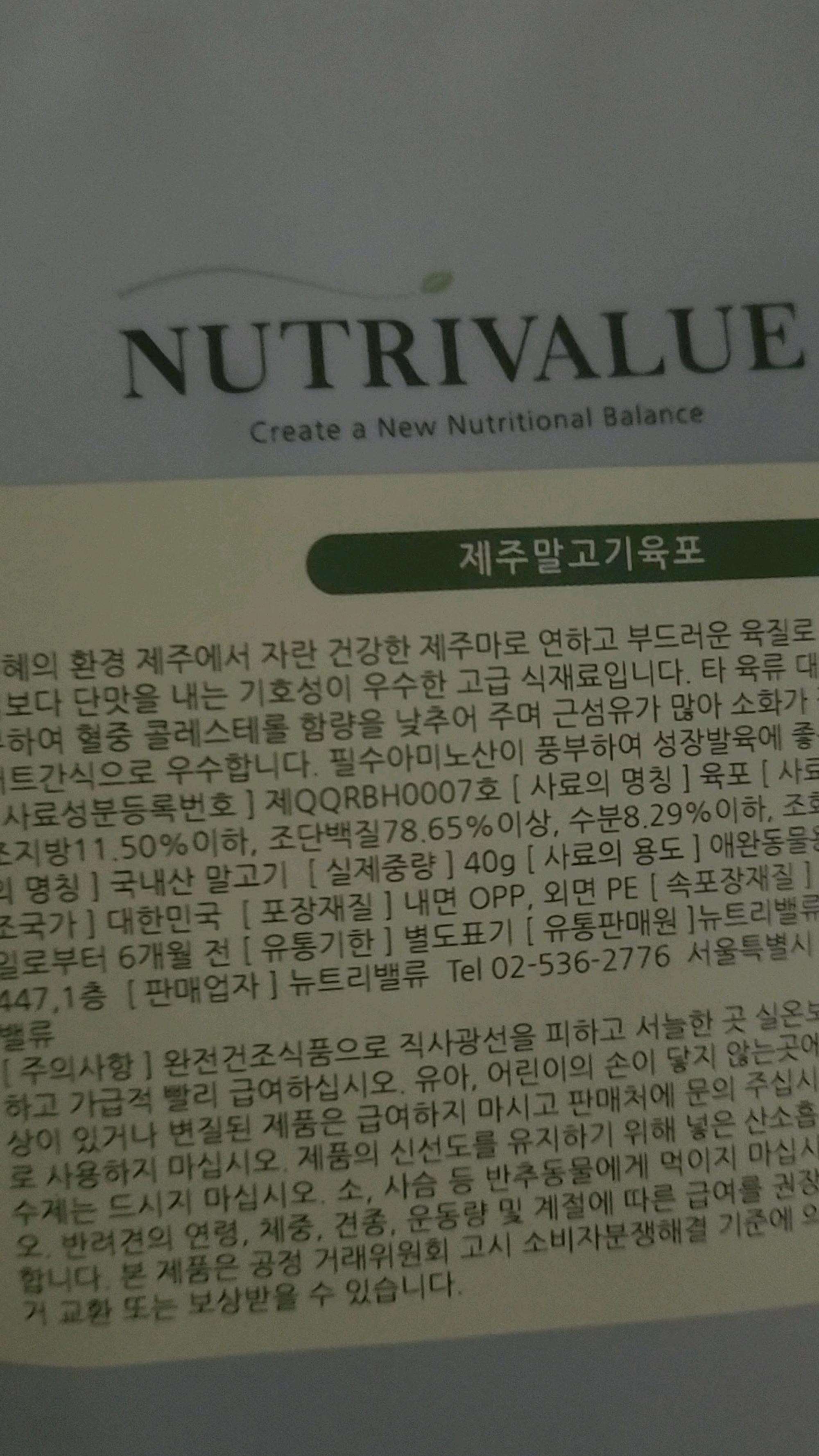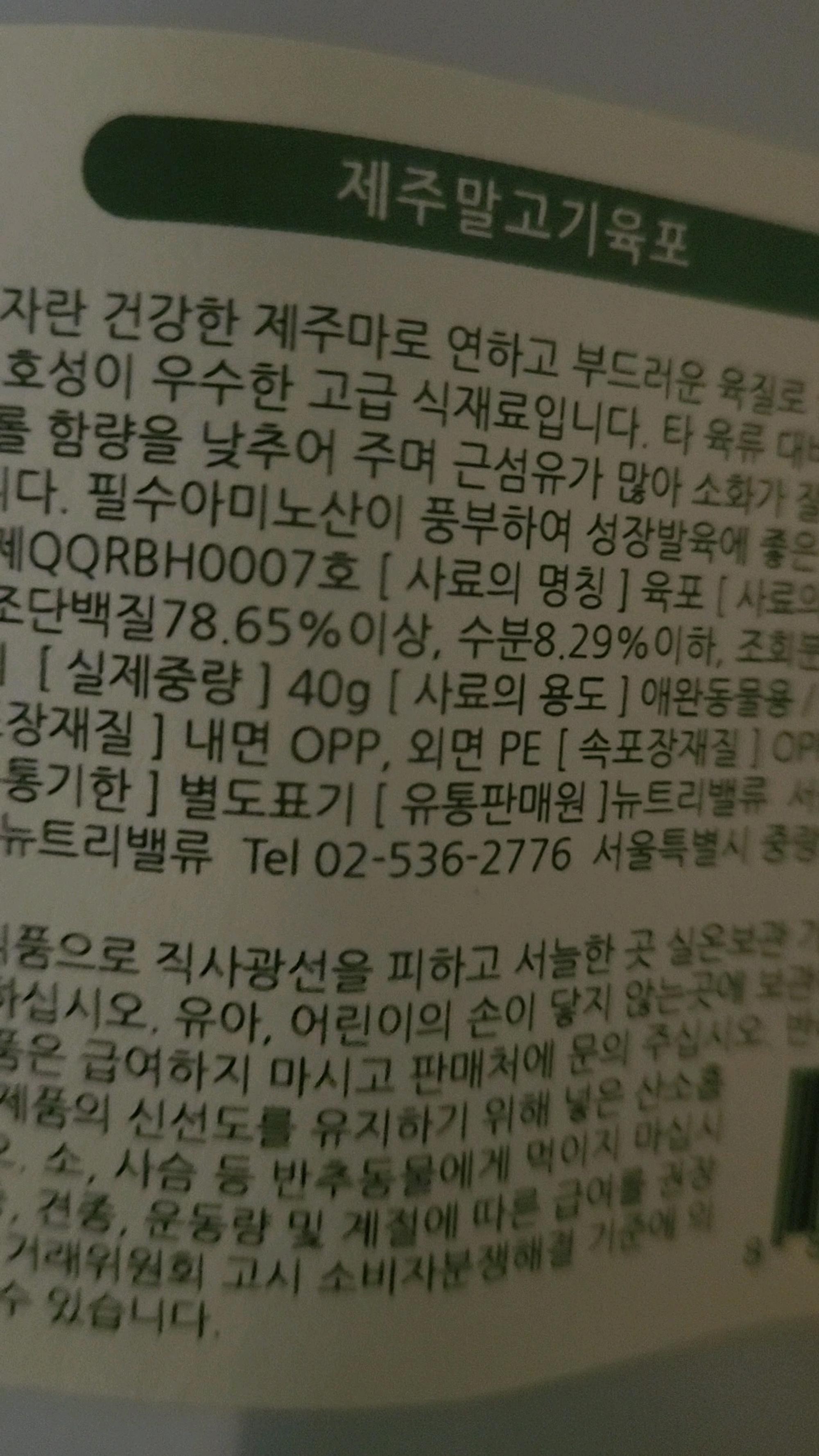 어릴때부터 사료를 안먹어서 육포로 주식으로 먹이고 있어요. .앞으로도 건강하게 만들어주세요.
