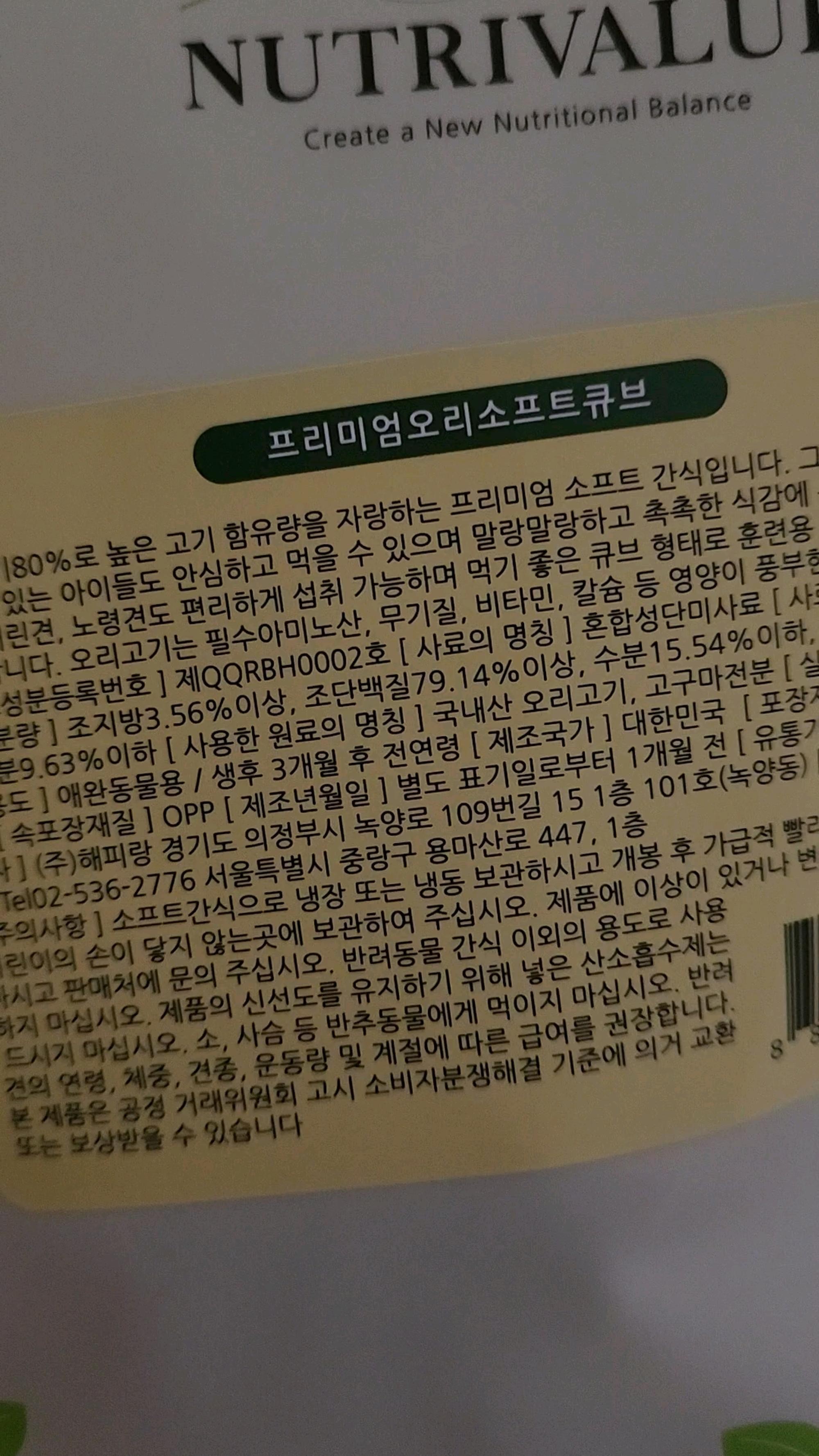 배송 하루만에 왔고 포장 잘되어왔어요 가격도 착하고 국내산으로 만든 질좋은 간식이네요 울강지 잘먹어요