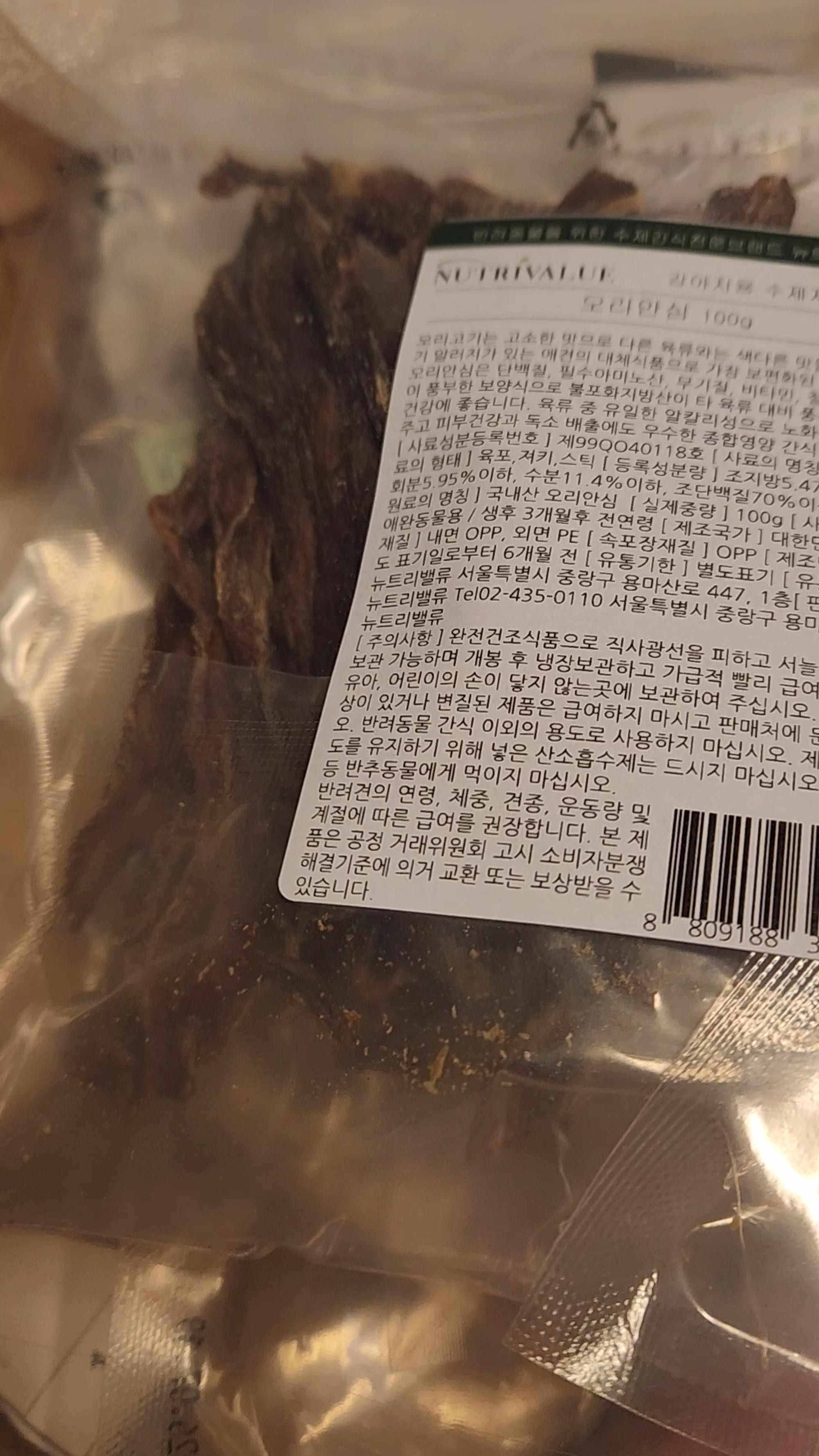 오리안심 너무 잘먹어요.수제간식이라 사줍니다.
