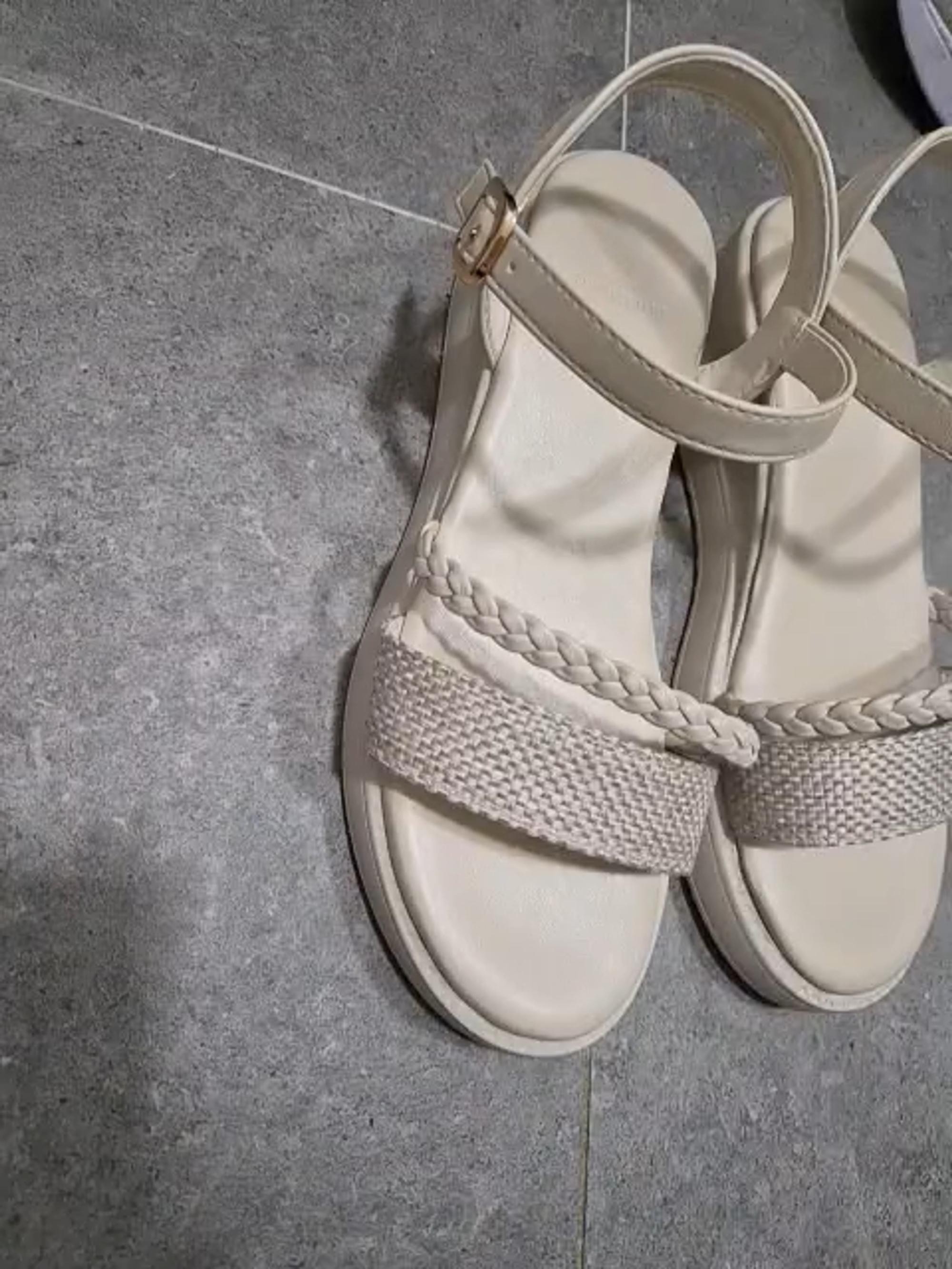 디자인이 예뻐서 다양한 옷에 코디하기에 좋았어요ㅎㅎ 쿠션감이 없어 오래 신다보면 발이 많이 아팠지만ㅠㅠ 탄력성 좋구 내구성도 튼튼한 편이여서 이번 여름 여행에 잘 신고 다녔네요~??
