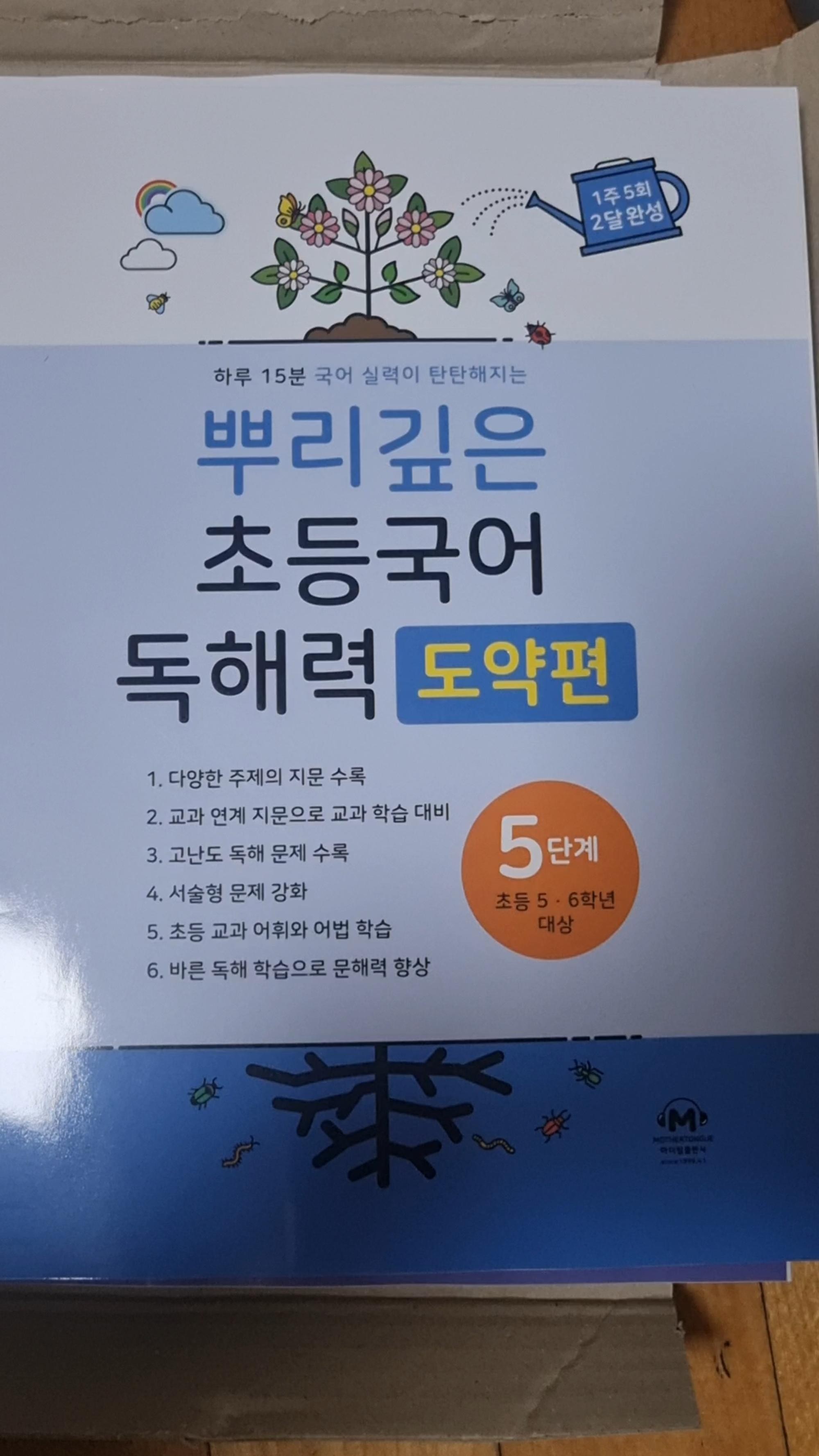 뿌리깊은나무 독해력 1단계 끝나서 2단계 주문했어요.방학동안 아이랑 하니까 괜찮아요.배송이 빨라요.