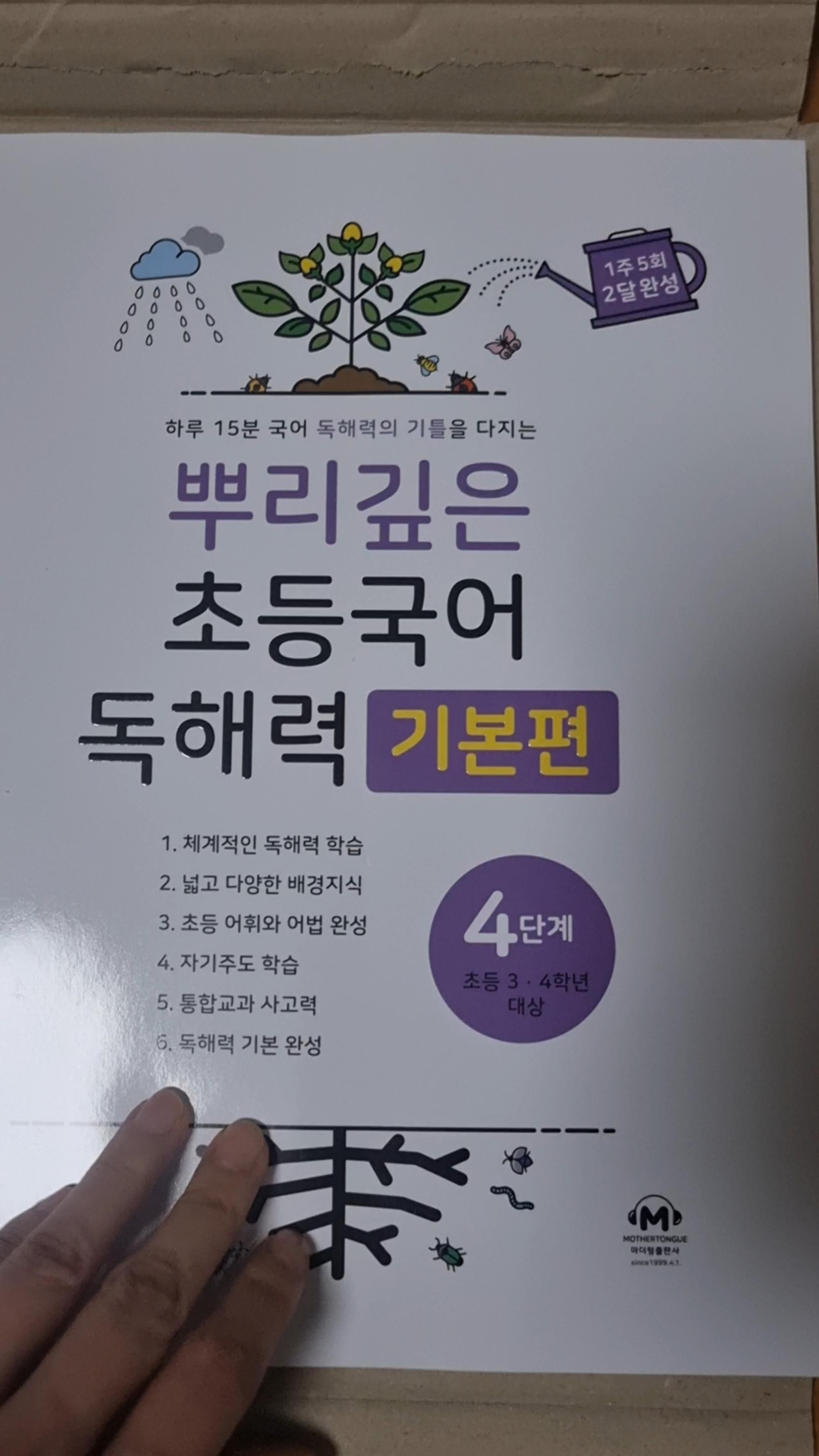 뿌리깊은 초등국어 독해력 3,4권 잘 풀어서 5권도 미리 주문했어요 책 구성도 좋고 4학년에 풀기 적당해요