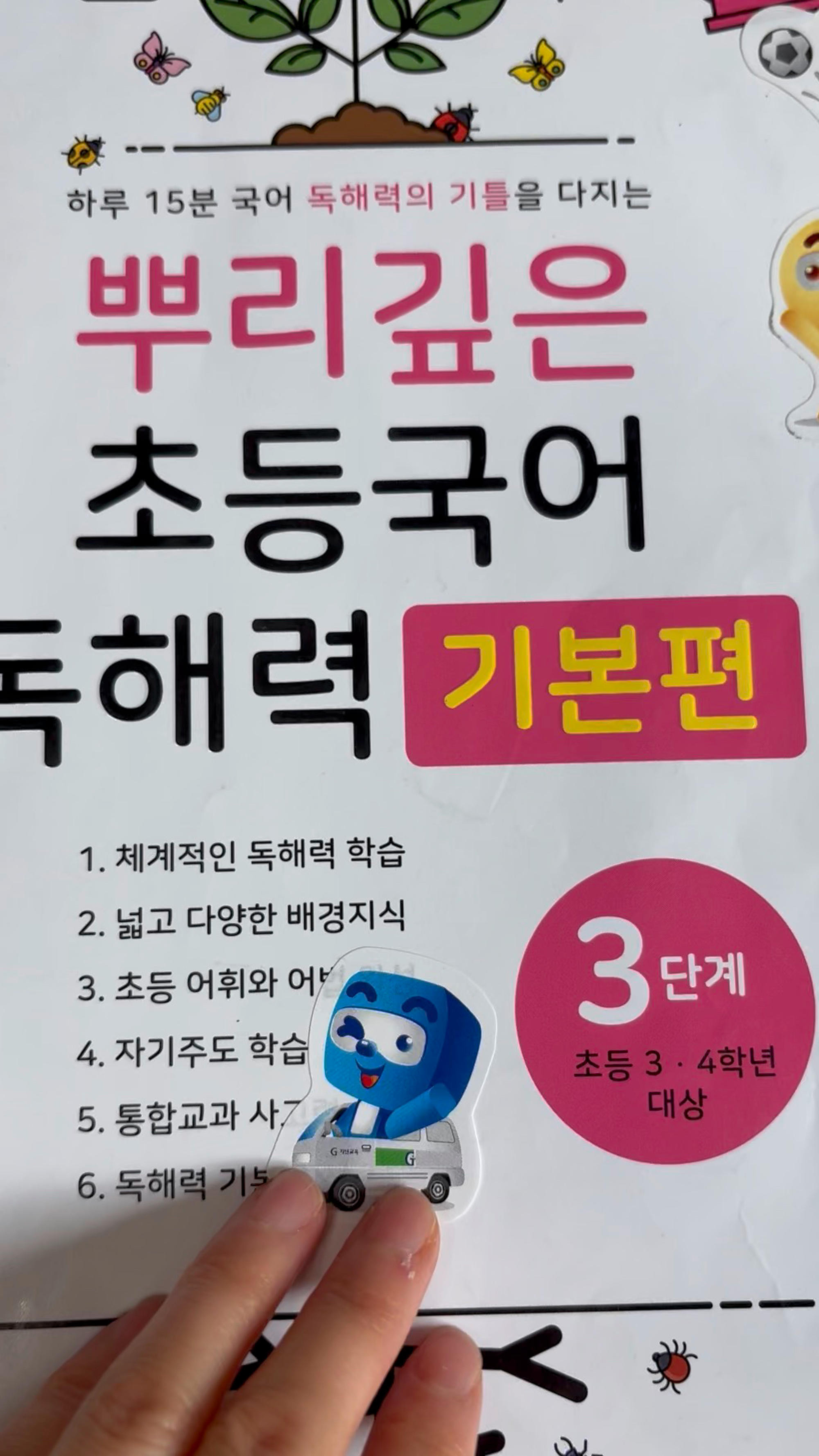 뿌리깊은 초등독해는 확실히 기본기 잡기에 좋은 교재예요. 문제 구성이 단계적으로 되어 있어서 아이가 부담 없이 풀 수 있고, 지문도 교과 연계라 학교 공부랑 자연스럽게 연결돼요. 단순 문제 풀이가 아니라 핵심어 찾기, 문단 요약 같은 독해 습관을 잡아줘서 부모 입장에서도 만족도 높음. 하루 분량도 적당해서 꾸준히 하기 좋고, 독해 약한 아이들 기초 다지기용으로 딱이에요.
