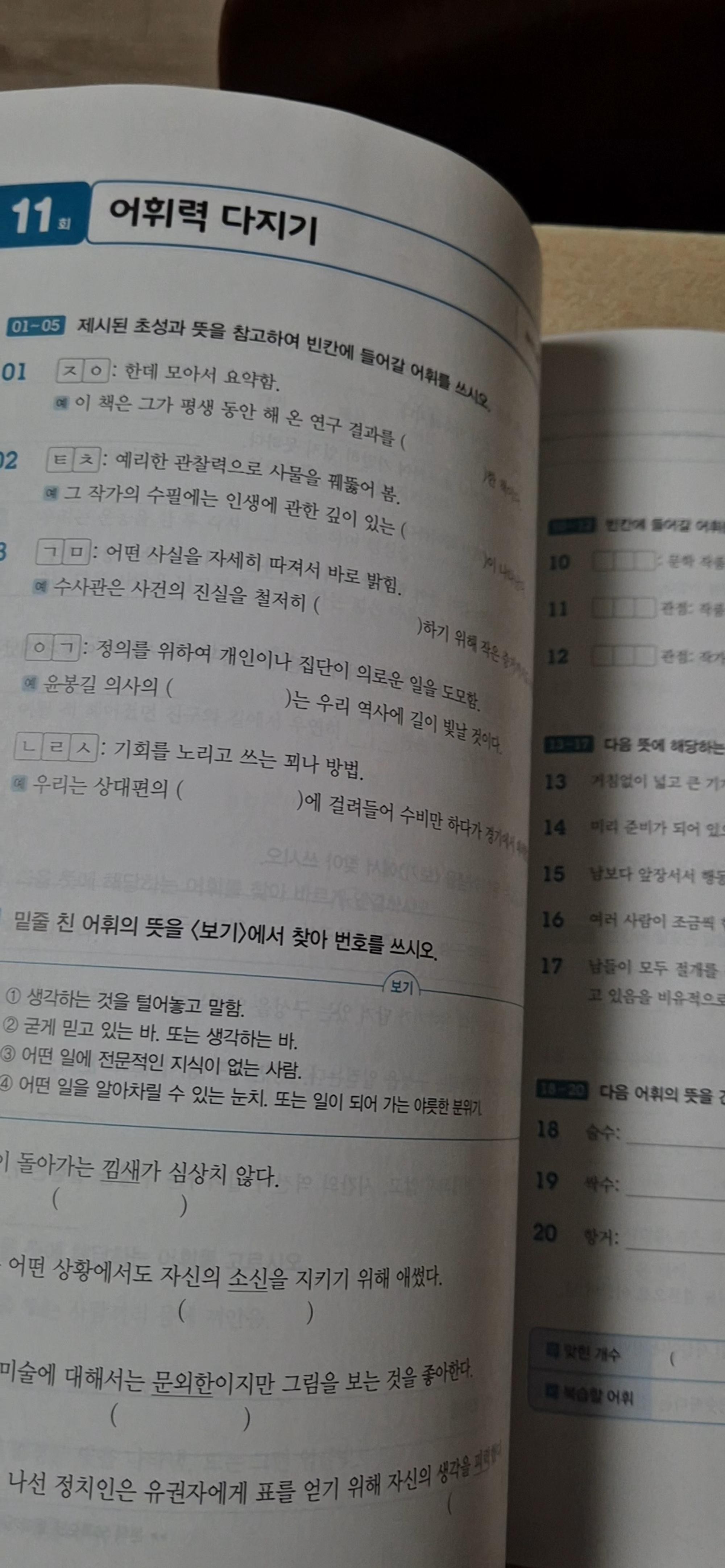 답안지 앞부분은 어휘력 다지기로 다시 한 번 복습할 수 있도록 구성되어 알차게 활용할 수 있어서 좋아요ㅎㅎ