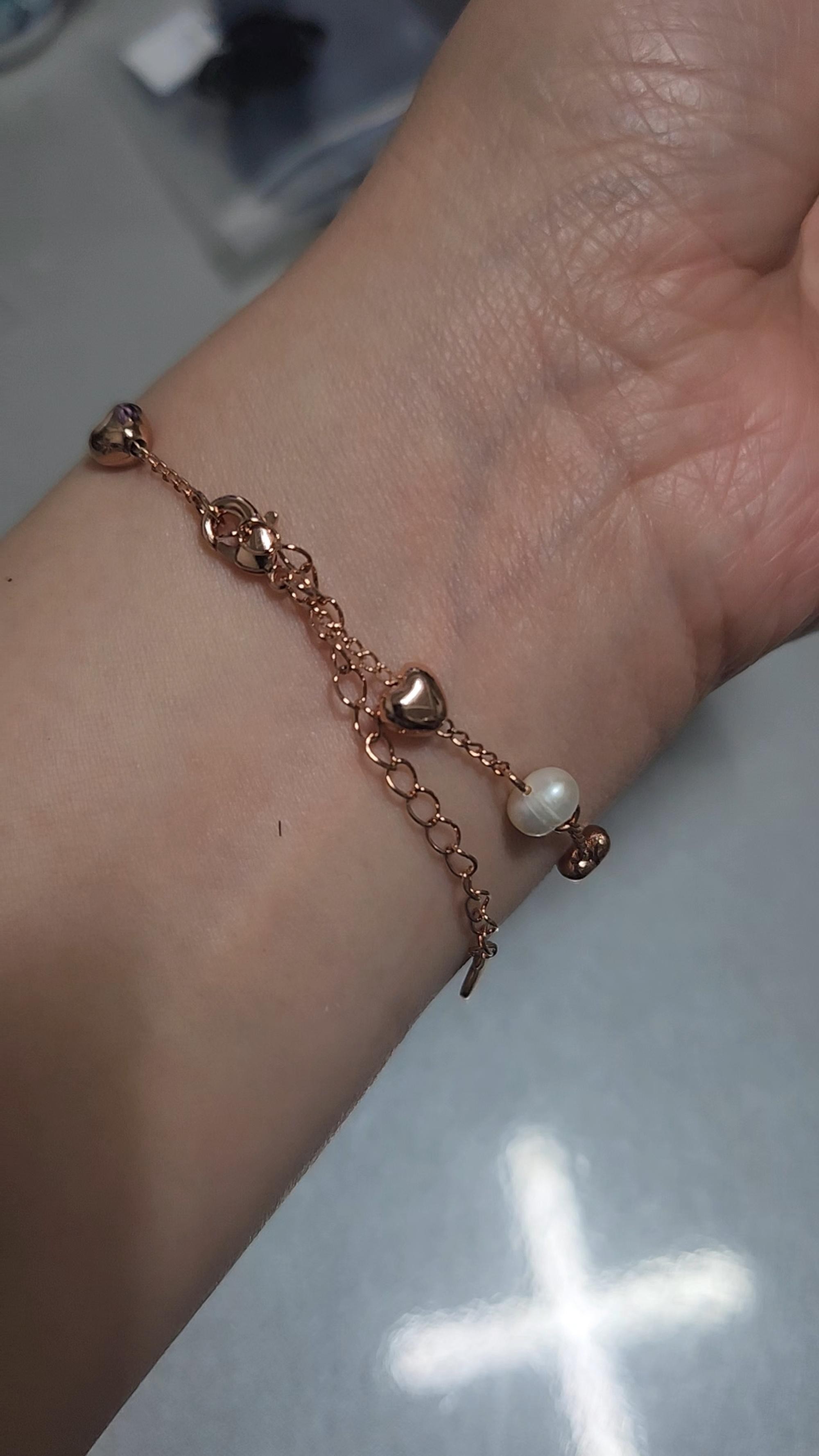 제 피부톤이 로즈골드나 은이 좀 맞는거 같은데 그냥 보다가 괜찮아보여서 같은 디자인의 팔찌랑 같이 구매했어요~ 받아보니 이쁘네요^^ 땀이 많은 체질이라 여름엔 악세사리 자체를 못해서 지금 신나게 하고 다녀야겠어요^^