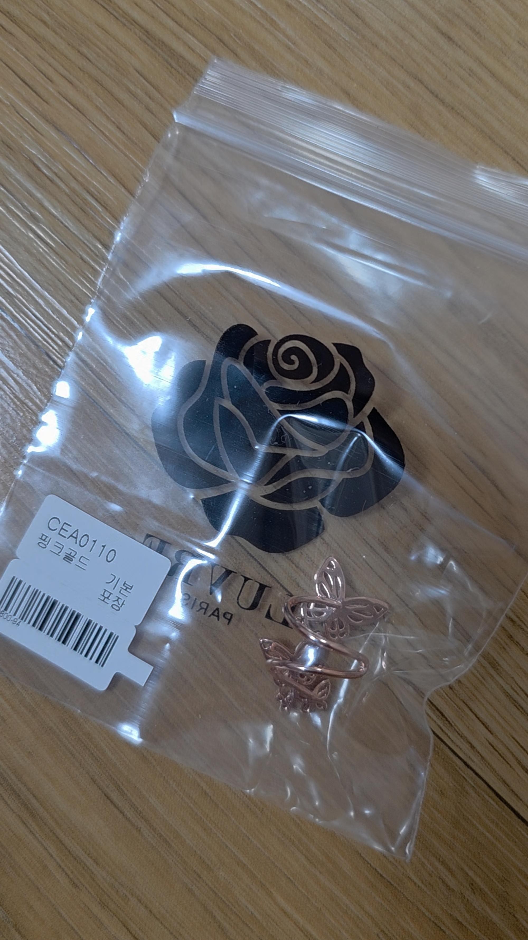 배송도 빠르고 포장도 잘되어서 왔습니다 . 착용해보니 가볍고 디자인 독특하고 이뻐요. 처음 착용할땐 귀에 까만게 묻어났는데 잘닦으니 이제 안묻네요.
