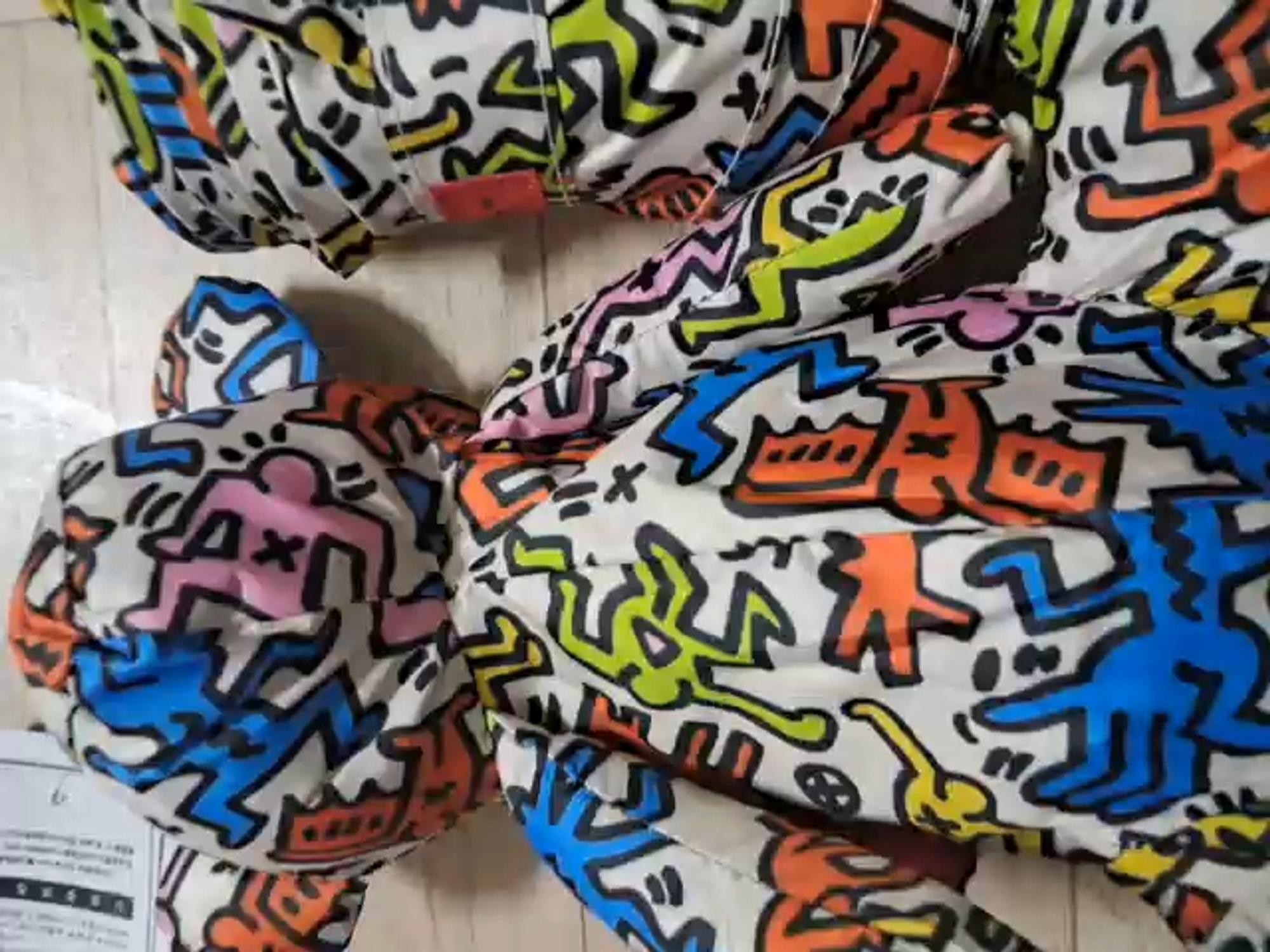 키스 해링 특유의 그림체가 작게 프린트 된 우양산입니다. 3단 접이식으로 보통 양산보다 사이즈가 좀 작아요. 곰돌이 인형안에 들어 있는 특이한 양산이라 사이즈가 작은가 봐요. 가방에 달고 다니다가 필요할때 꺼내 쓸수 있어서 비상용과 장식용 두가지 활용점이 좋아 구매했어요. 도특한 양산을 구매해 아주 만족합니다.