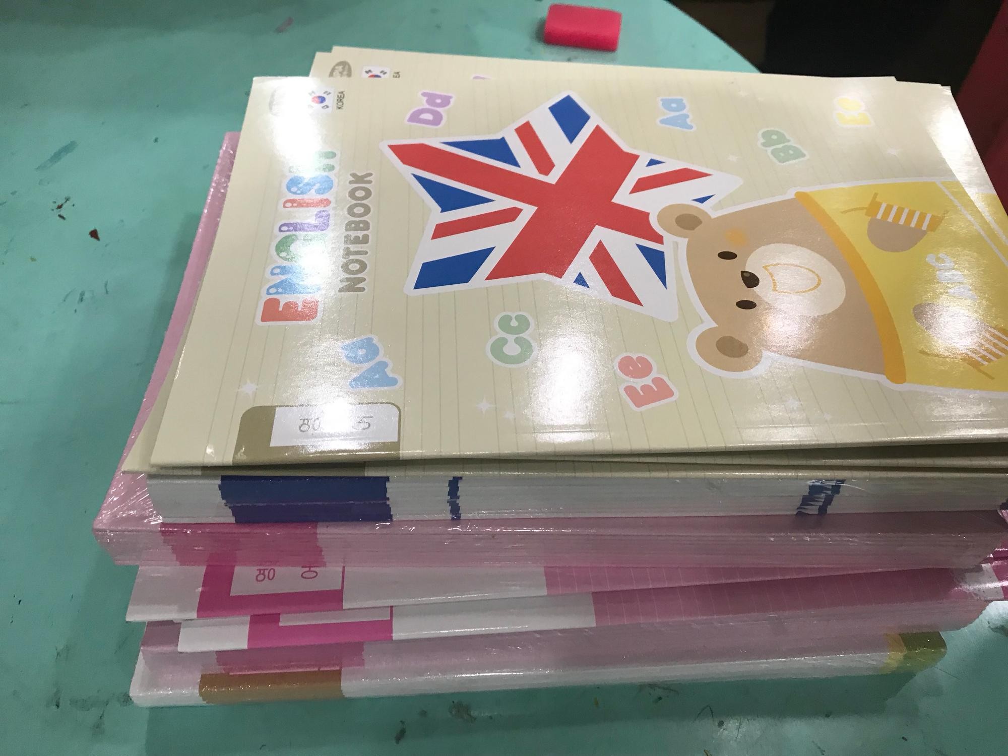 제품을 색상별로 골고루 보내 주셨고 200권씩 두박스가 묶여서 와서 박스가 많이 찌그러져 있었고 제품에 이상이 있을까 걱정했는데 괜찮았습니다 공책도 비닐로 묶음이 되어