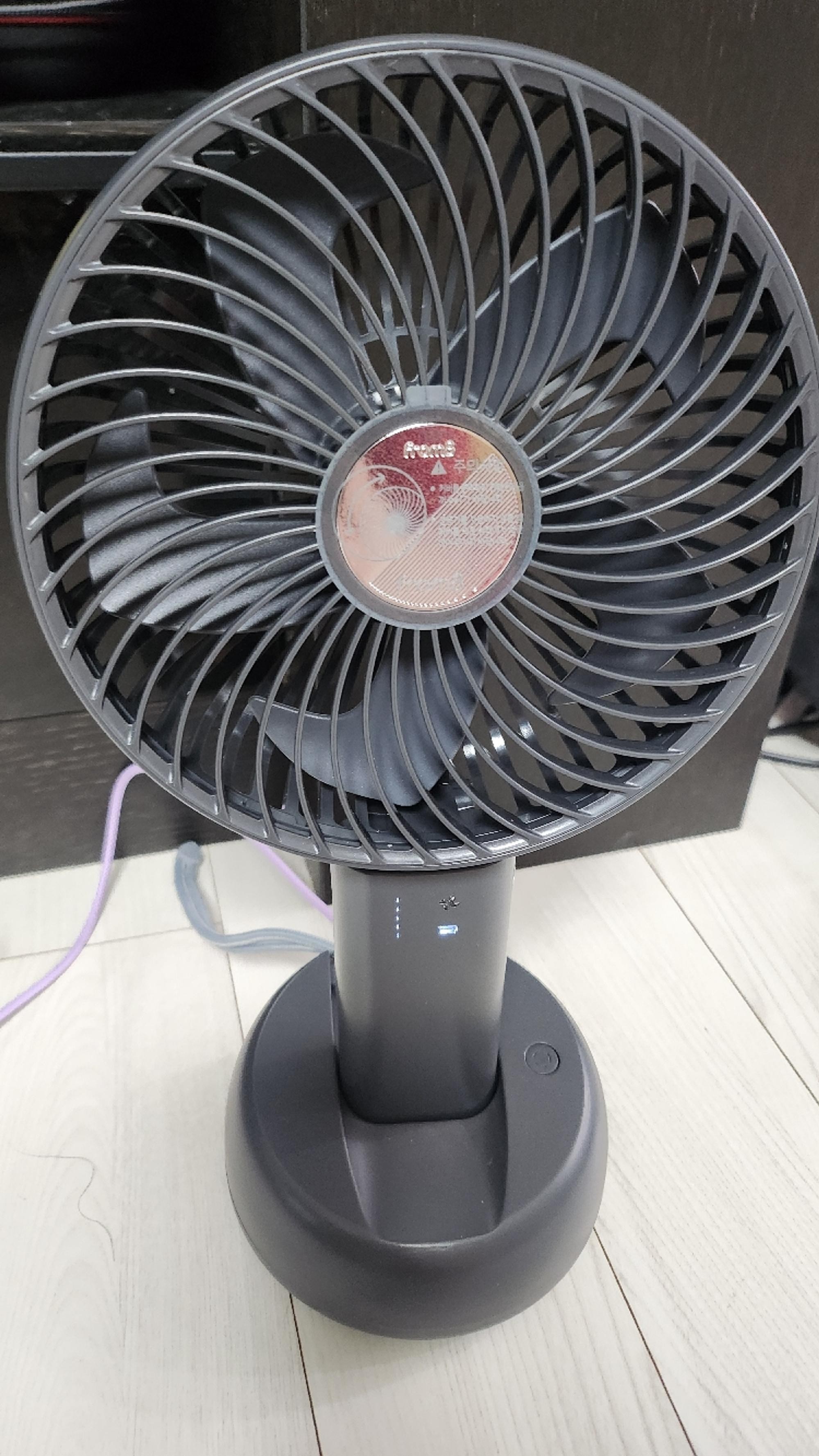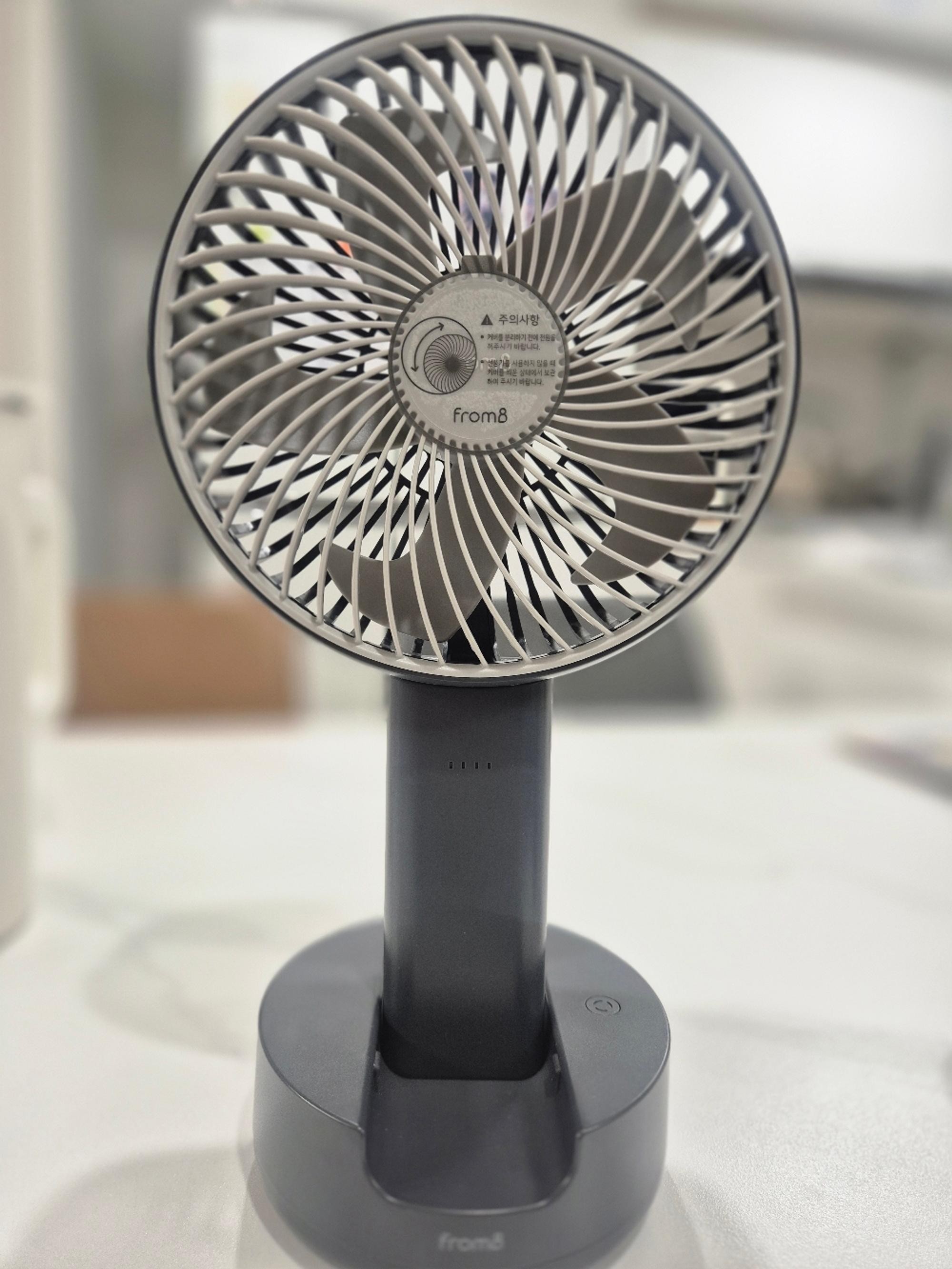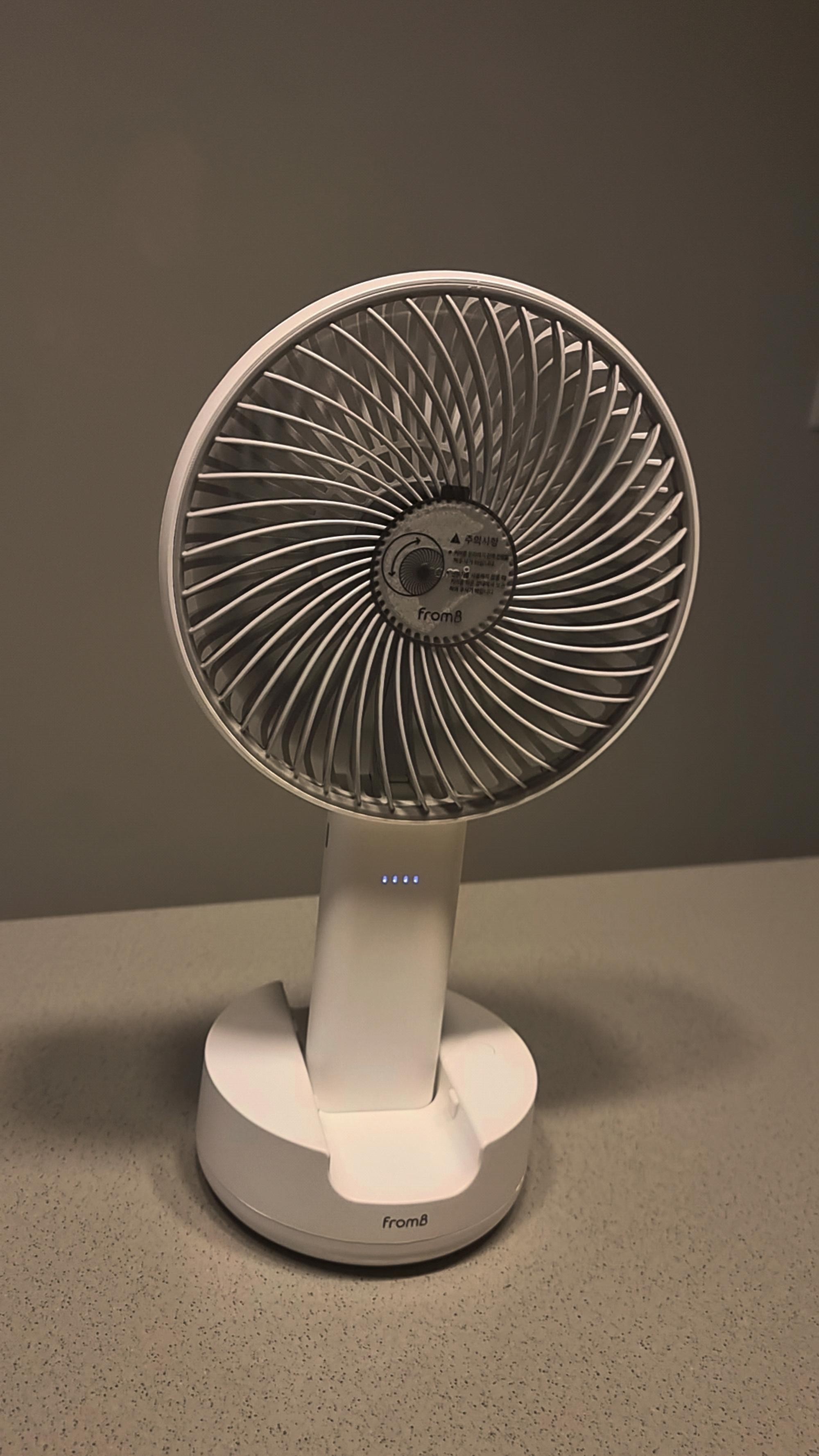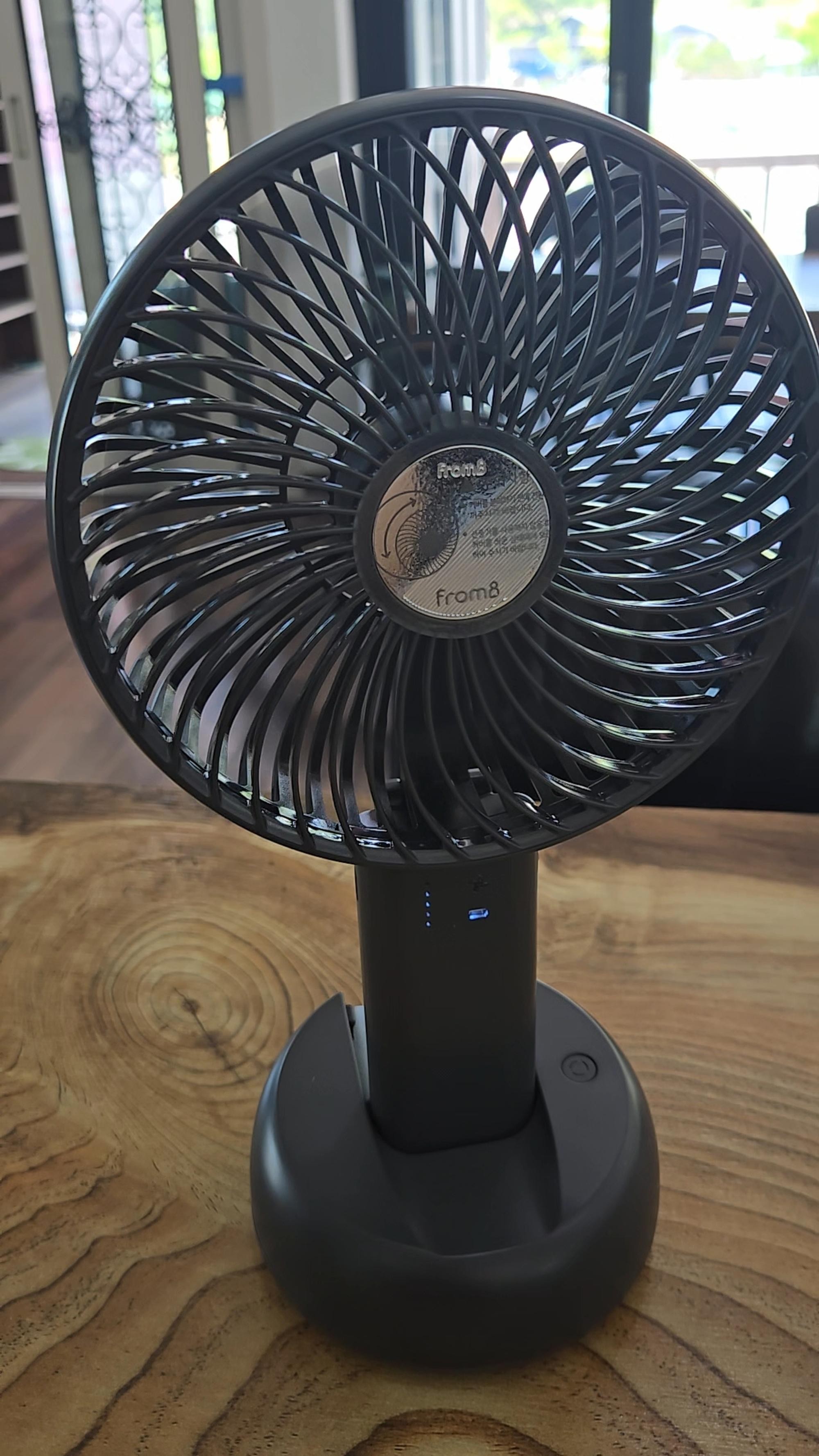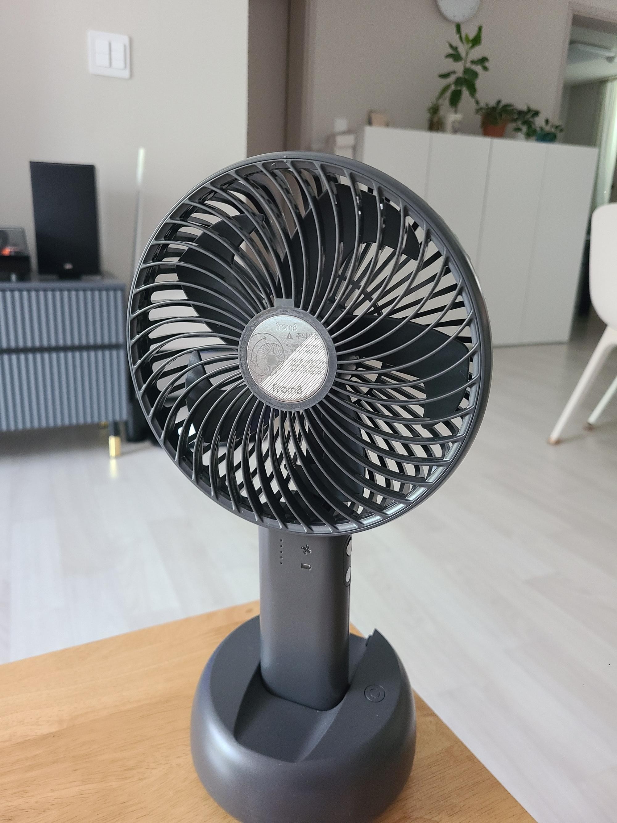 배터리 용량도 커서 한 번 충전하면 오래 가고, 함께 주신 크래들은 집에서 딱 고정해서 쓰기 좋아요. 더워도 에어컨 안 틀고 아직 선풍기로 버티는데 큰 선풍기랑 같이 돌리면 시원합니다.