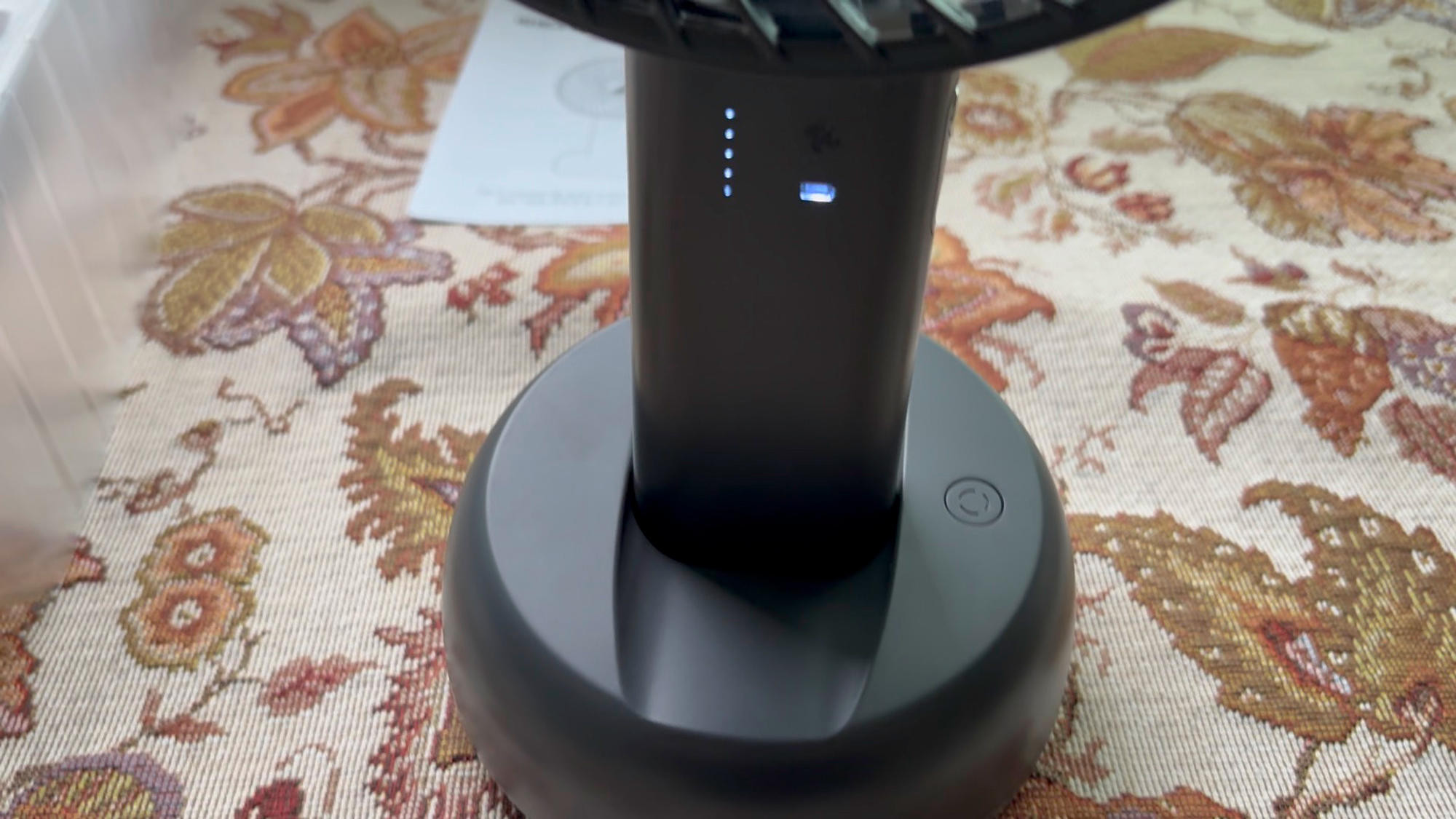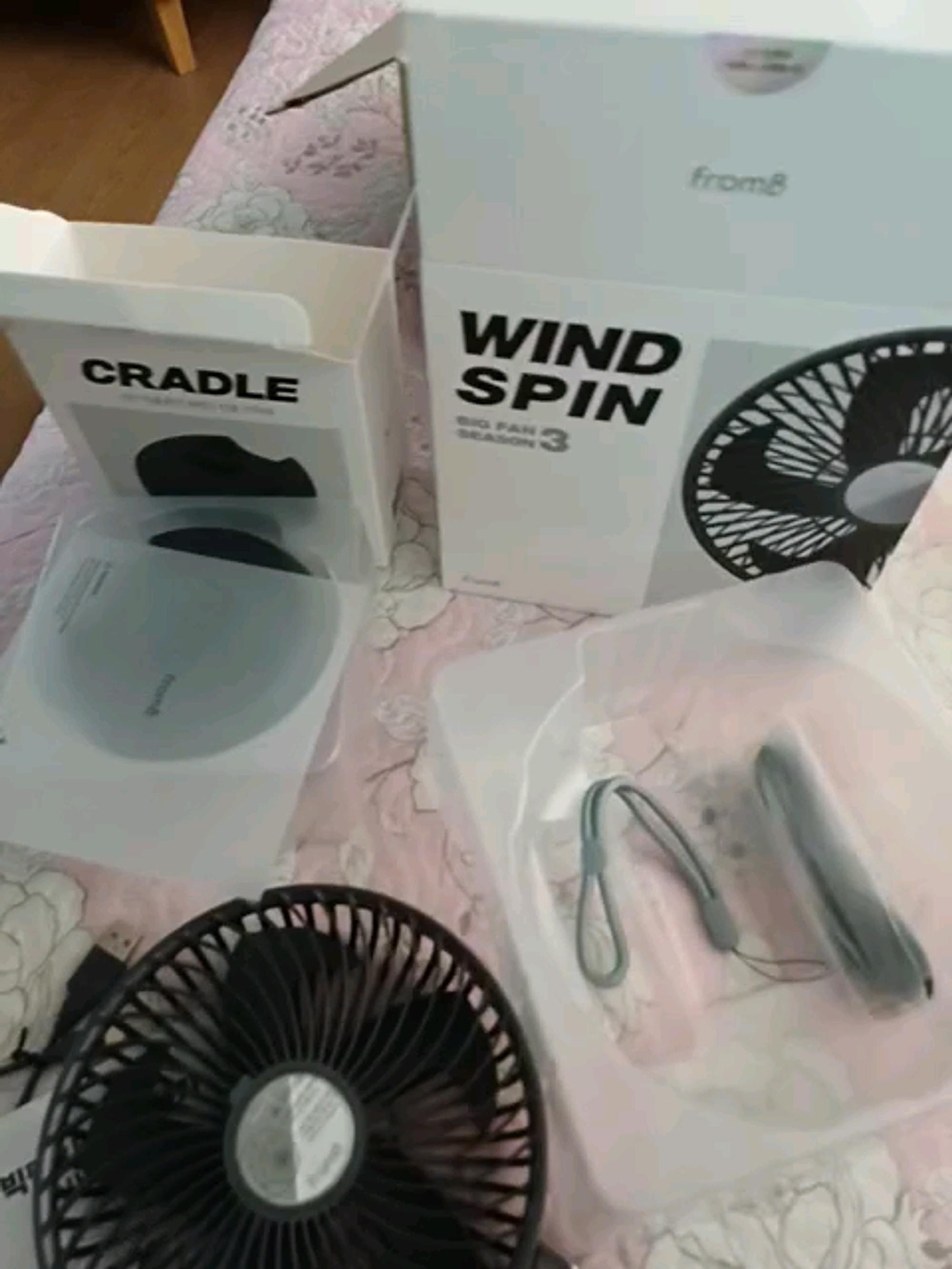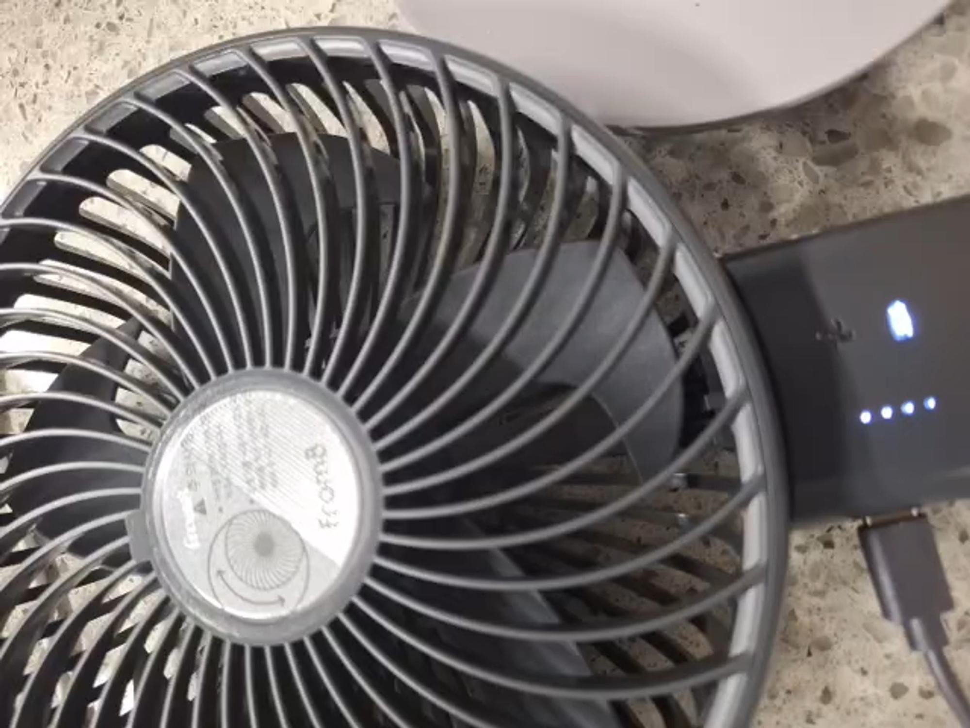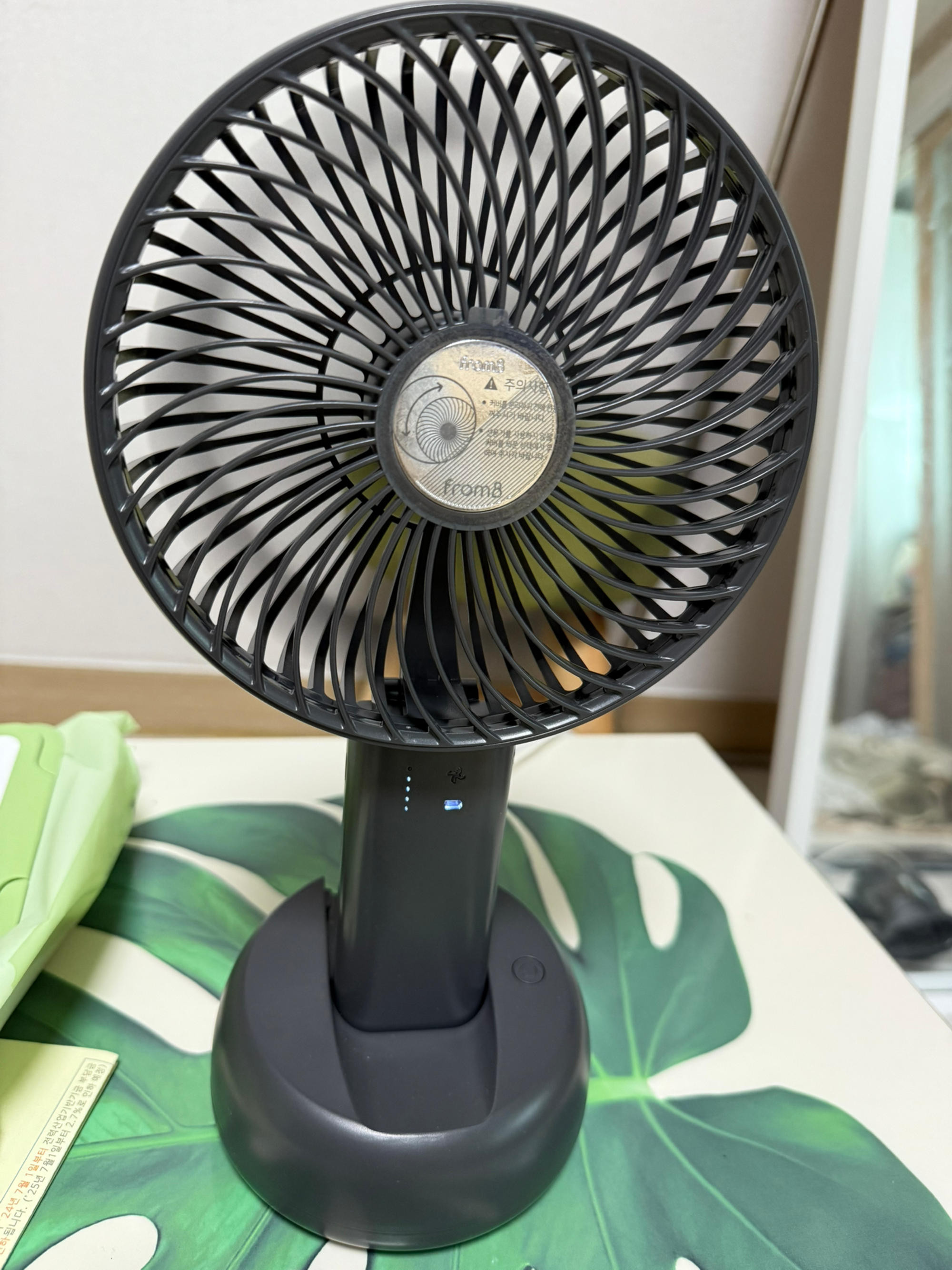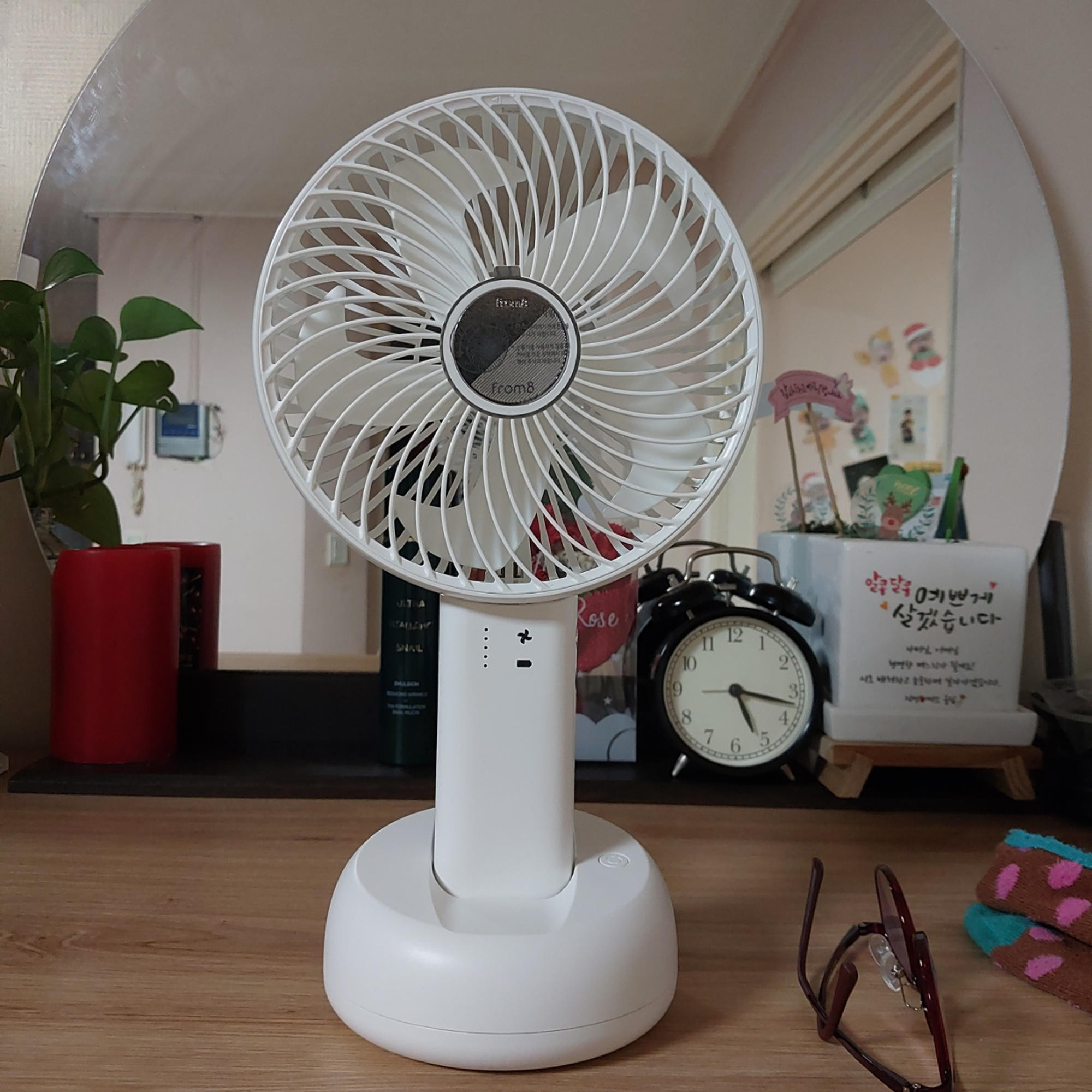배터리 용량도 커서 한 번 충전하면 오래 가고, 함께 주신 크래들은 집에서 딱 고정해서 쓰기 좋아요. 더워도 에어컨 안 틀고 아직 선풍기로 버티는데 큰 선풍기랑 같이 돌리면 시원합니다.