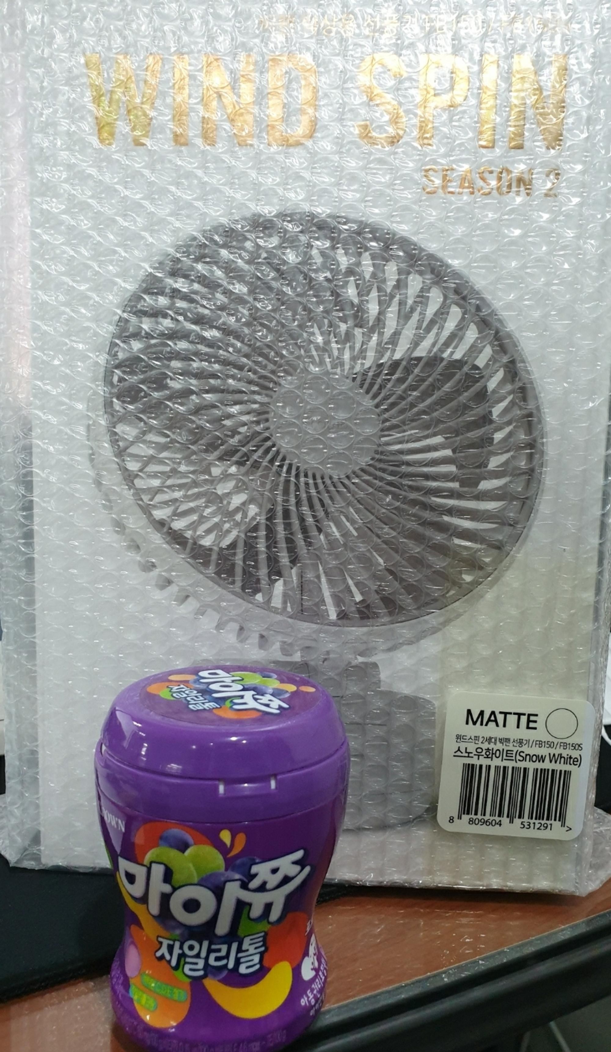 선물하려고 구매했어요. 올해는 여름이 더더 덥다고 해서 큰게 필요할거 같아서요~ 일부러 마이쮸랑 비교사진으로 찍었는데 큼직한게 보기만해도 좋네요b