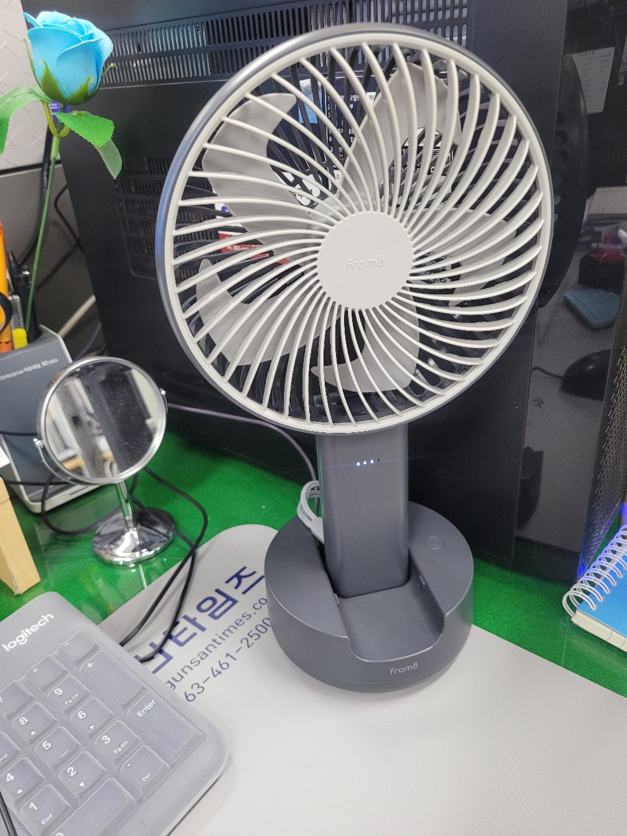 생각보다 조용하고 회전도 되고 배터리 용량이 커서 더운날 오래 쓸수 있어서 좋아요!! 굳굳