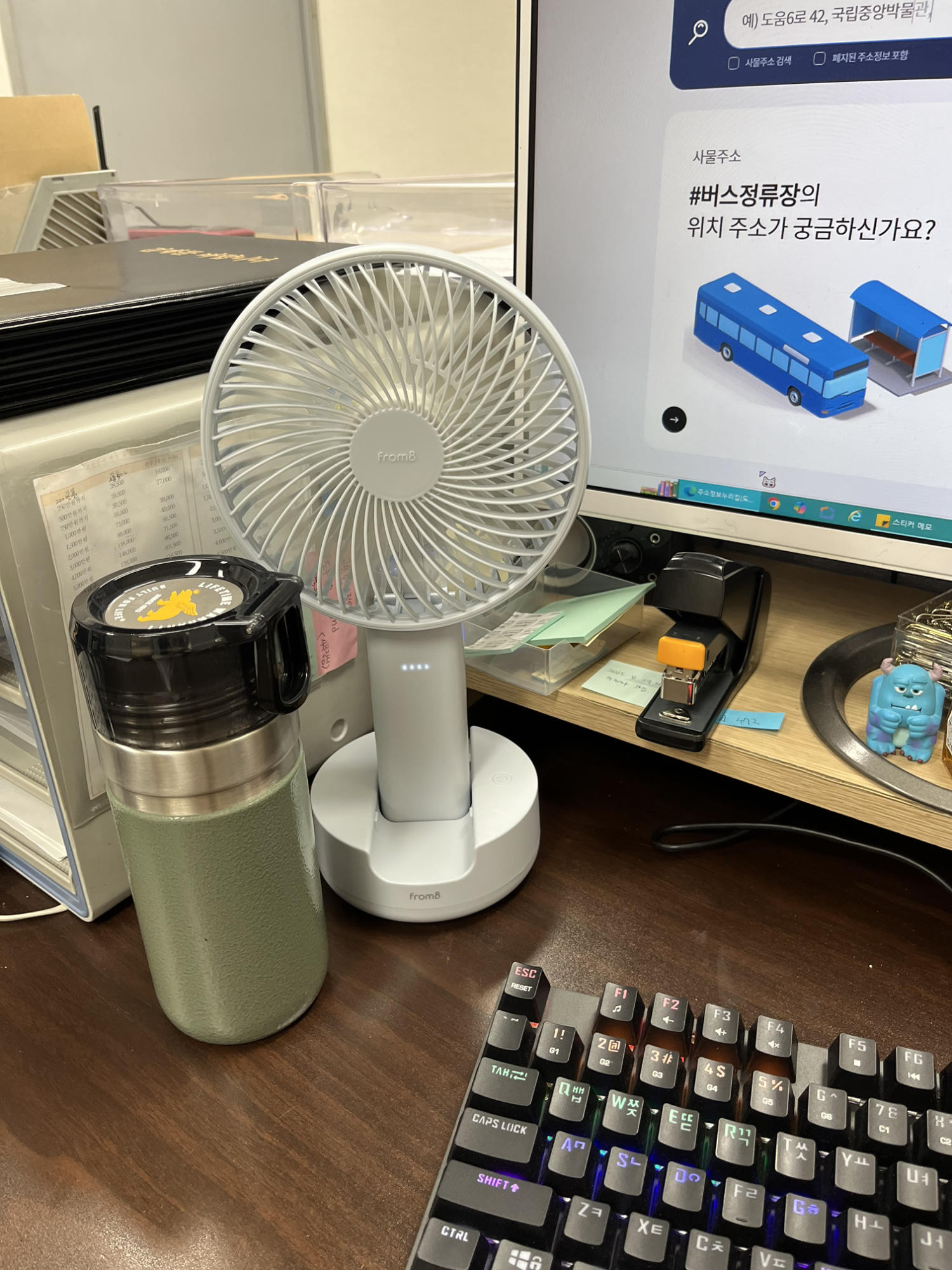 받았을 때 너무 큰 거 아닌가했는데, 이런 더위에는 이 정도 크기는 필요하더라구요. 지하철, 버스 등 출퇴근시 대중교통 이용하거나, 걸어다닐 때 아주 유용하게 쓰고 있어요. 아마 빅팬 없었음 걸어다니기 너무 힘들었을 거에요.
