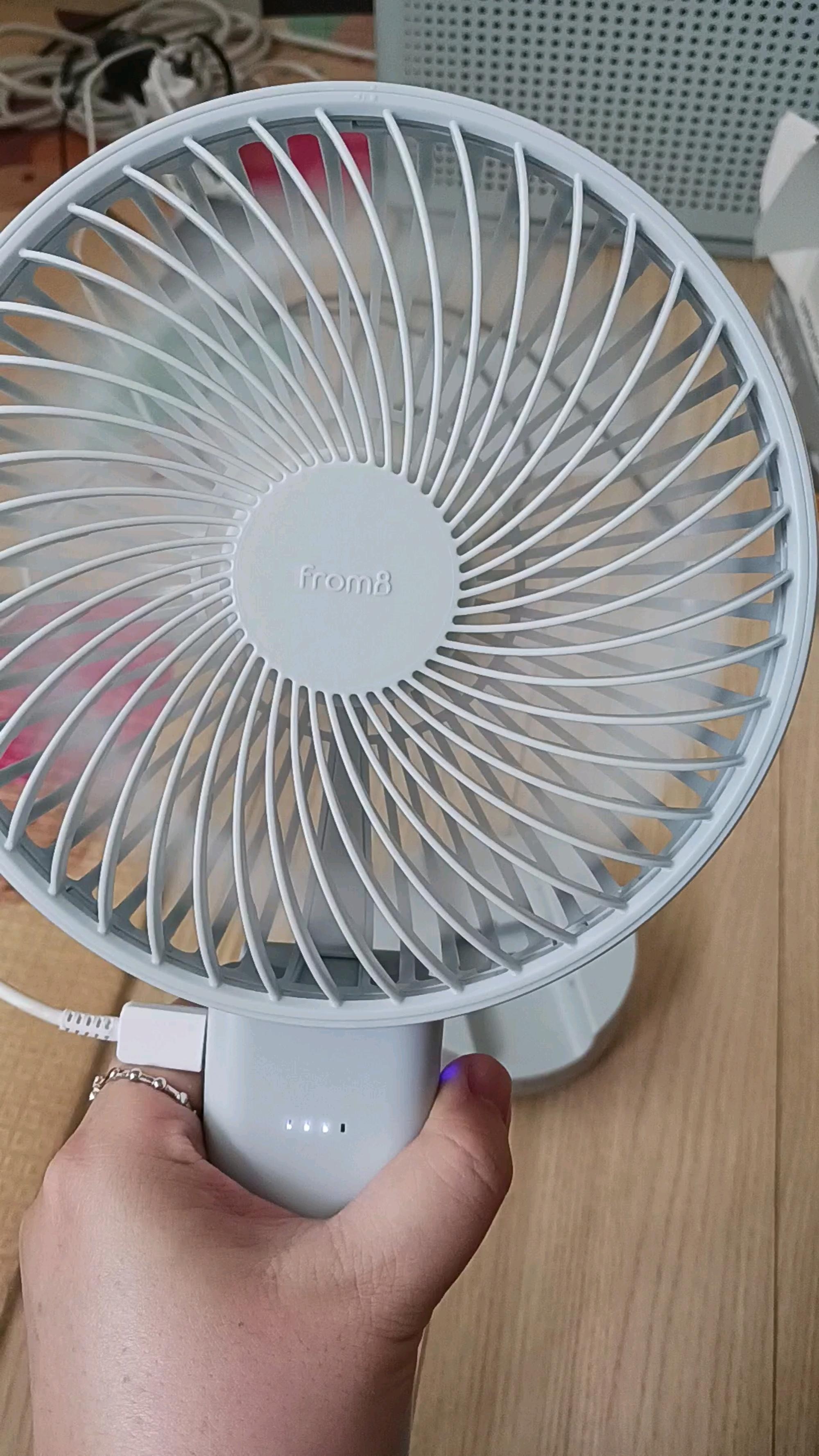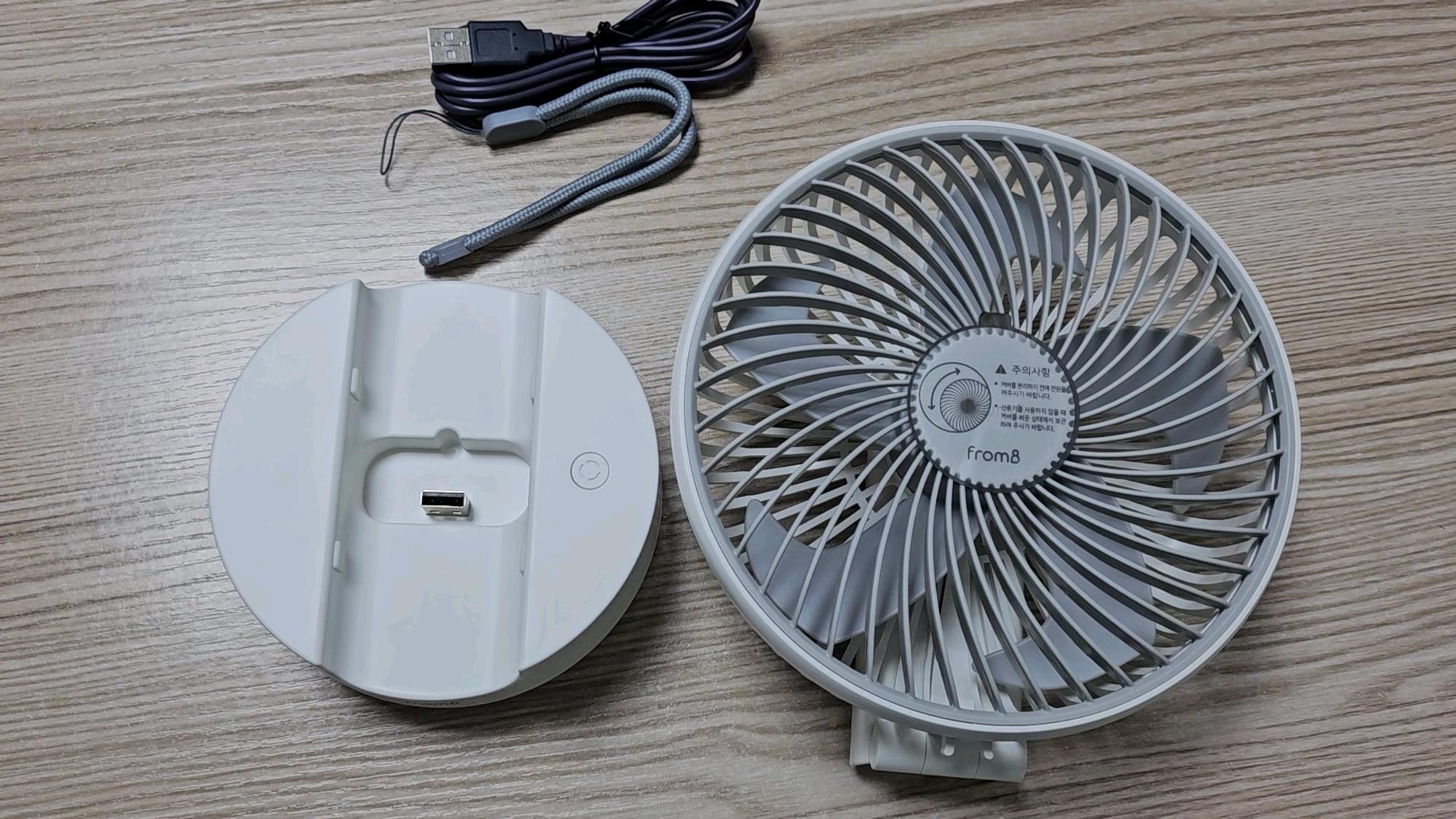 사용 편리성 - 회전 크래들이 있어, 거치가 가능하며, 회전도 되니 일반 선풍기와 다를게 없습니다. 크레들에 세워놓고, 사용하면서 충전, 회전까지 되고, 책상위에서도 사용, 다른 장소로 이동까지 가능하고, 크레들 분리하면 야외에서도 사용 가능한 다목적 선풍기 입니다. 사용 시간은 따로 측정 해 보지 못했는데, 최대 19시간 정도이면 하루종일 사용 가능해 보이네요.