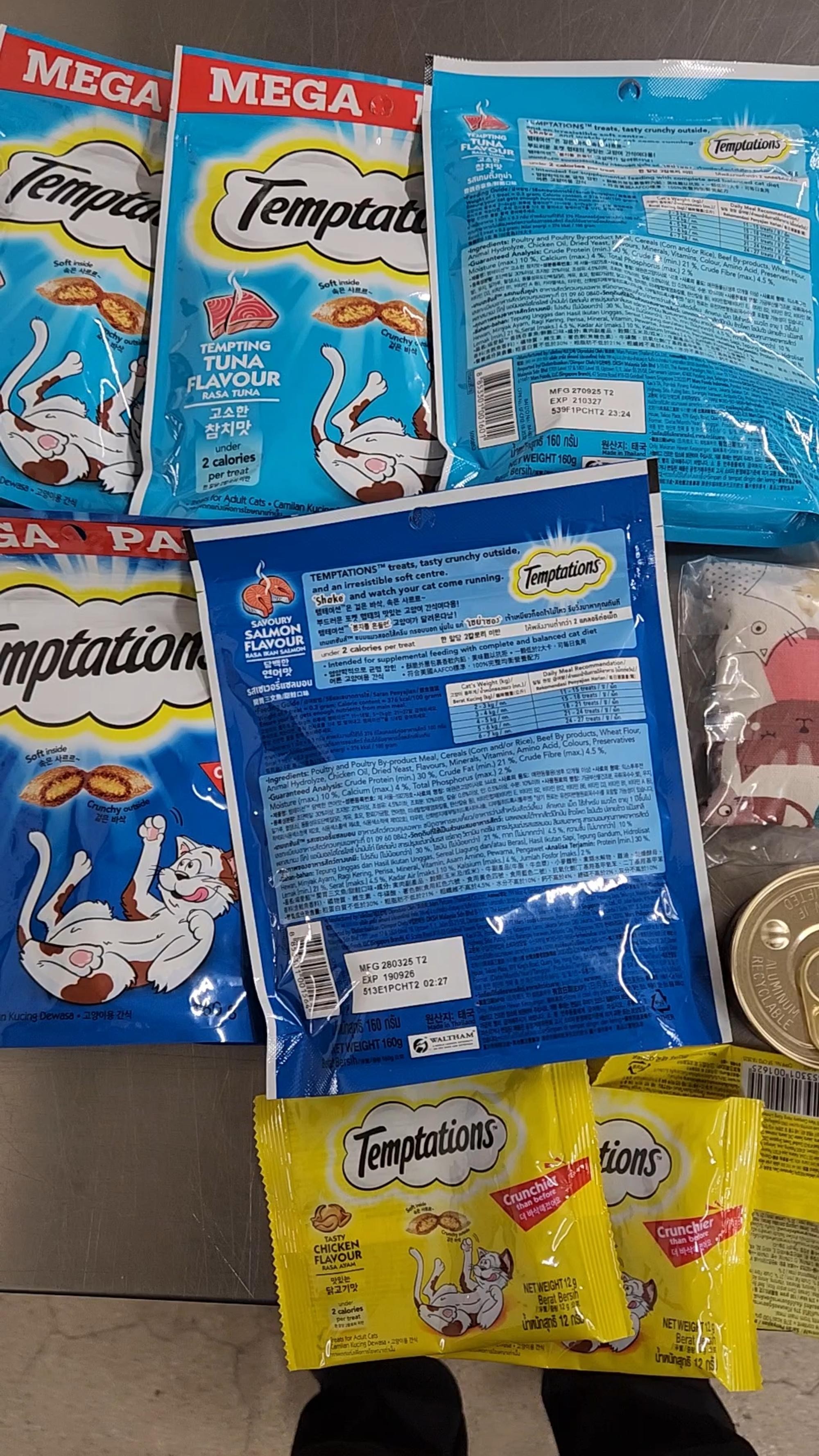 템테이션 우리집냥이 최애간식이네요 밥위에 토핑으로 올려 먹이고 있어요 없으면 안되서 11절에 쟁여놓고 먹이고 있어요