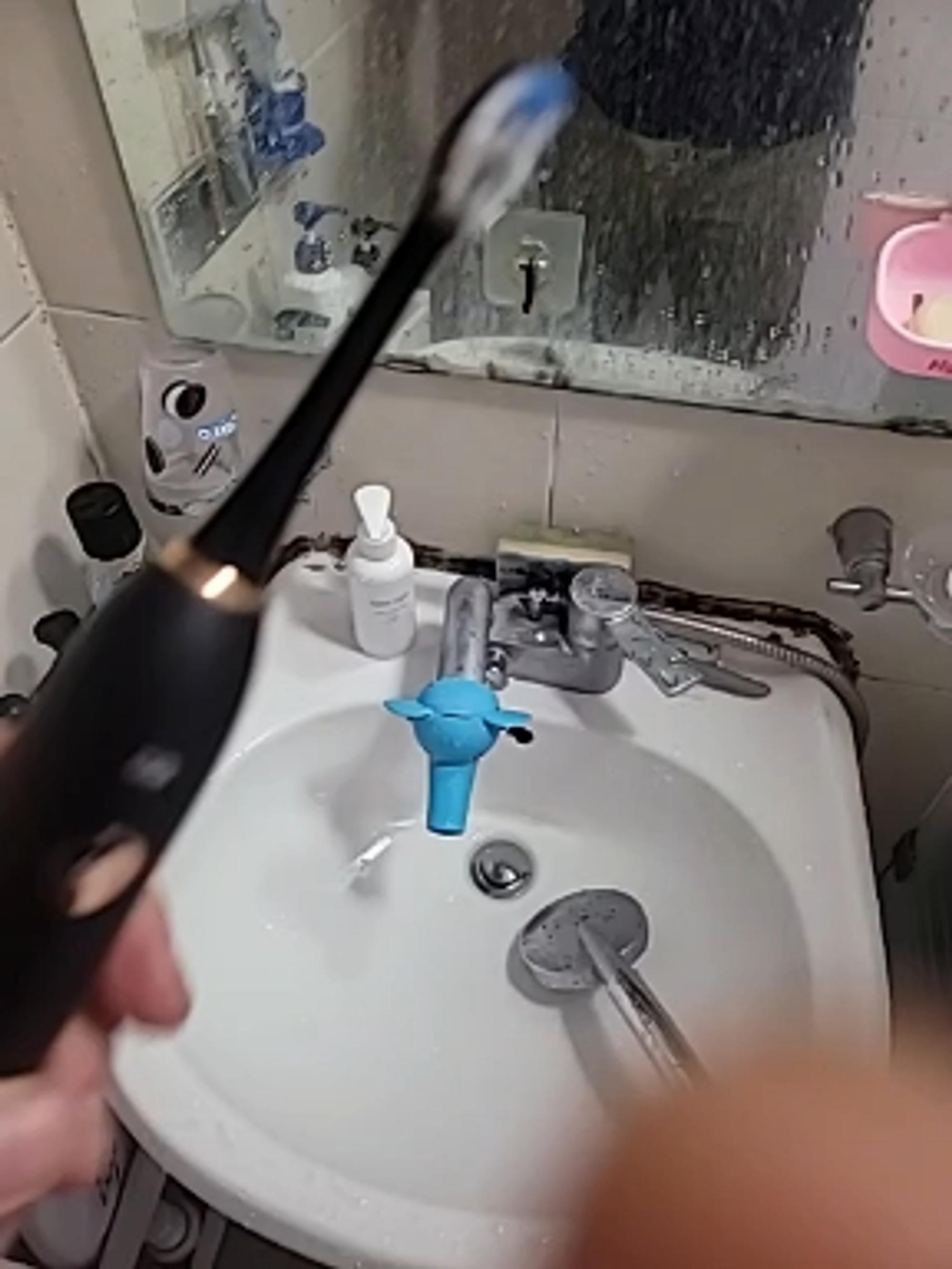 그러니 소리가 요란해지길래, 칫솔모 새걸로 교체하여 사용하였습니다. 또 칫솔모 빼고 끼고 보관하는 방식으로 사용하면 또 같은 불편함 있을까 그냥 빼지 않고 두고 사용하고 있습니다.