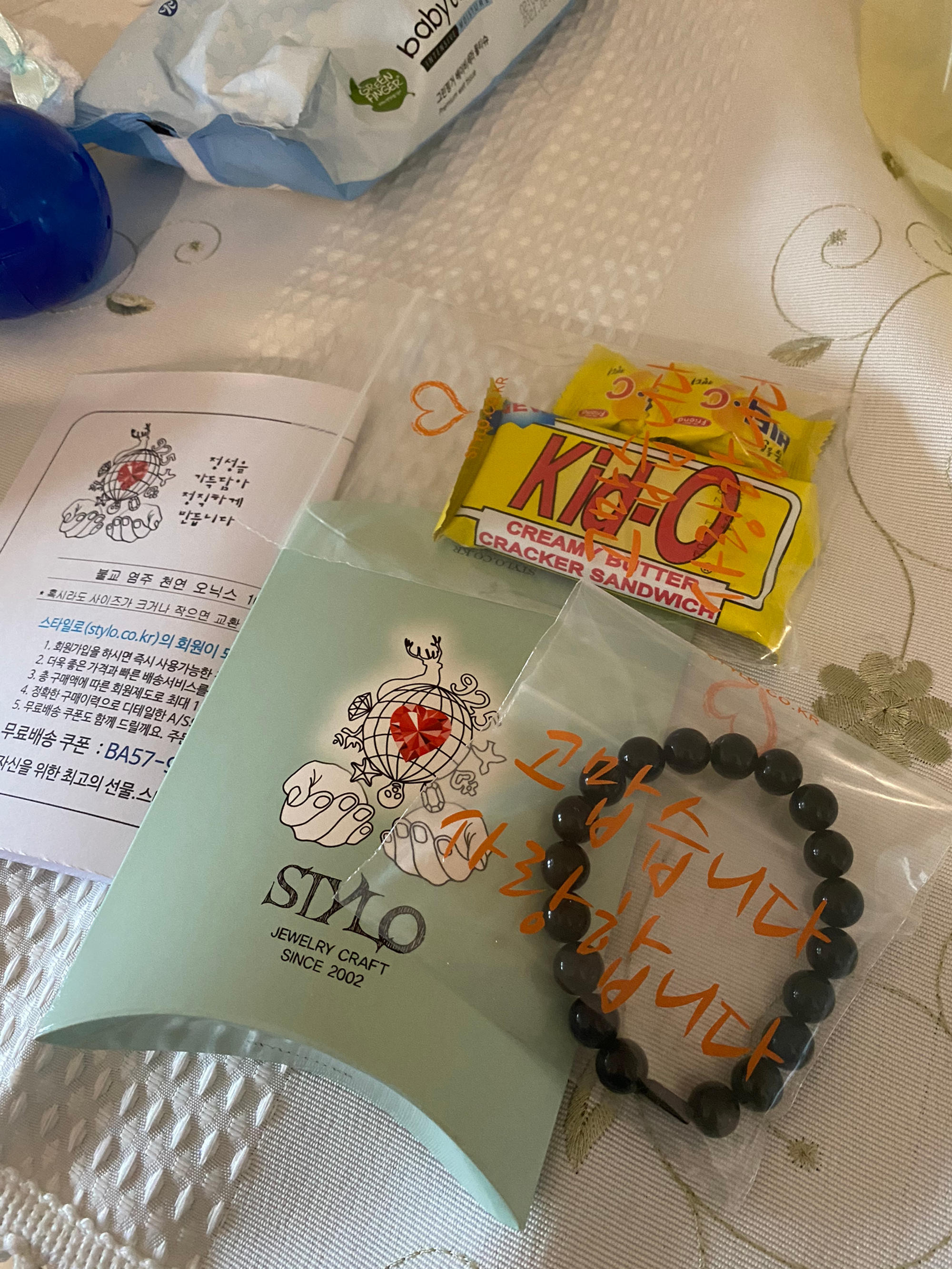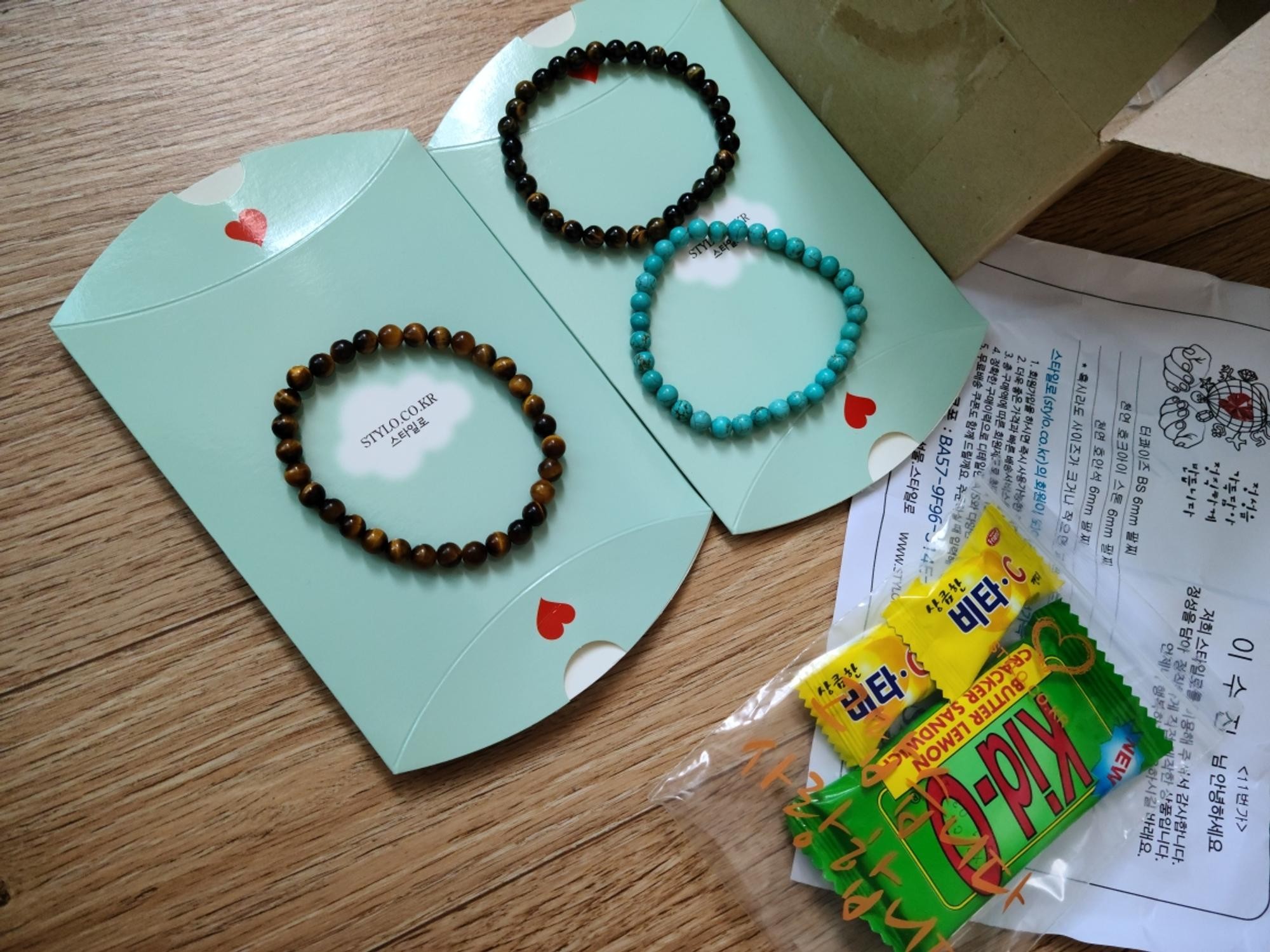 꼼꼼하고 친절한사장님 덕분에 예쁜팔찌 잘받았습니다  정성담긴 포장도감사한데 간식까지 감사합니다