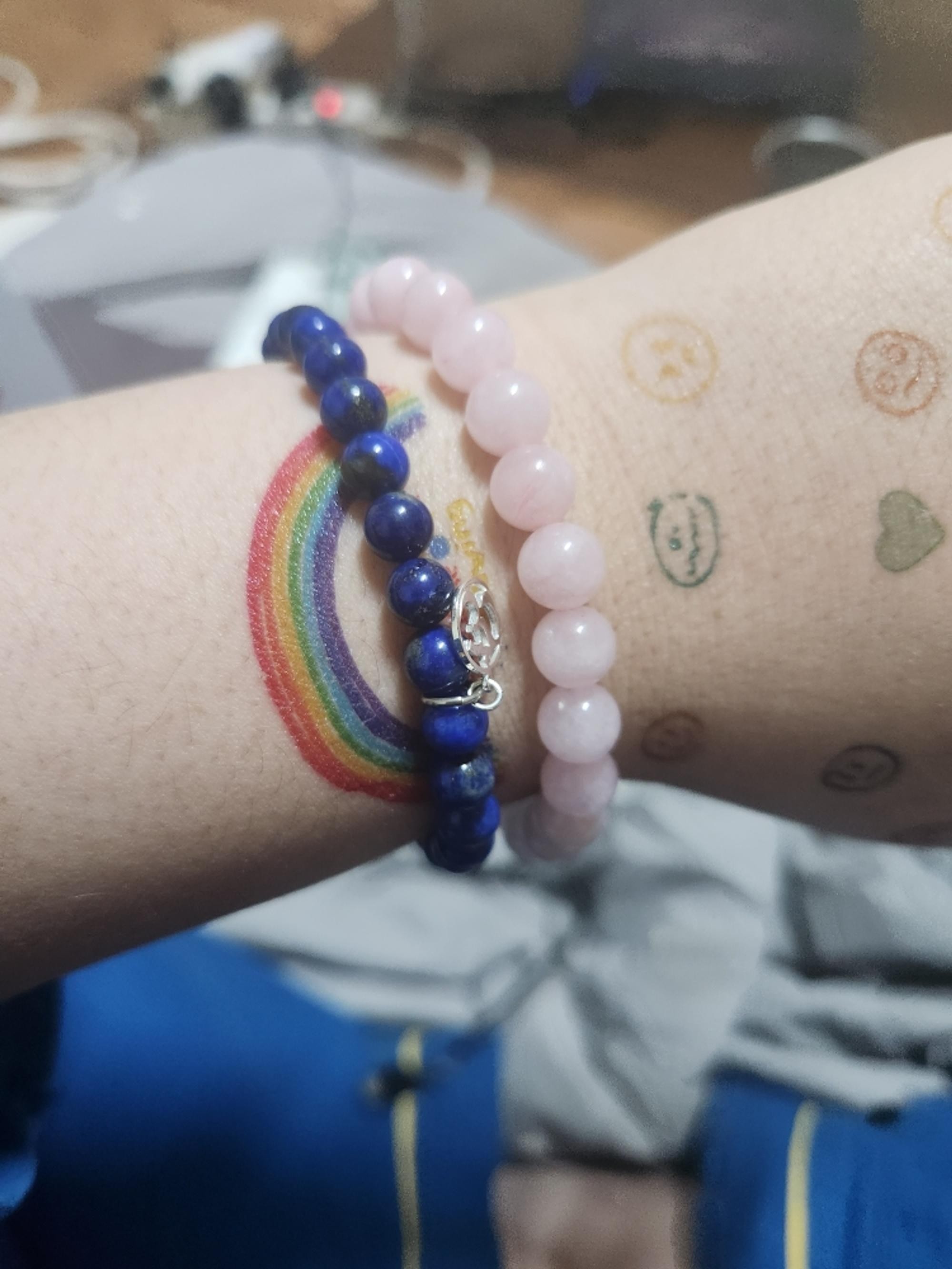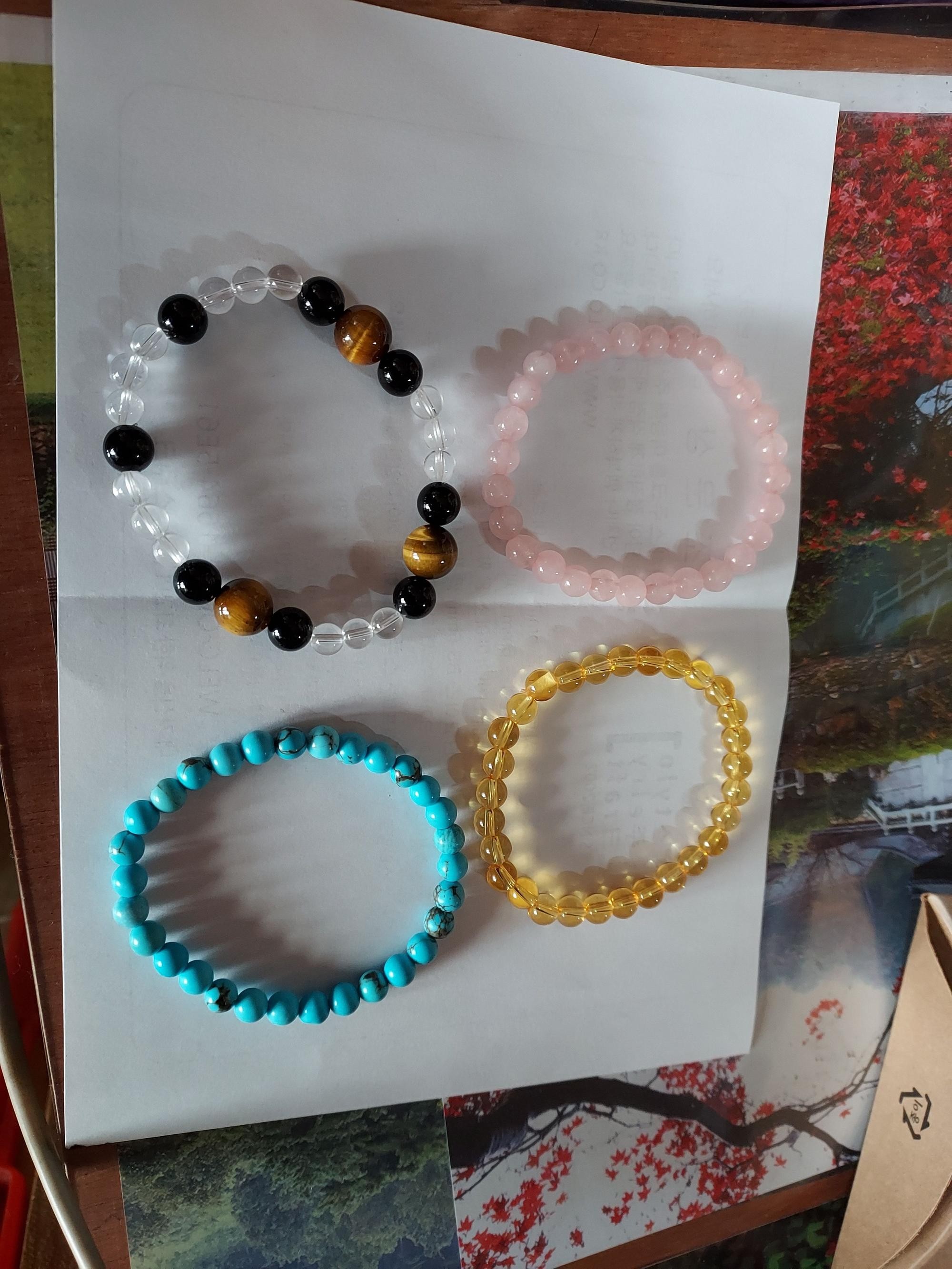 팔찌가 고급스럽고 사이즈를 선택할수 있어서 너무 좋은거 같아요 알맹이 하나가 조금 깨져서 왔는지 안에 내용물이 보이긴 하는데 그냥 쓰려구요 재구매 의사 있을정도로 만족 합니다 번창하세요